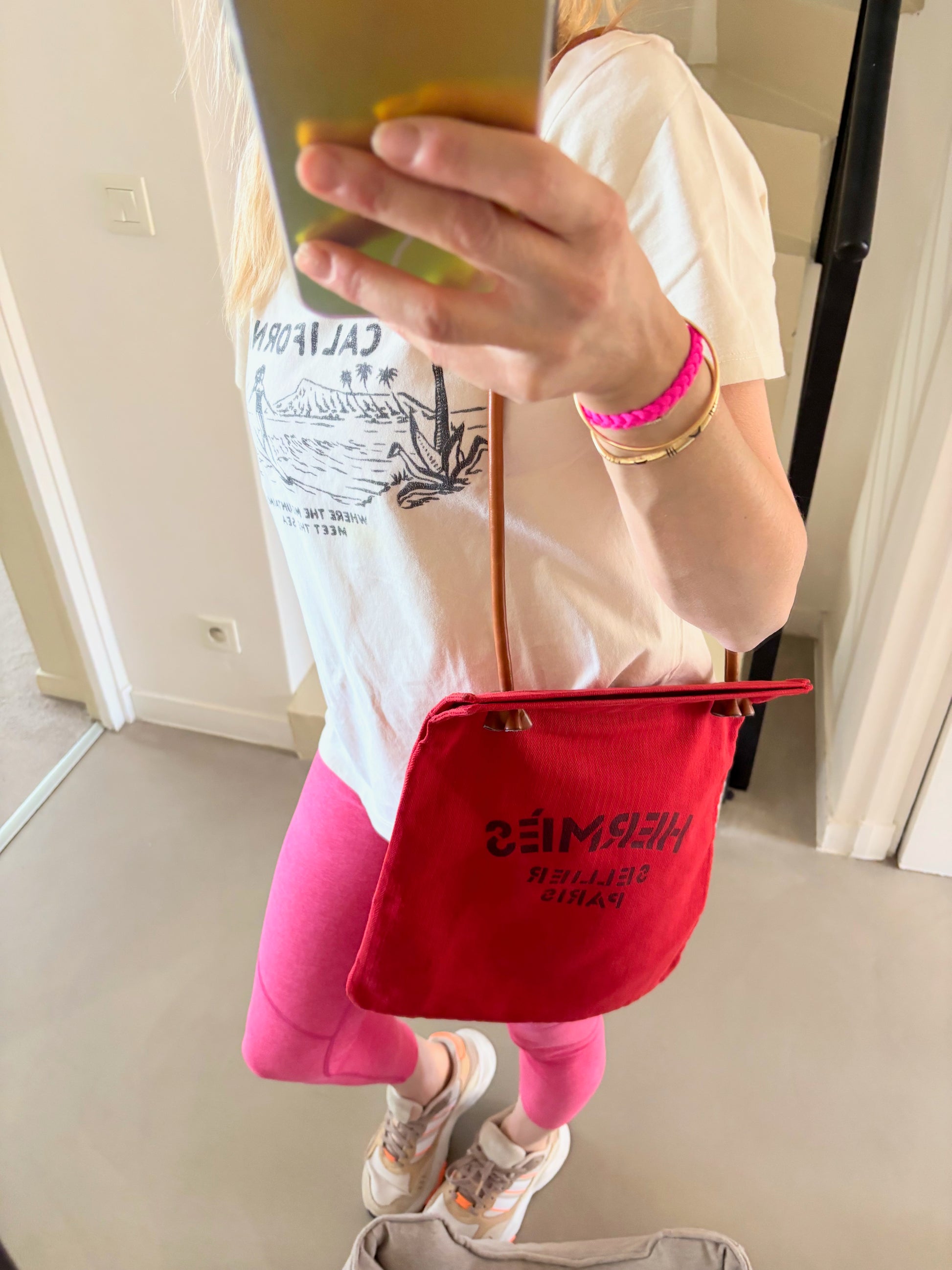 * En coton chevronné rouge, aux motifs HERMÈS SELLIER PARIS