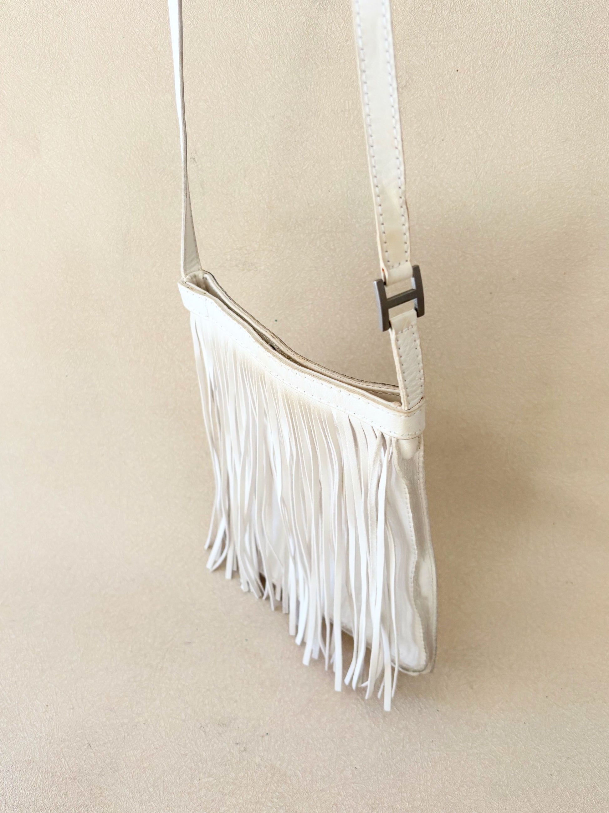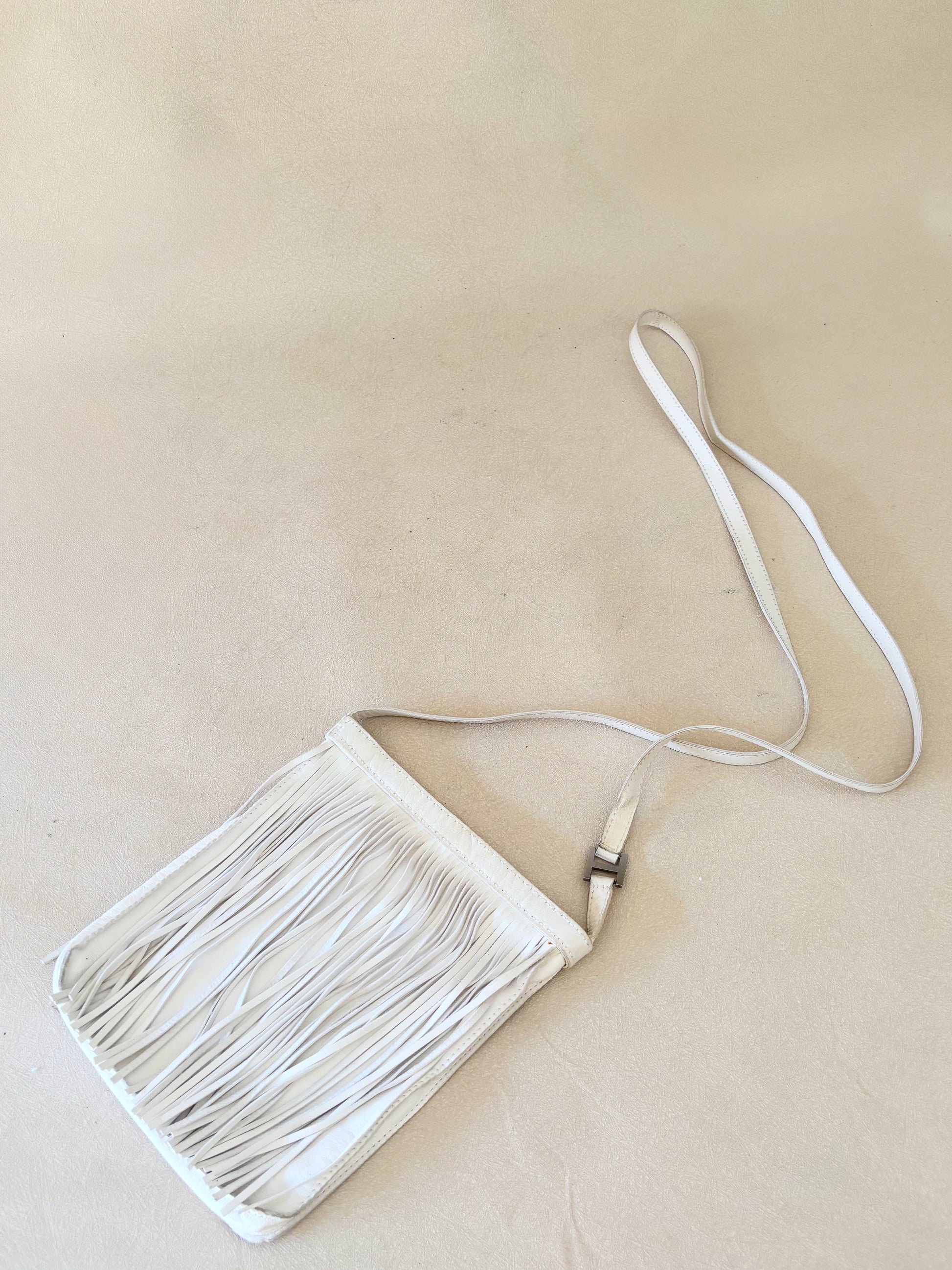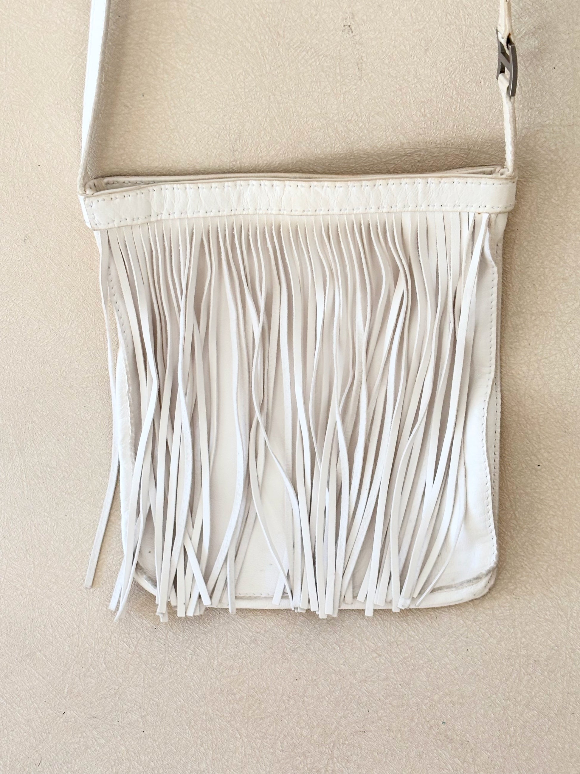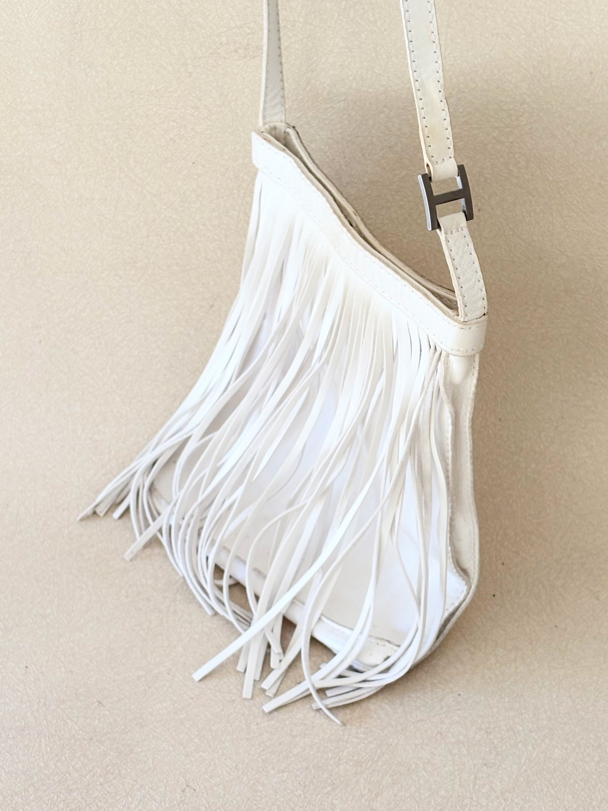 * En cuir d'agneau très souple, blanc à franges