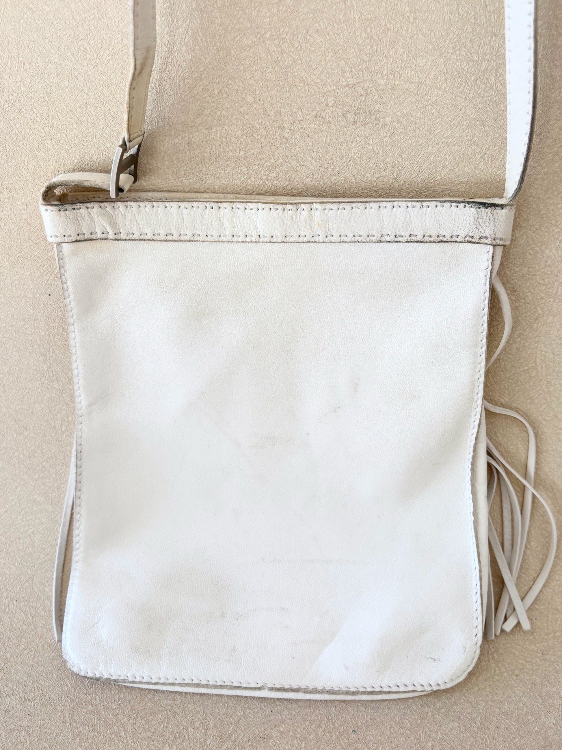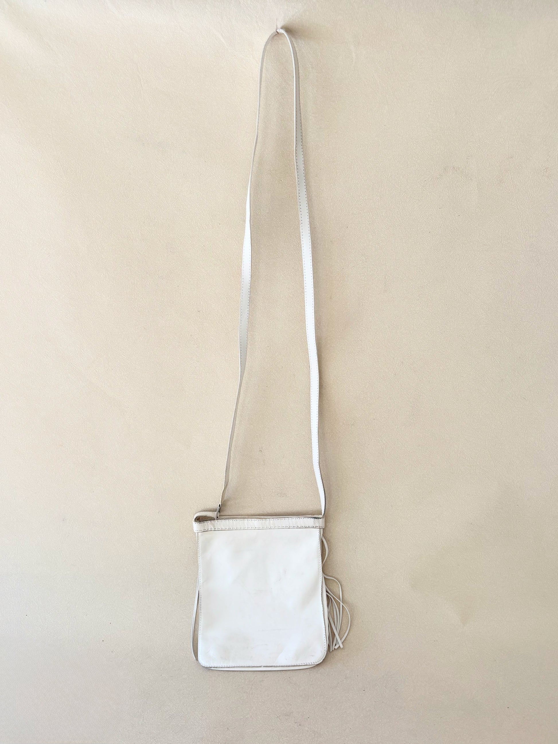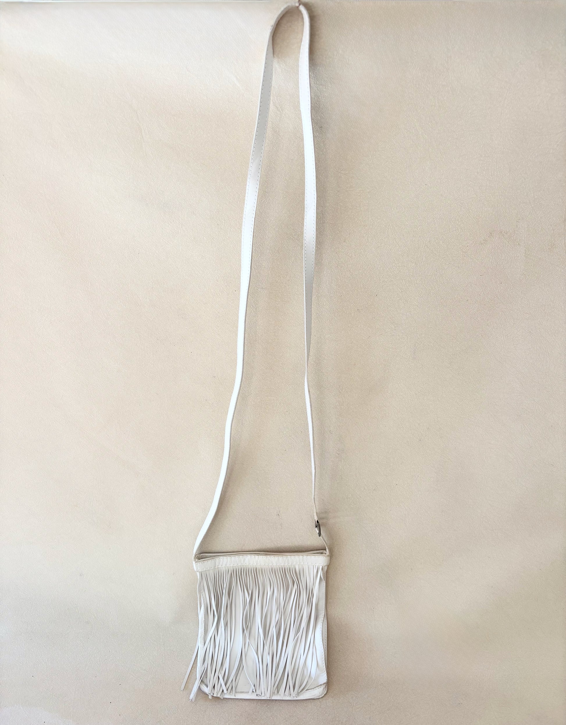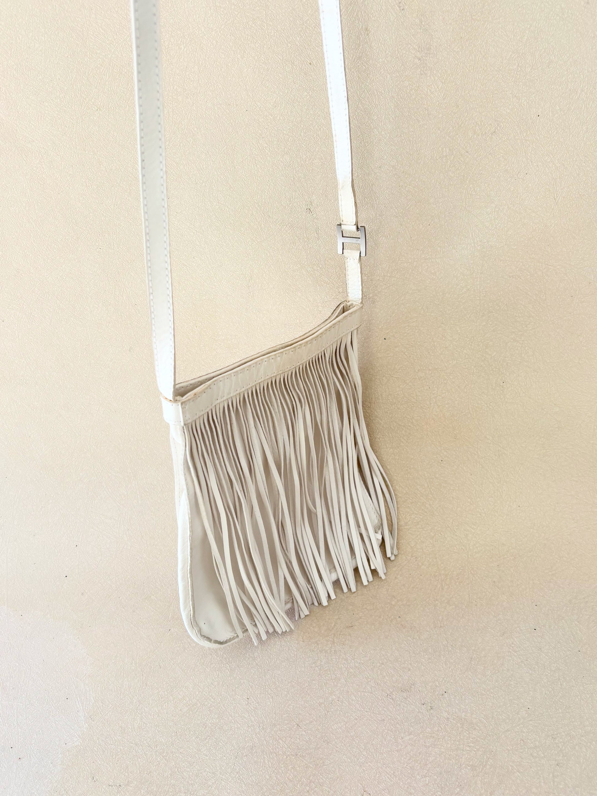 * En cuir d'agneau très souple, blanc à franges