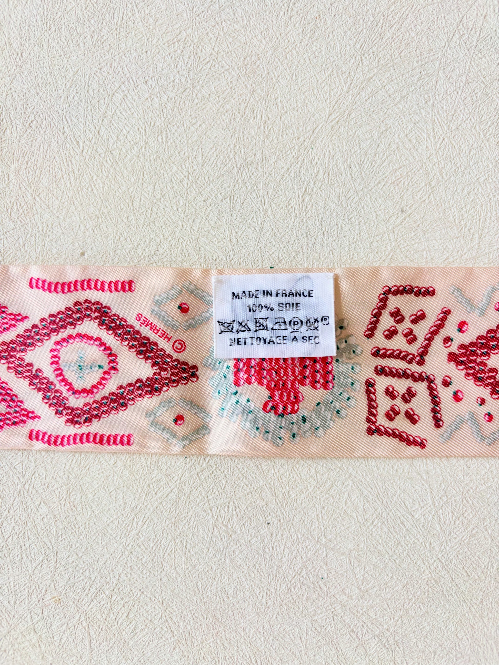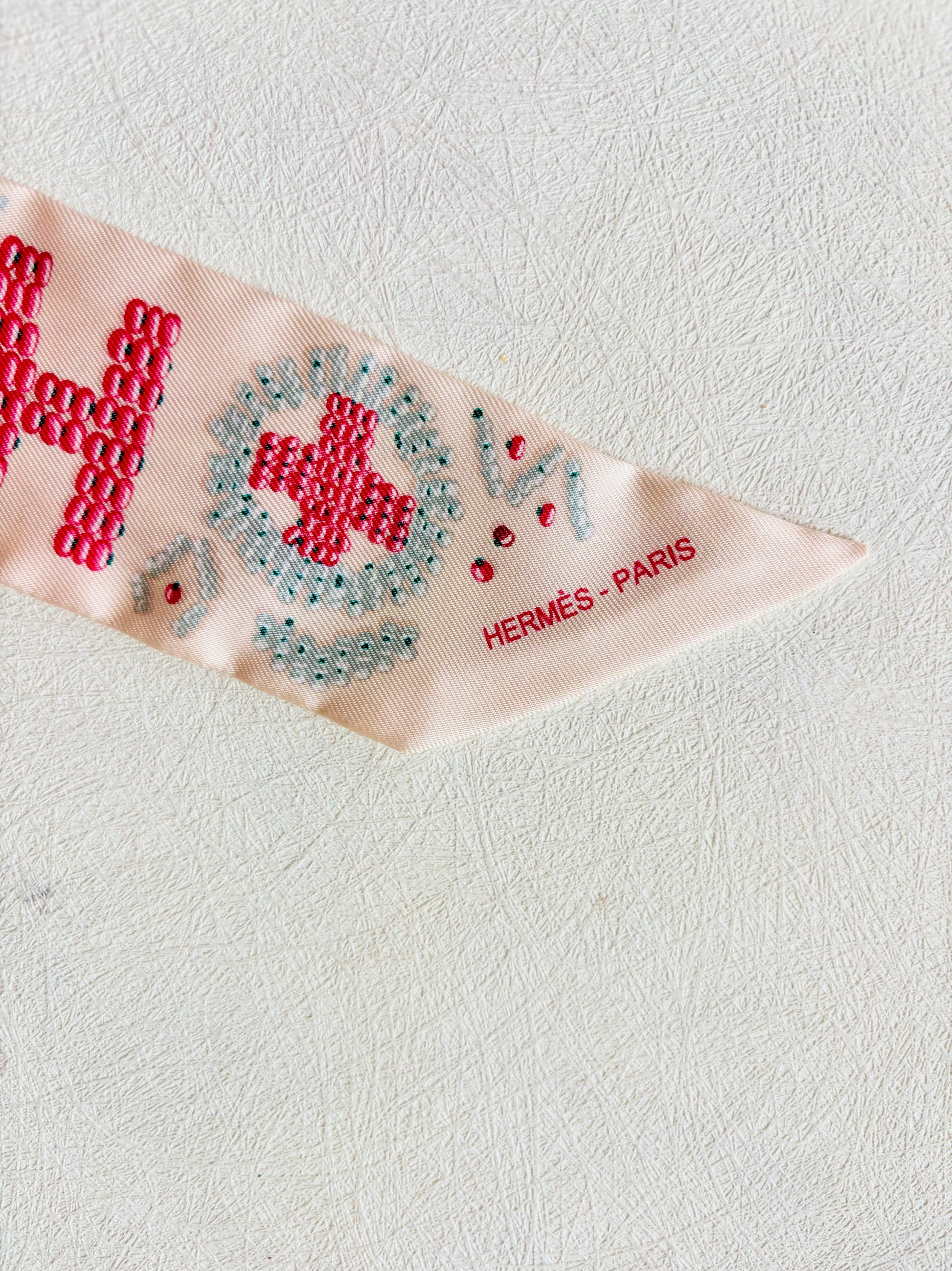 * Soie rouge, motifs de perles à l'effigie du H., siglé