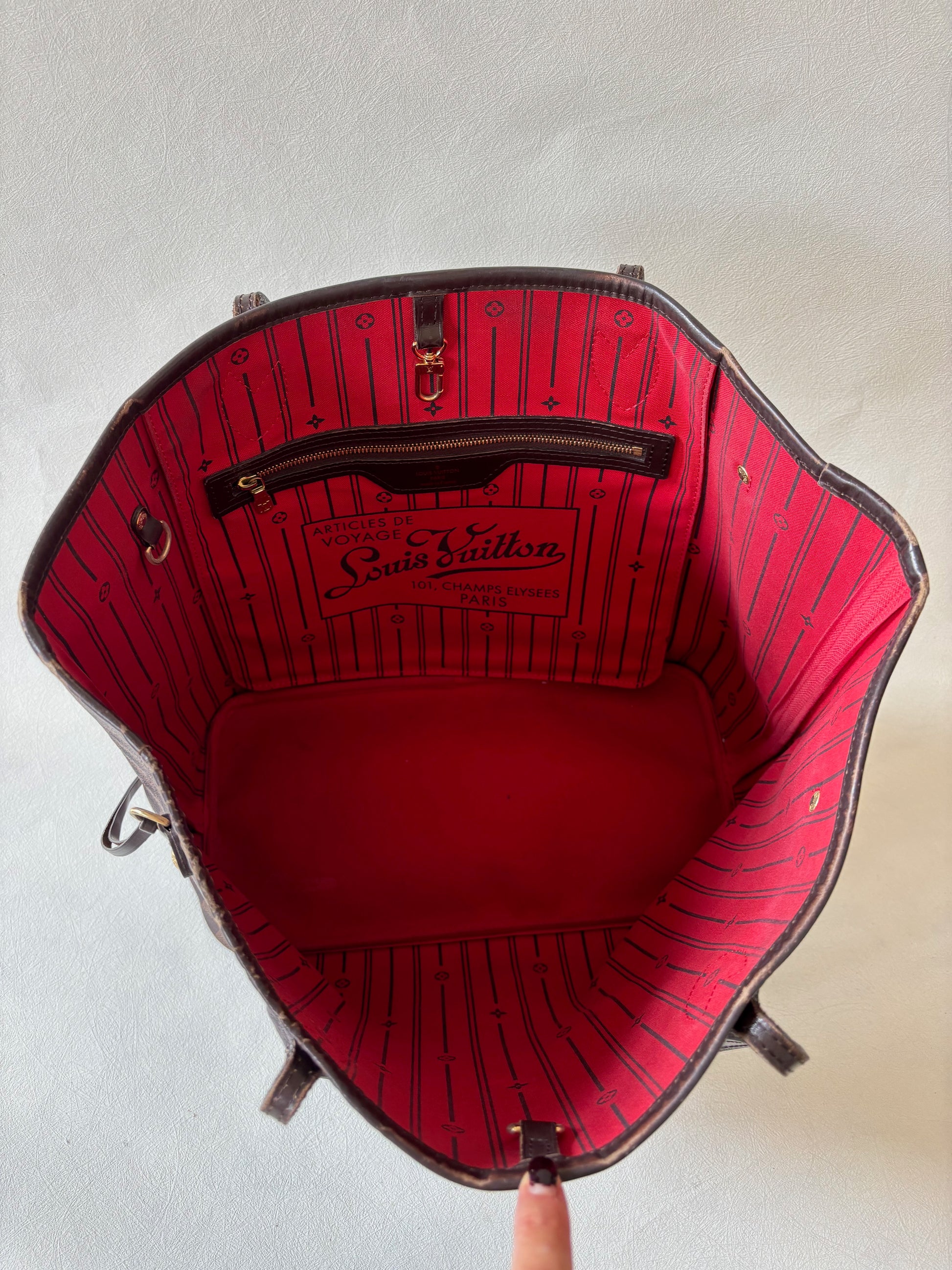 * Doublure en toile rouge aux motifs de la marque et poche intérieure zippée