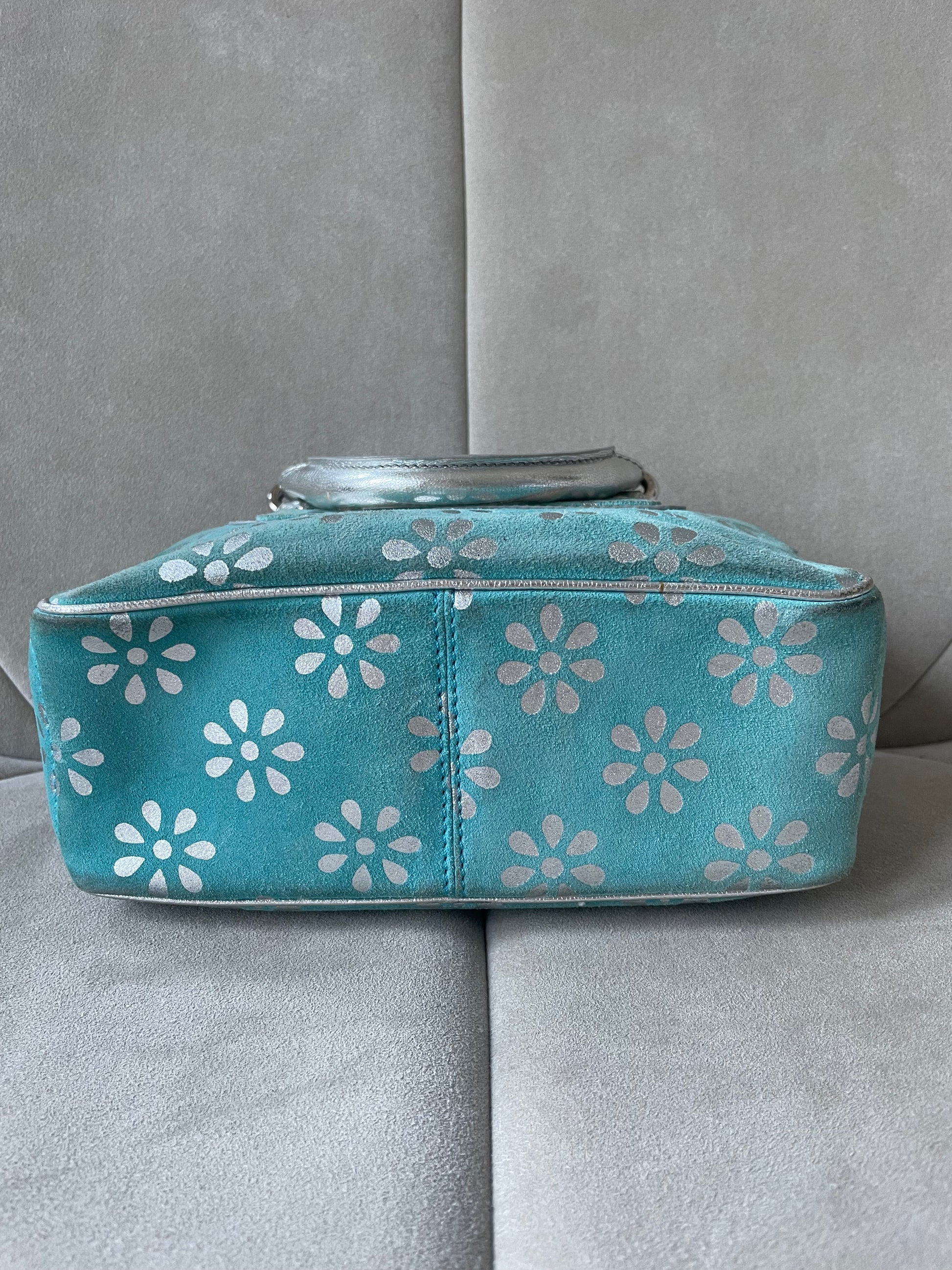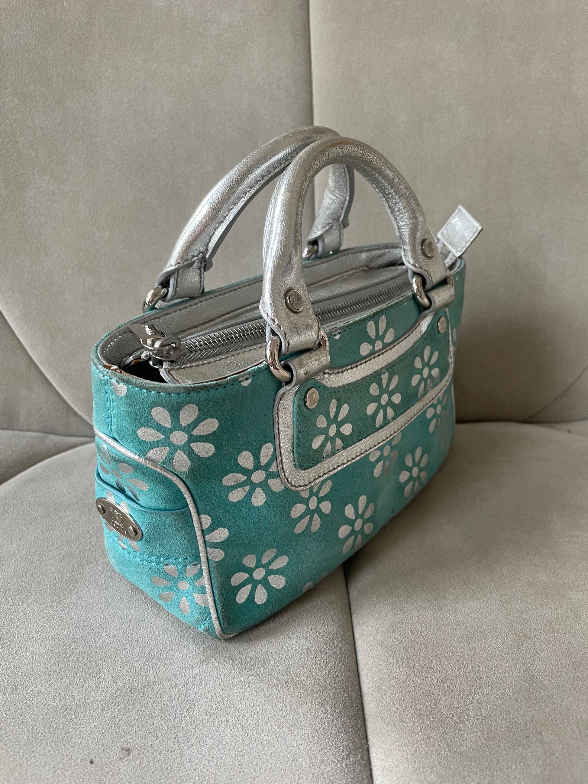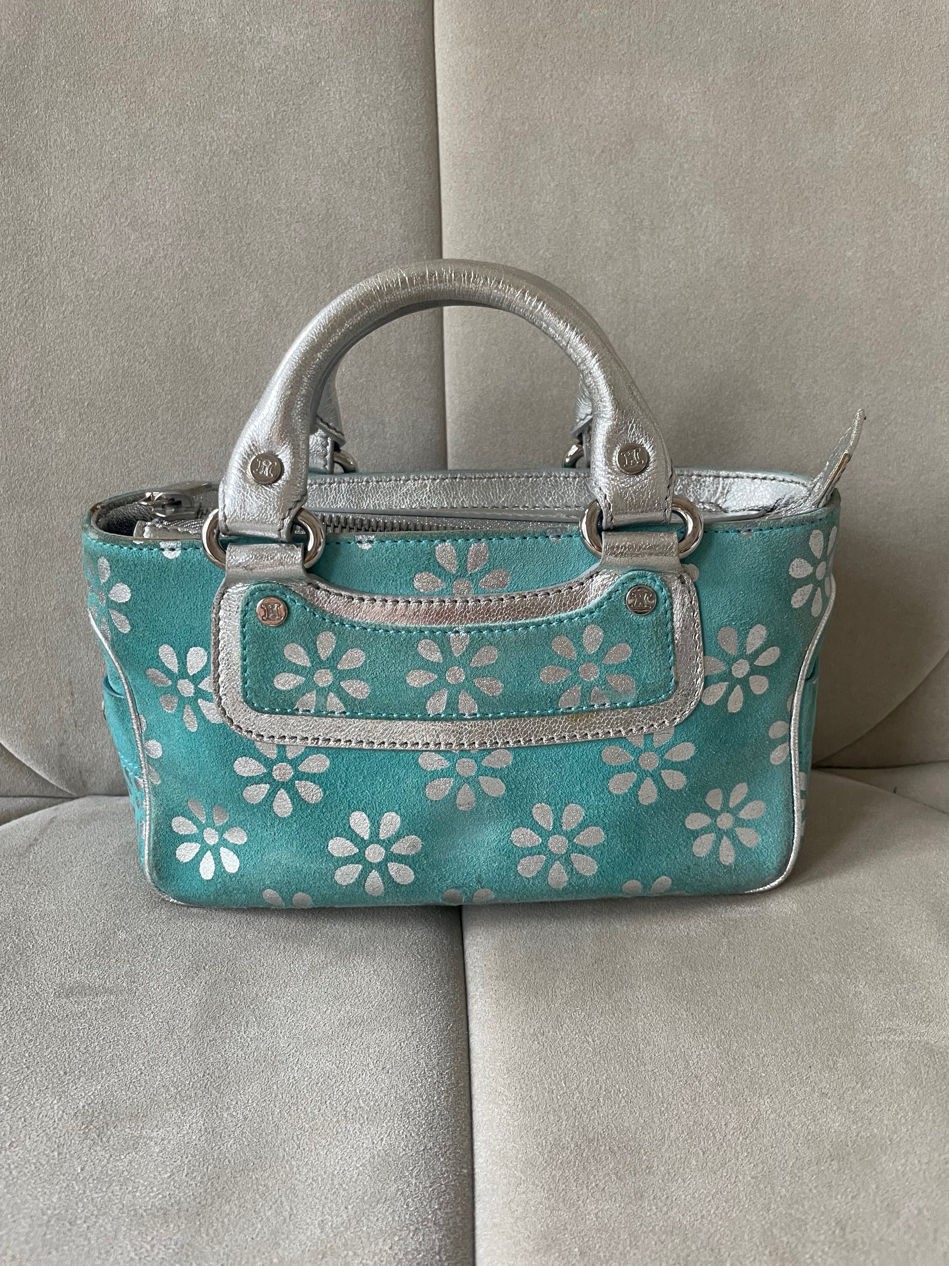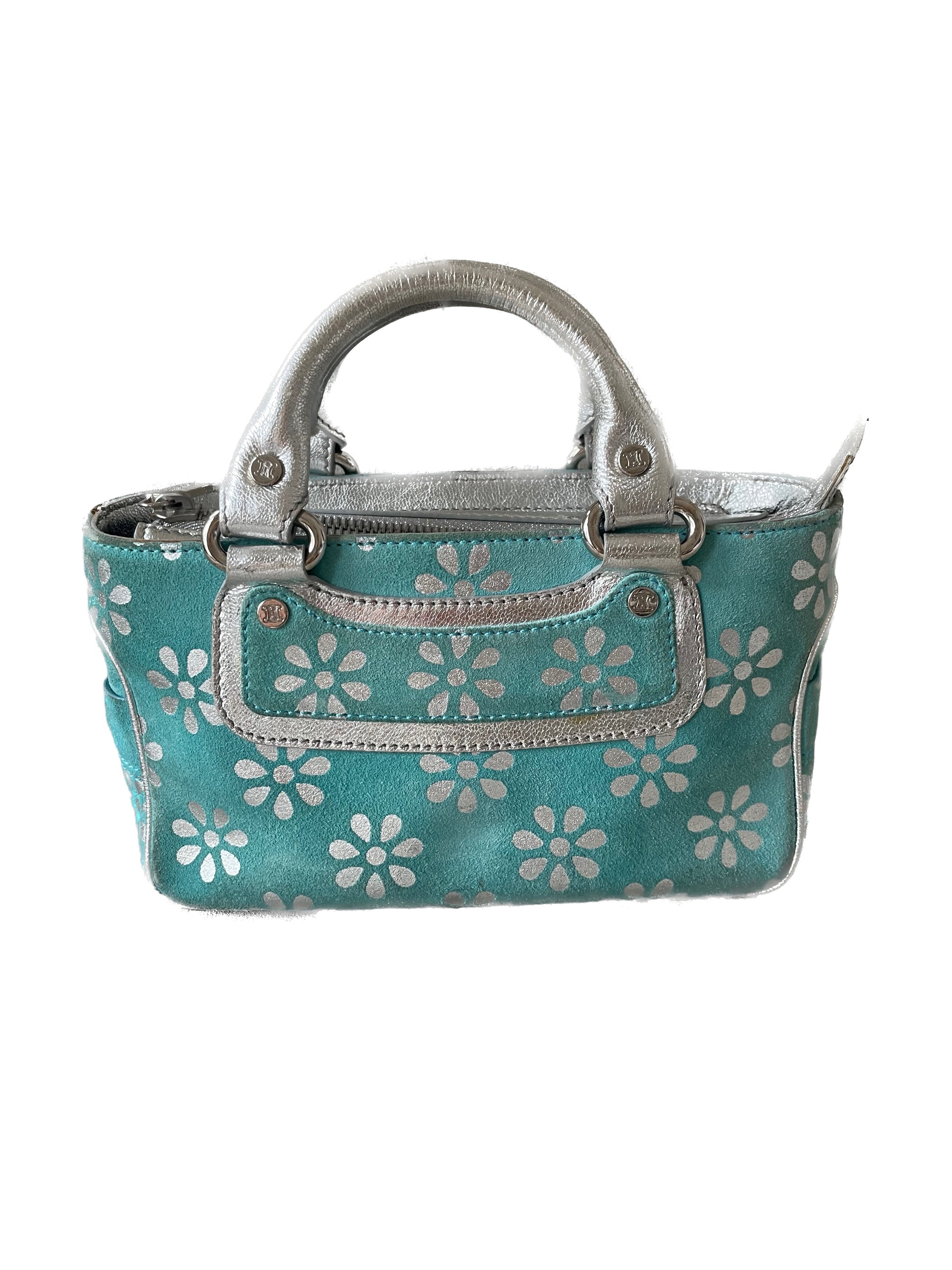 * Mini-sac à main CÉLINE modèle Boogie Limited Edition en daim turquoise et cuir argenté