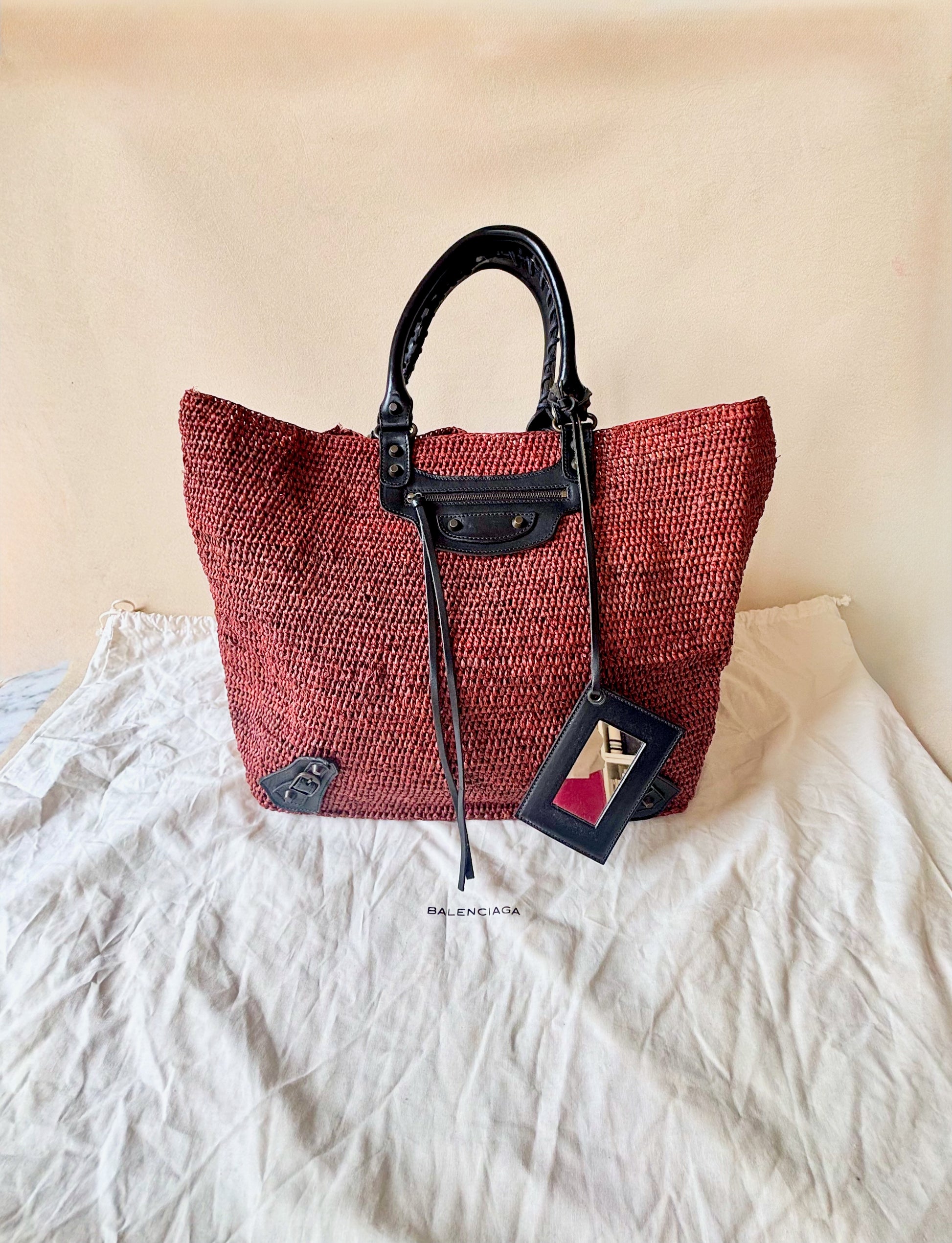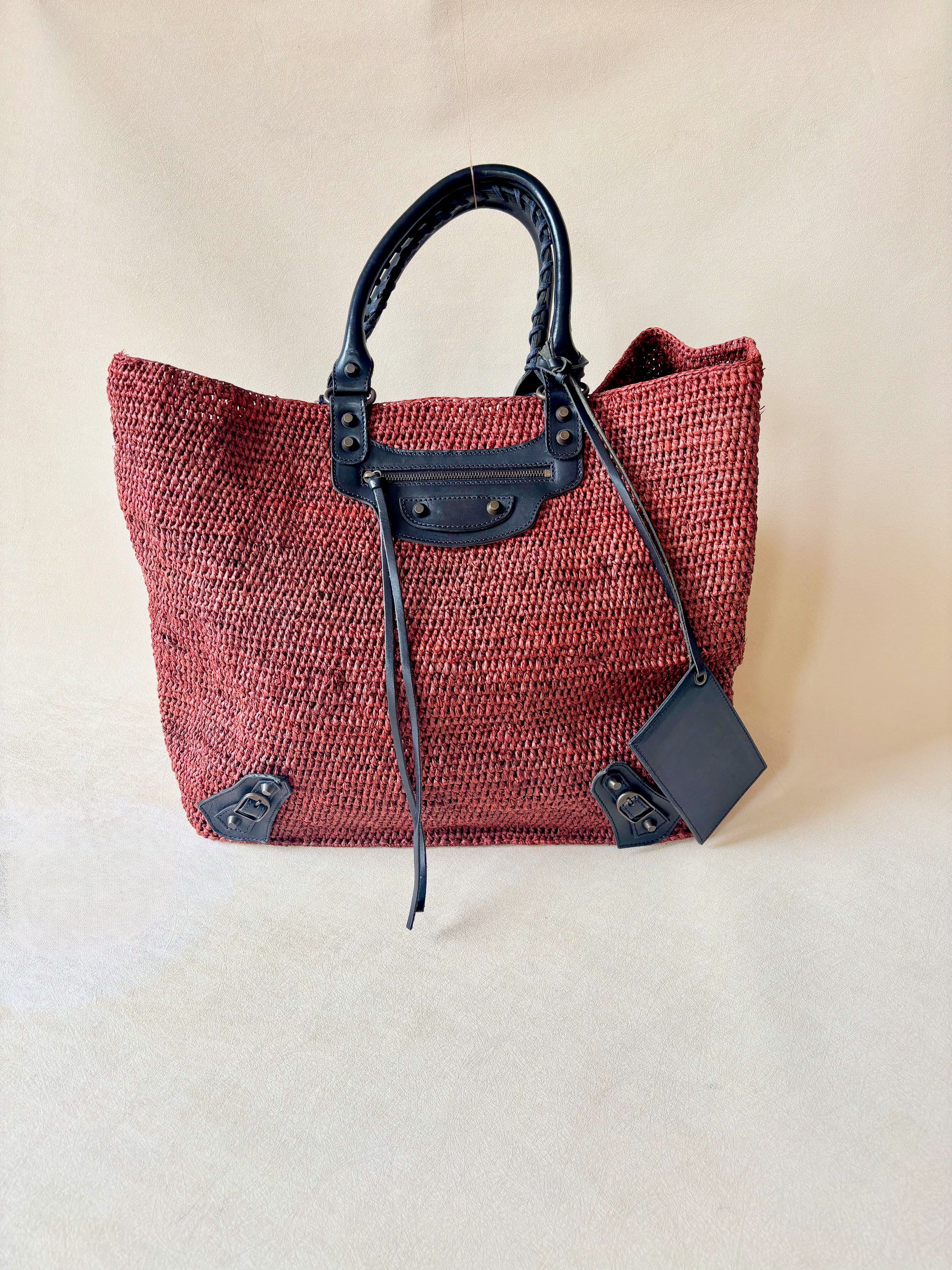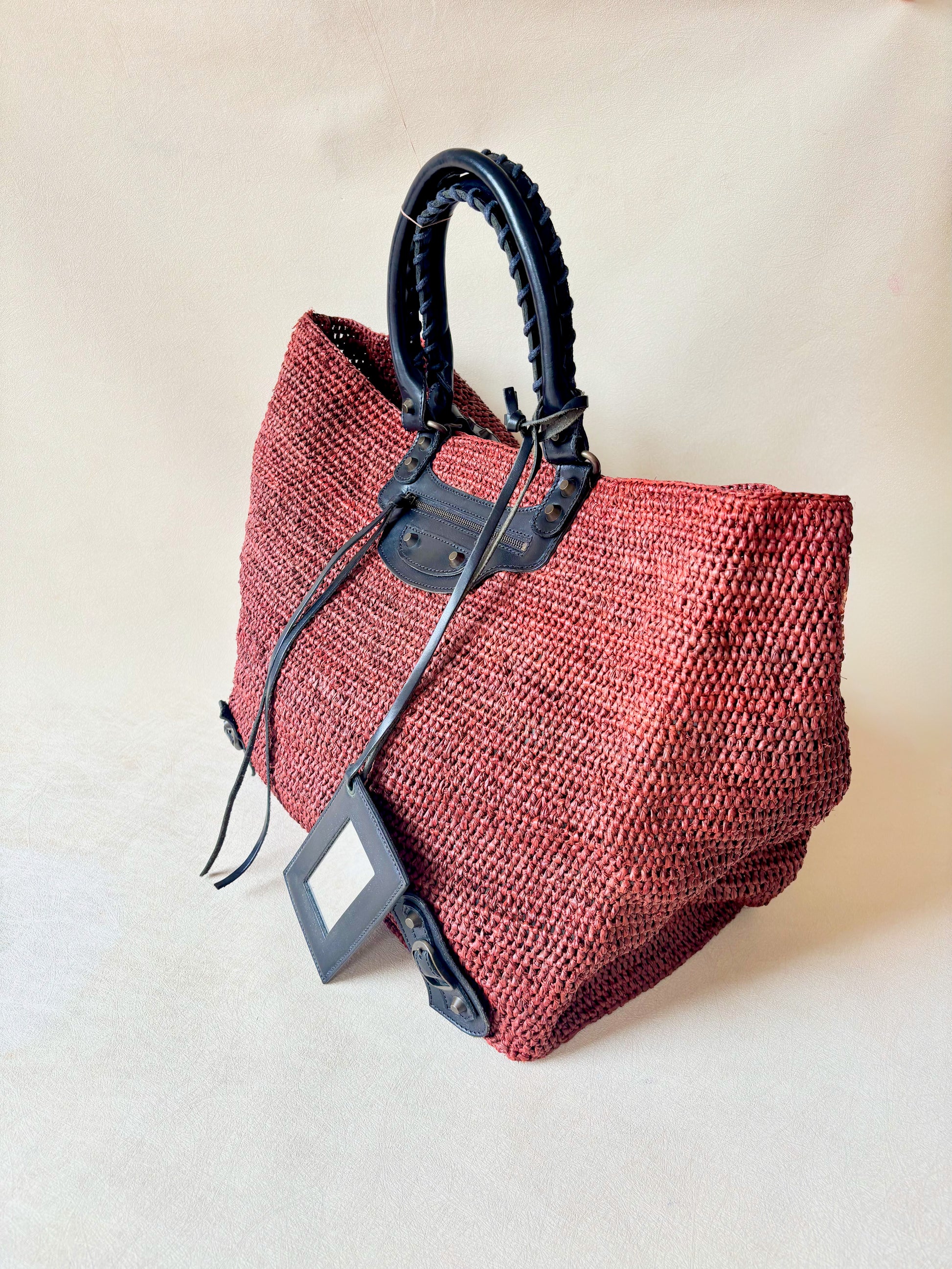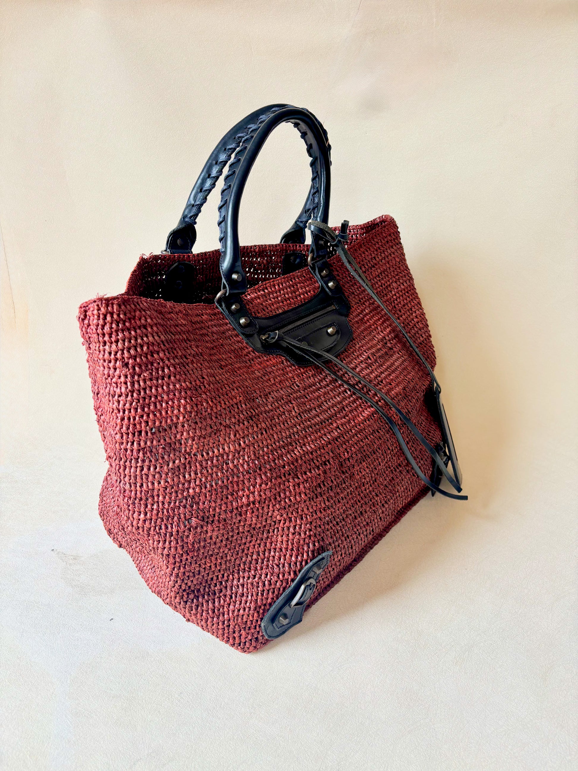 * 2 anses en cuir noir surpiqué de gros fil de coton, deux poches plaquées à l’intérieur