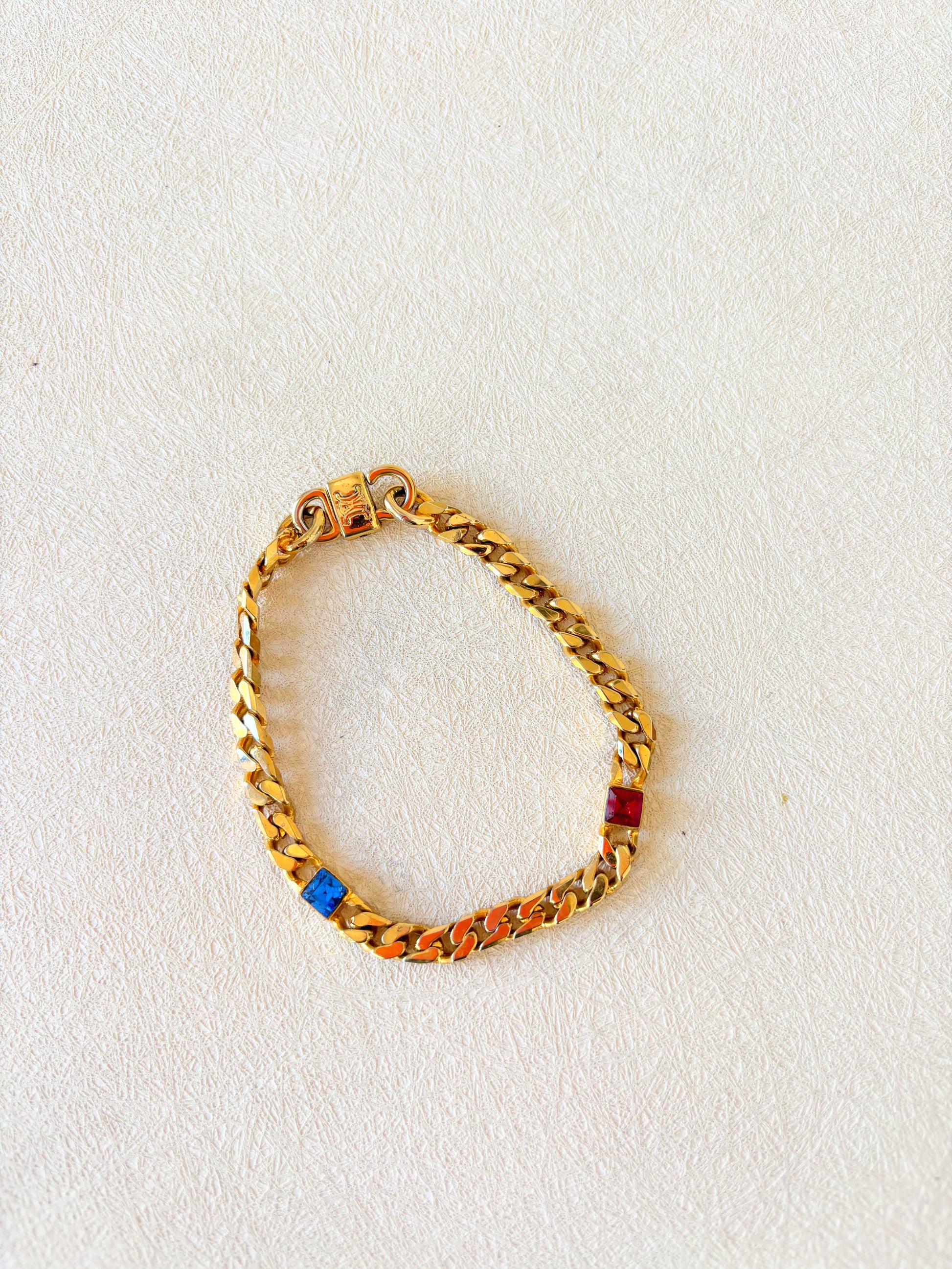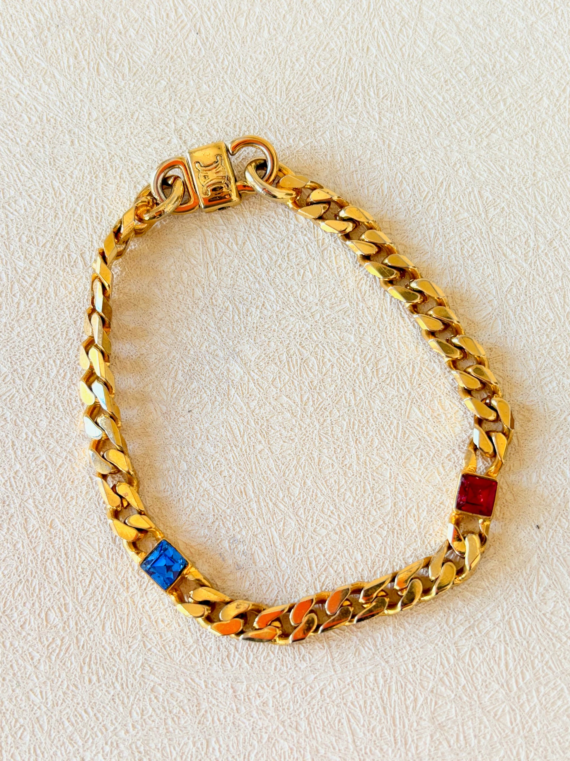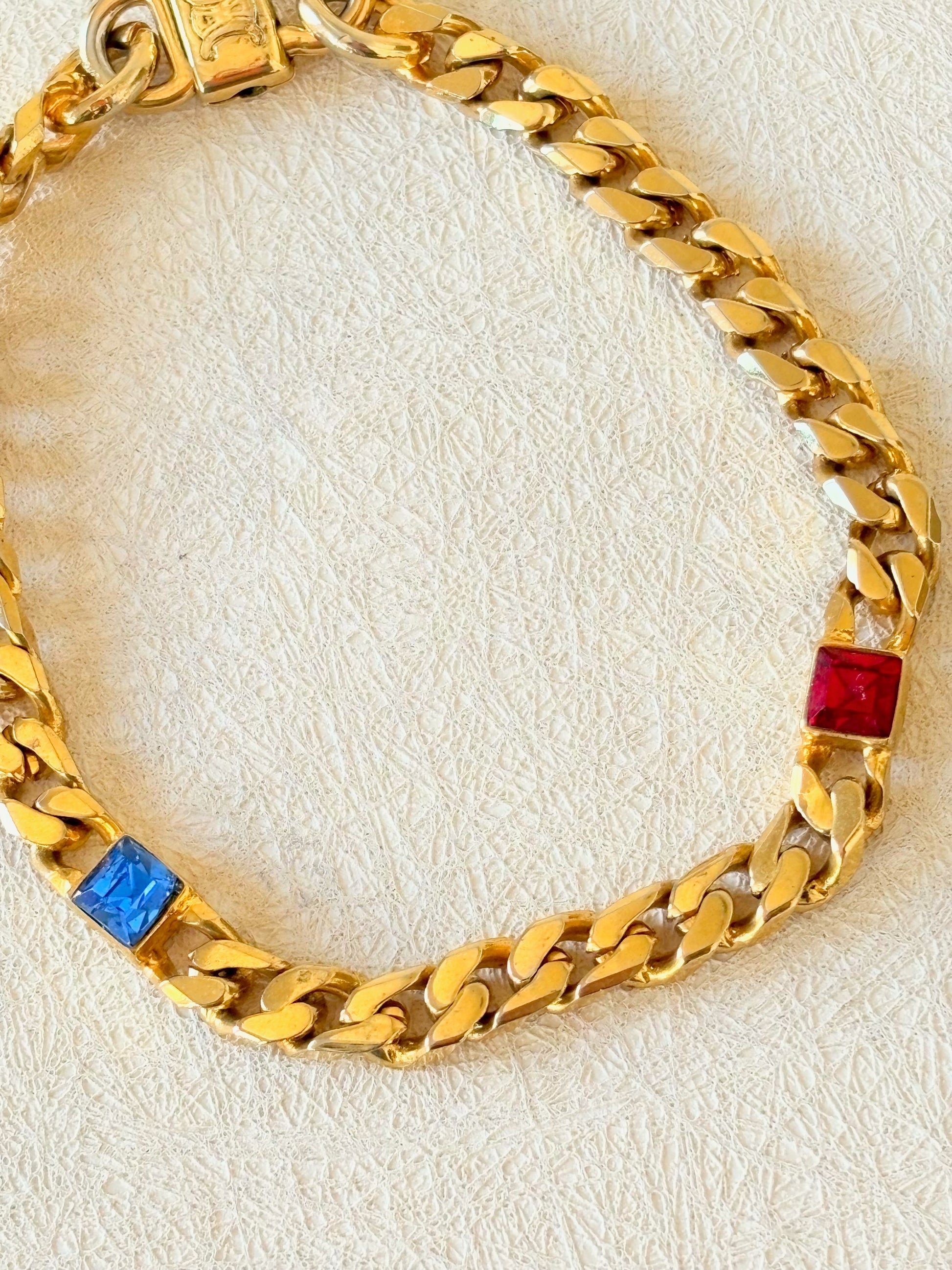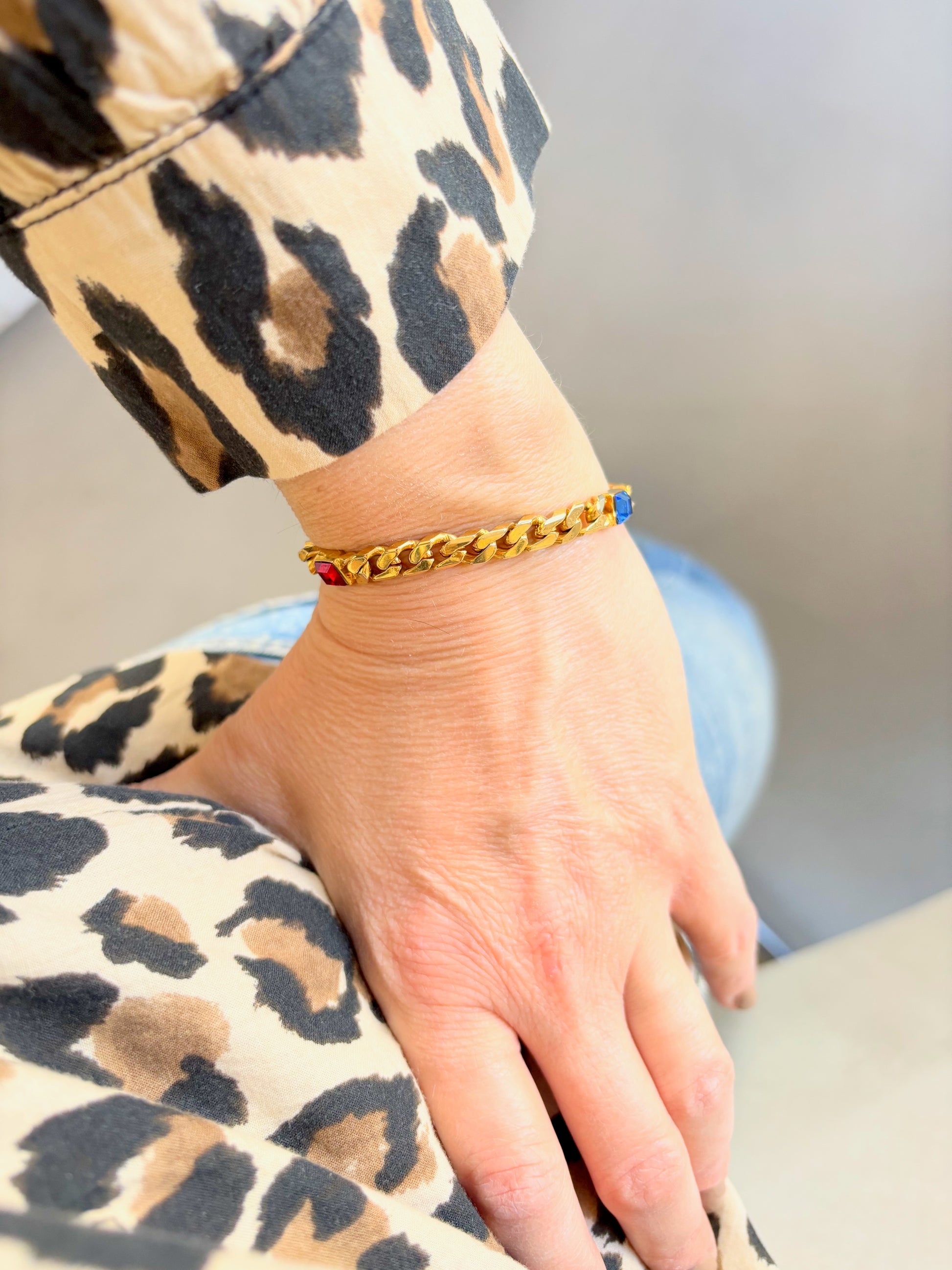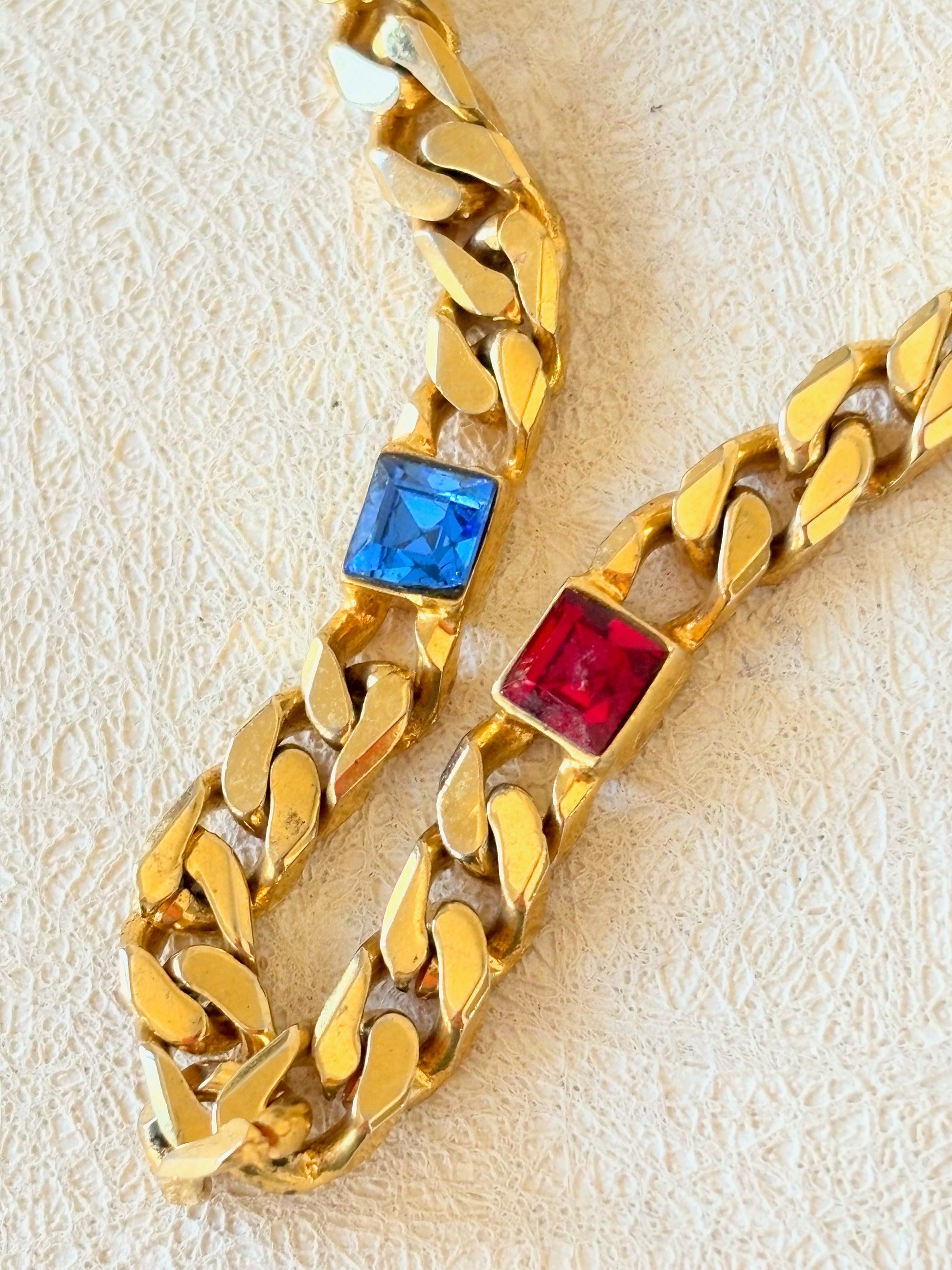 * Mailles gourmette serties de 2 cristaux : un rouge et un bleu
