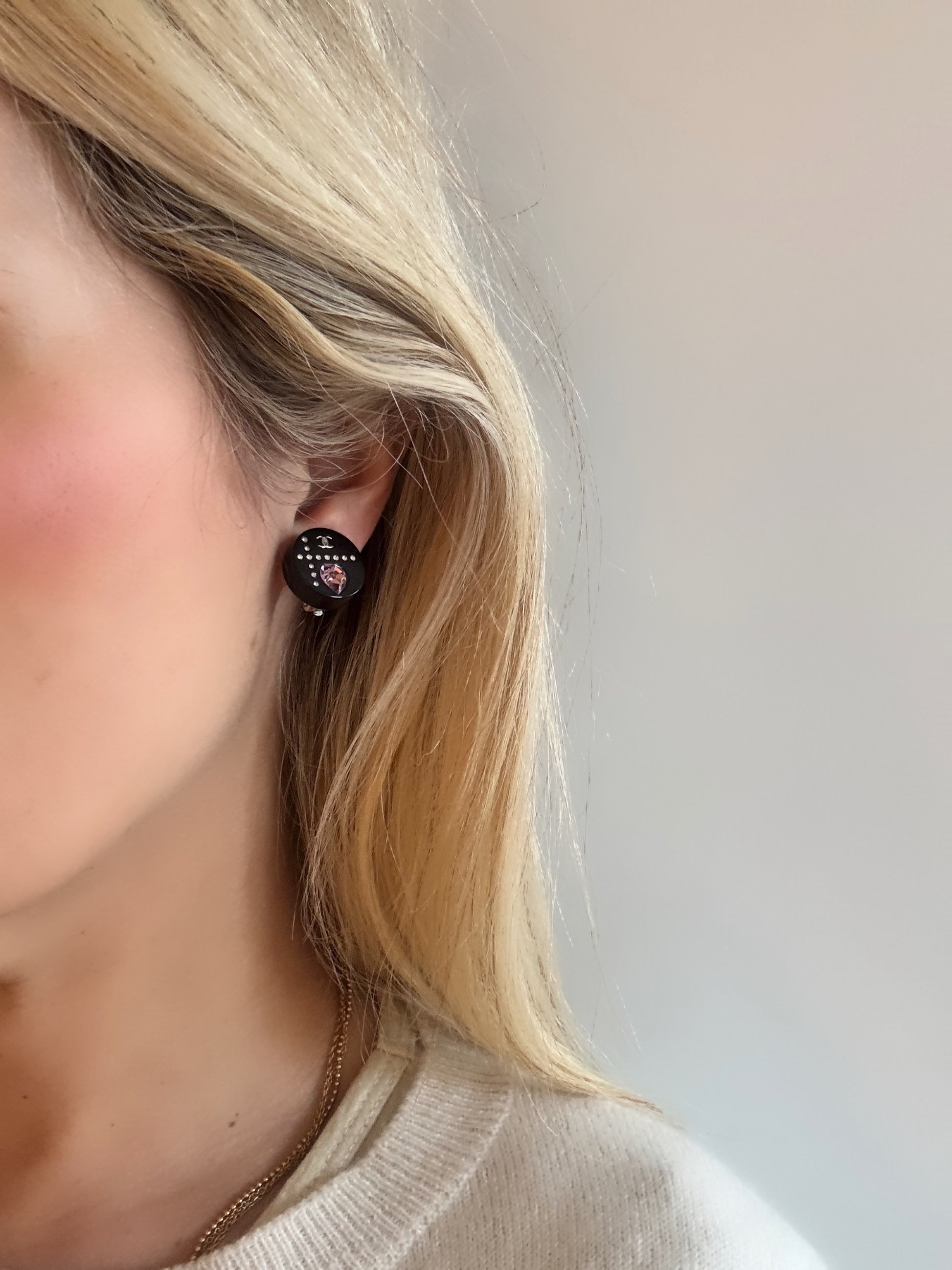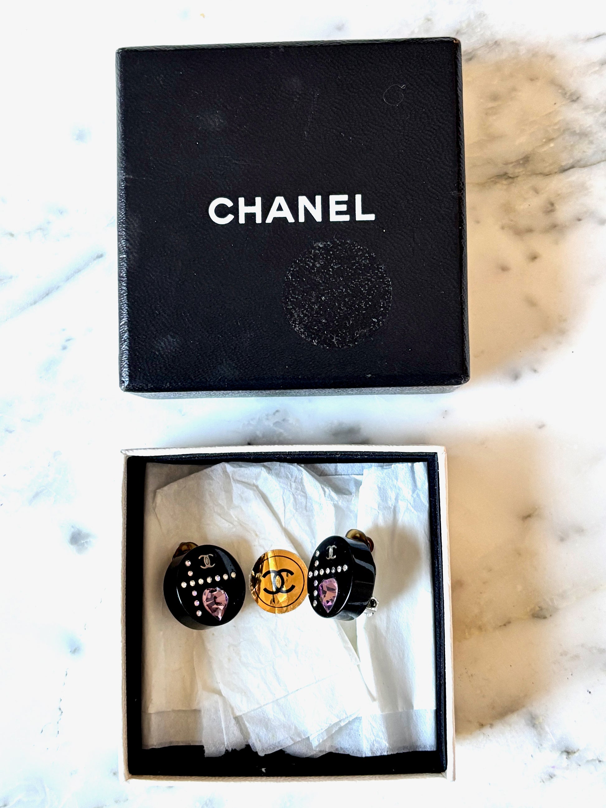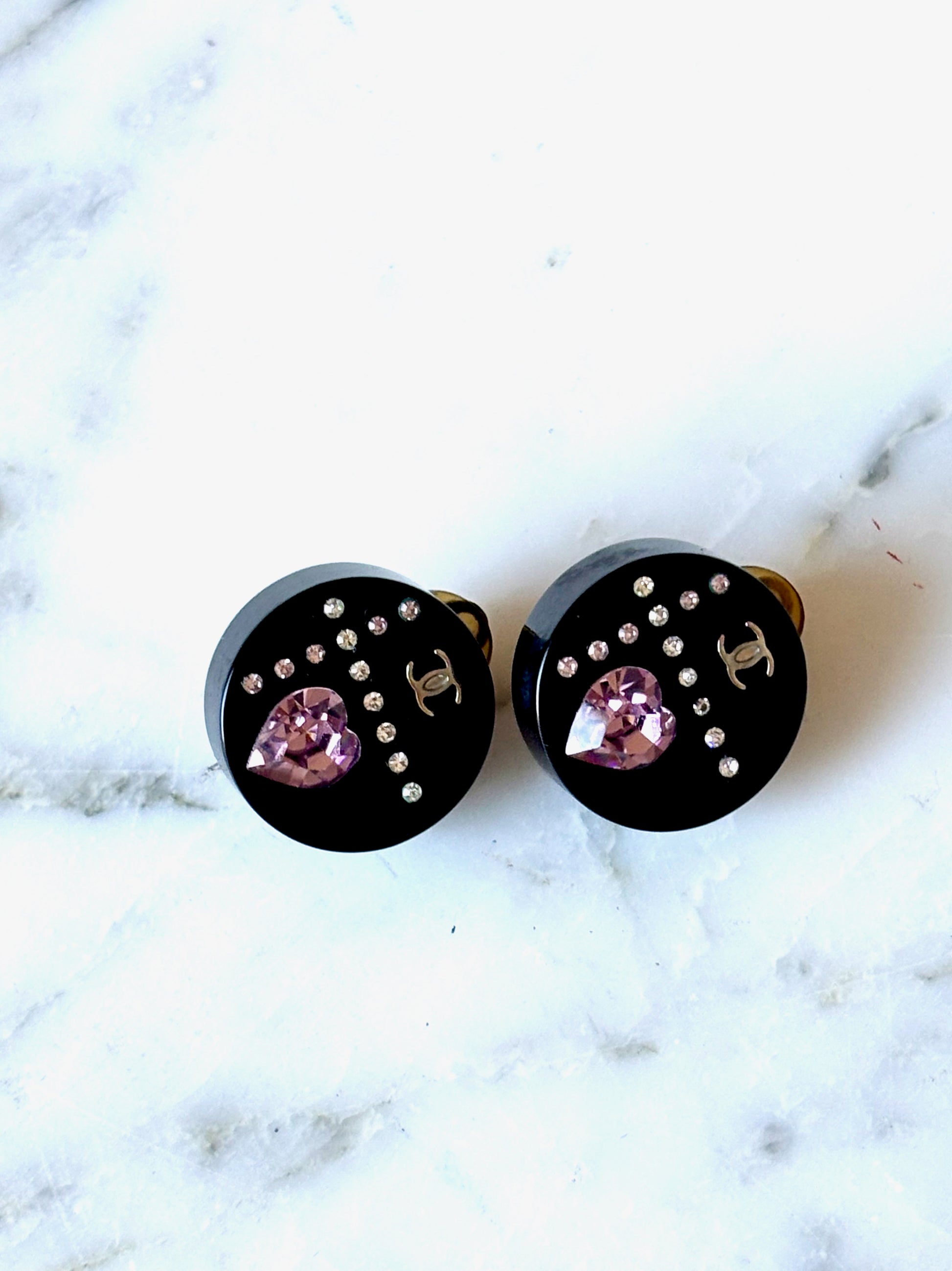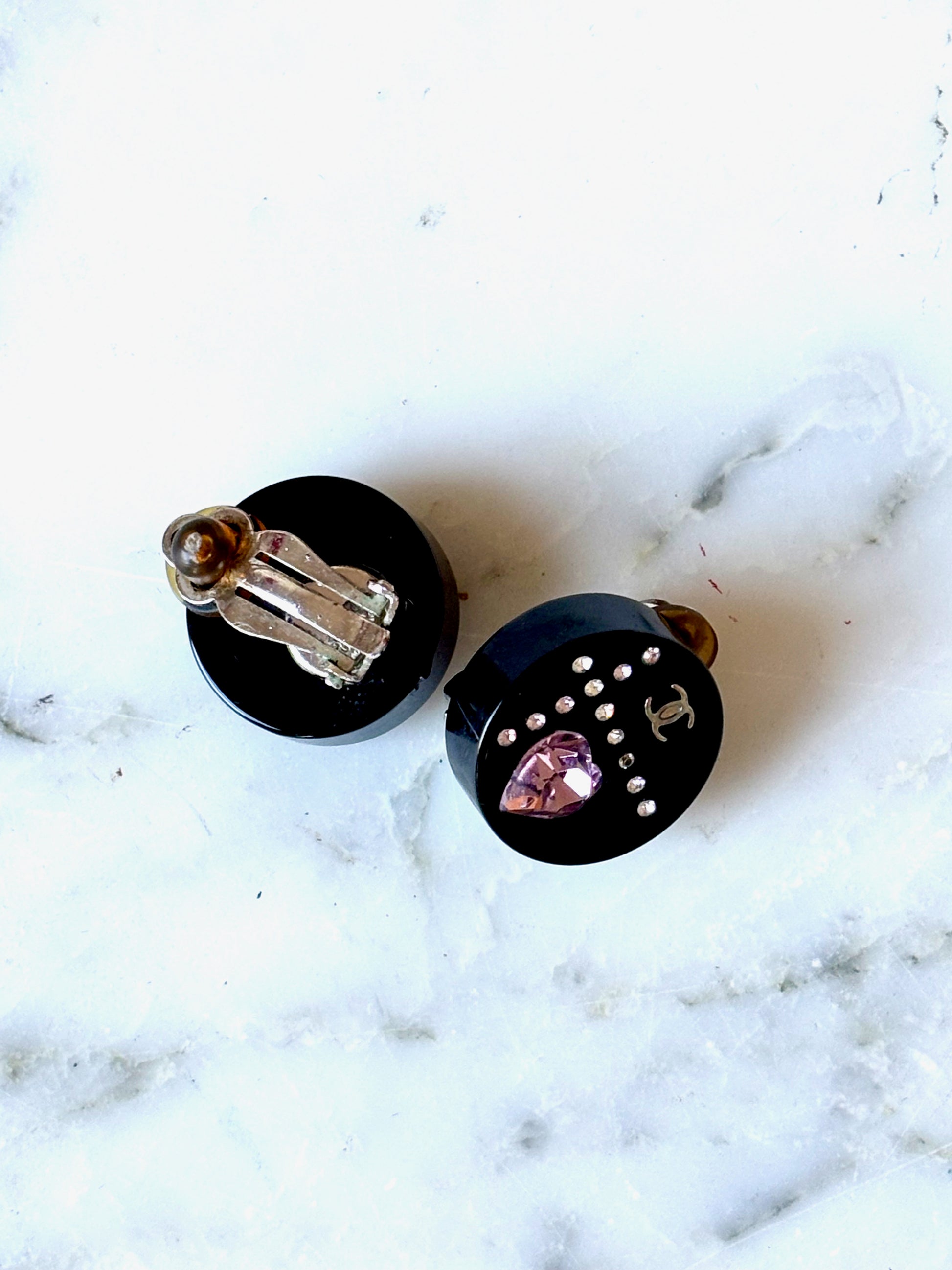 * En céramique noir avec logo CC en métal argenté, incrustée de strass et d'un coeur rose