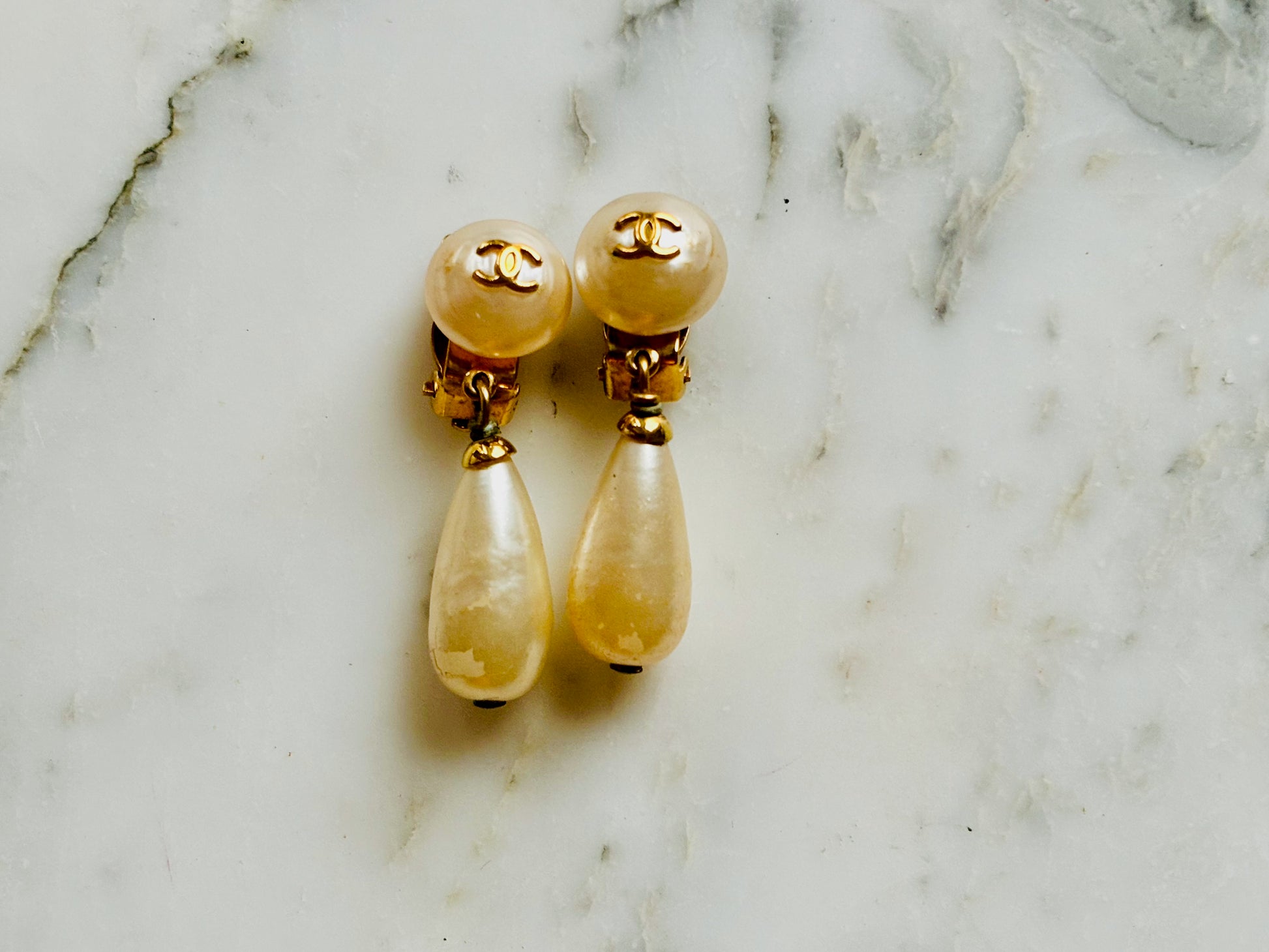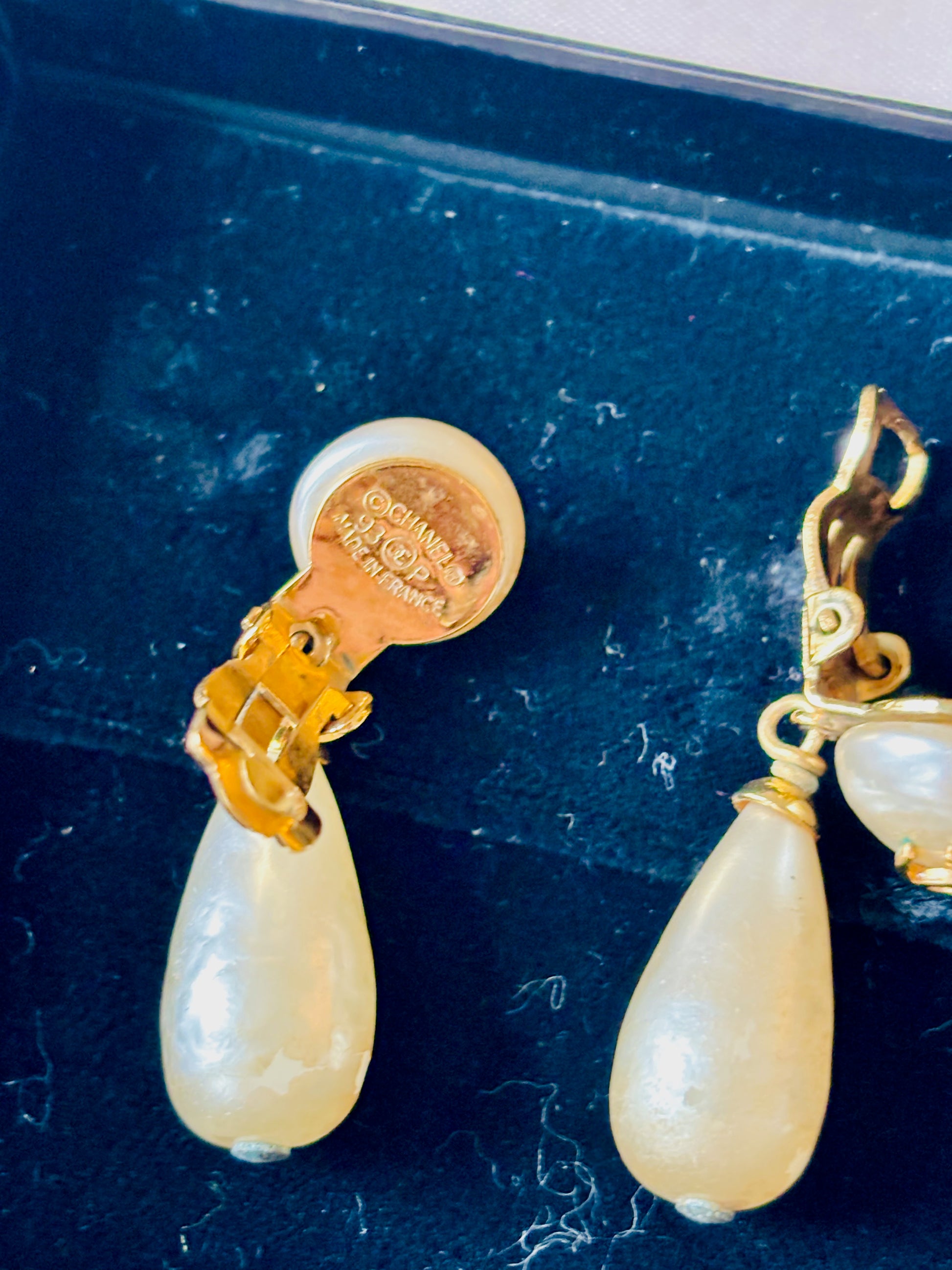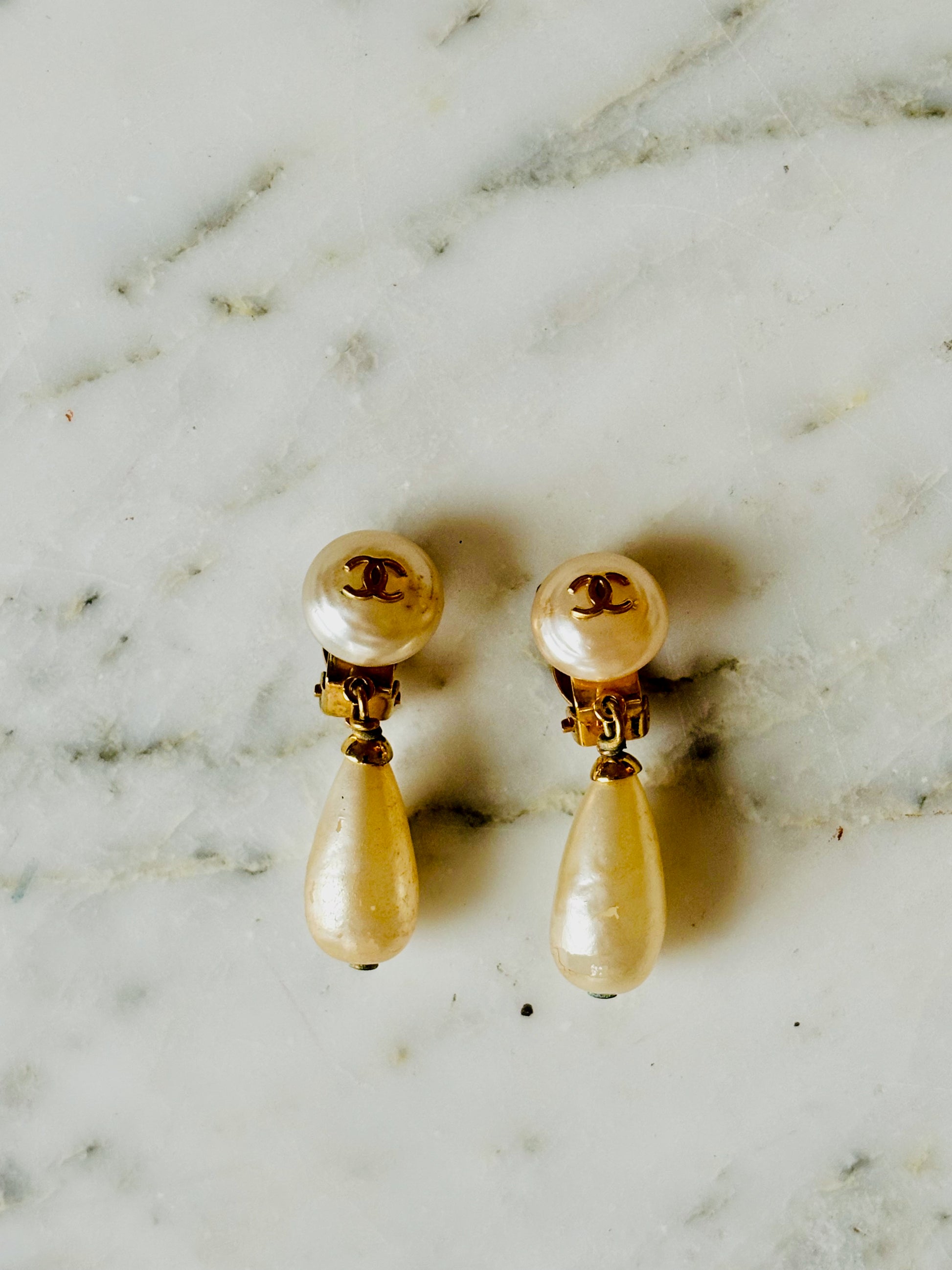 * Boucles d'oreilles CHANEL en perles avec pendentif