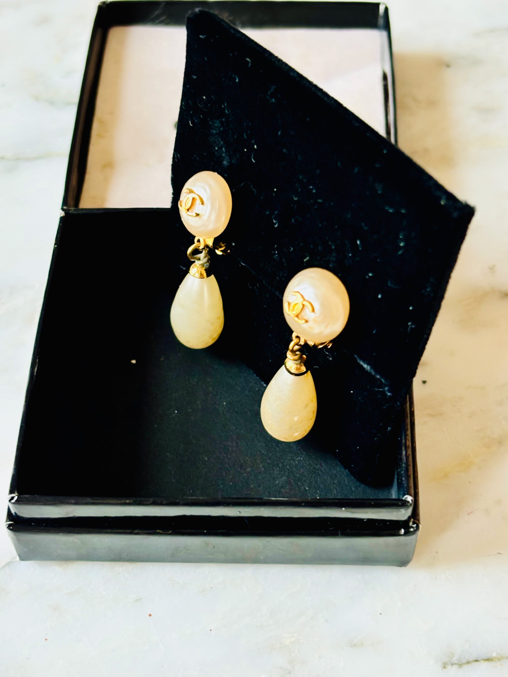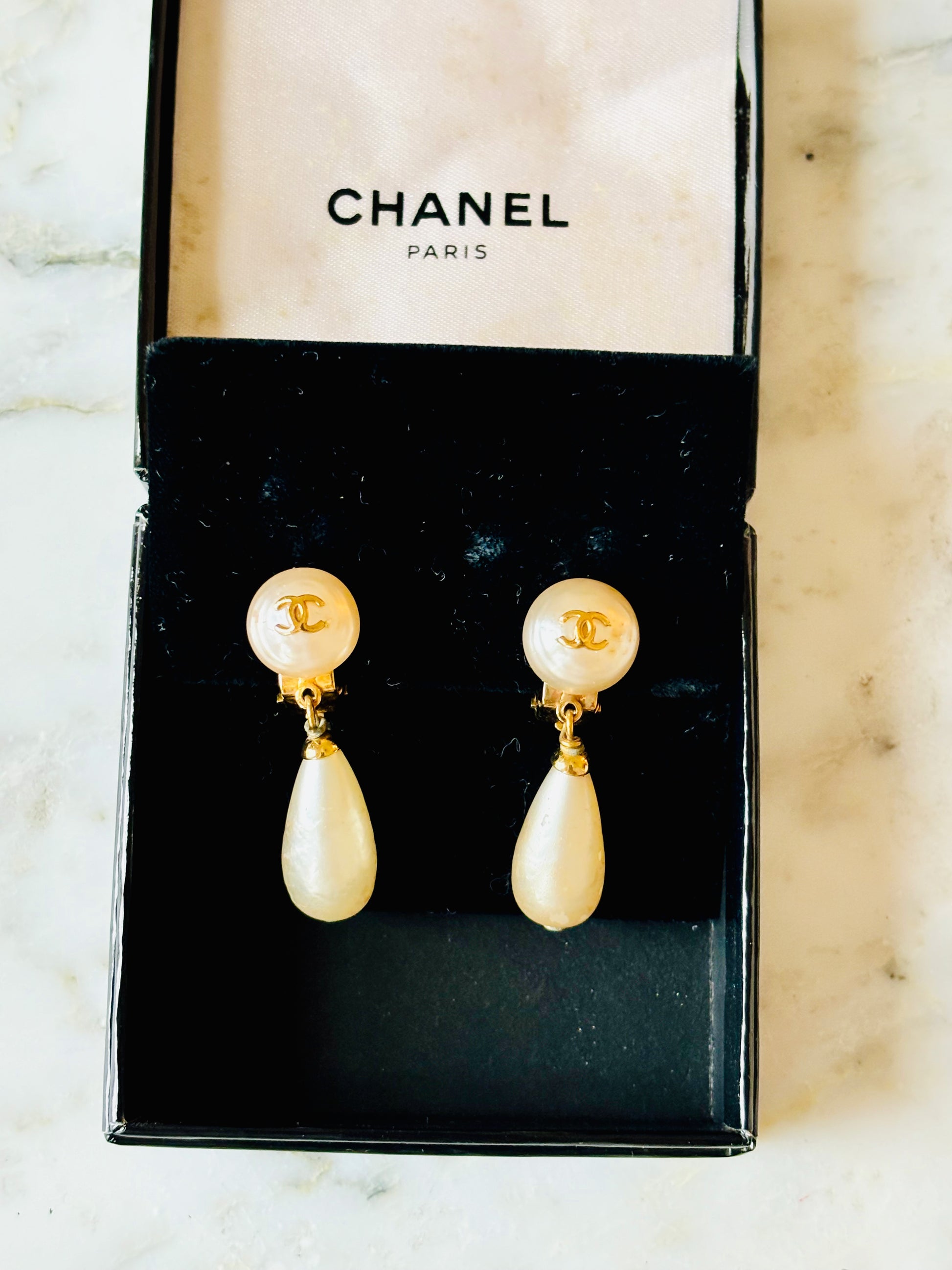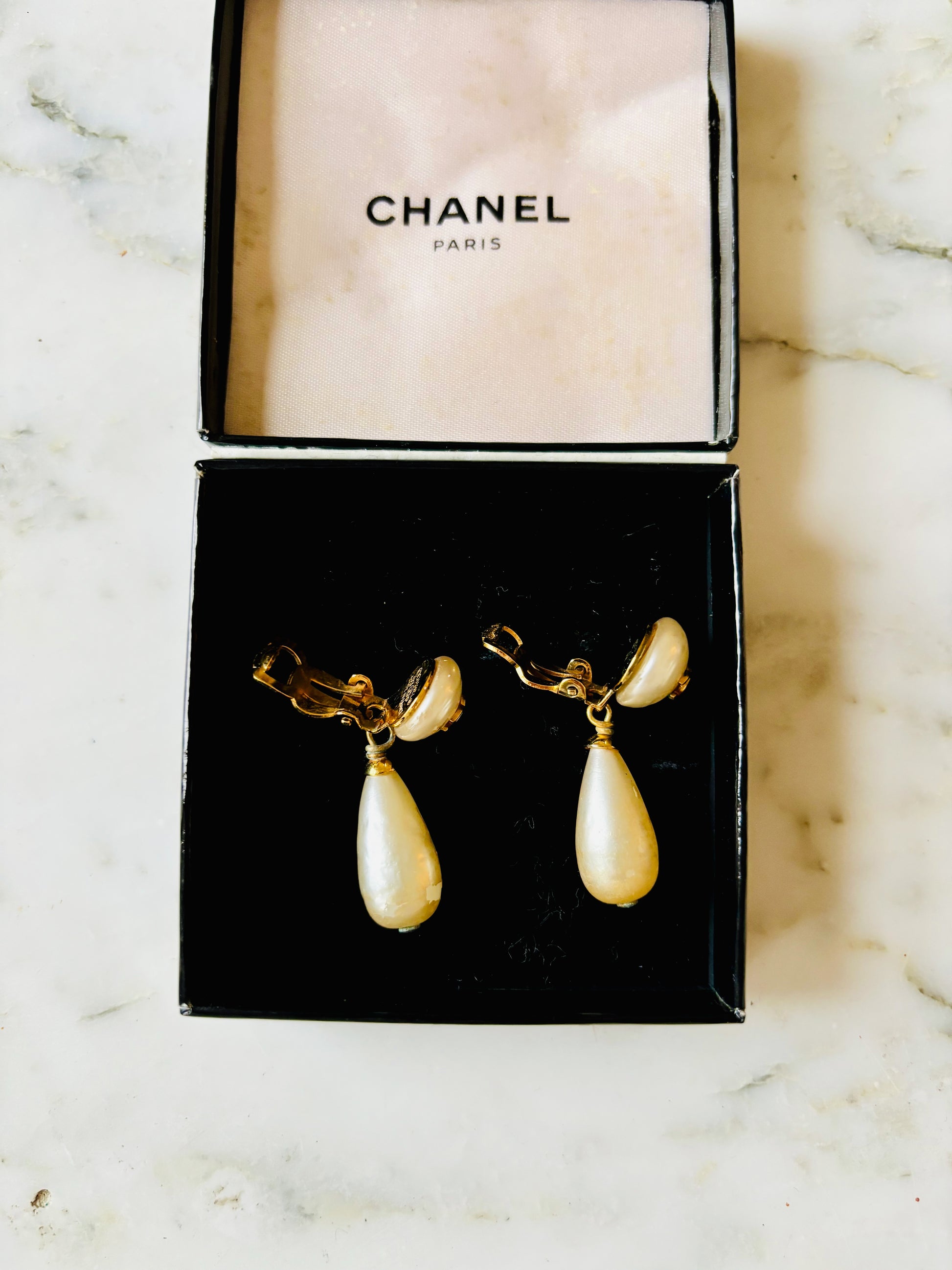* Boucles d'oreilles CHANEL en perles avec pendentif