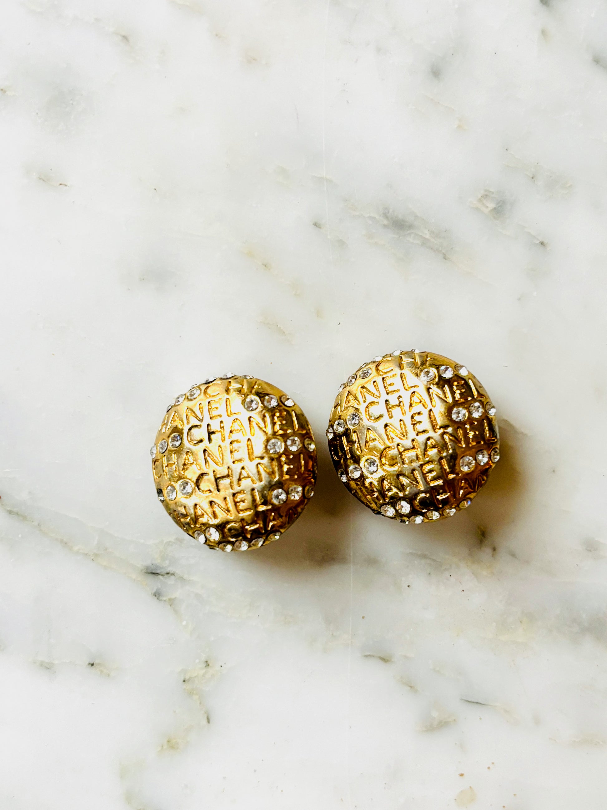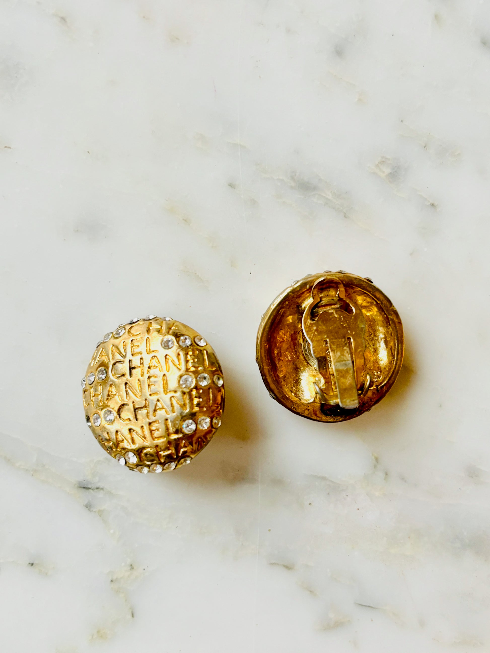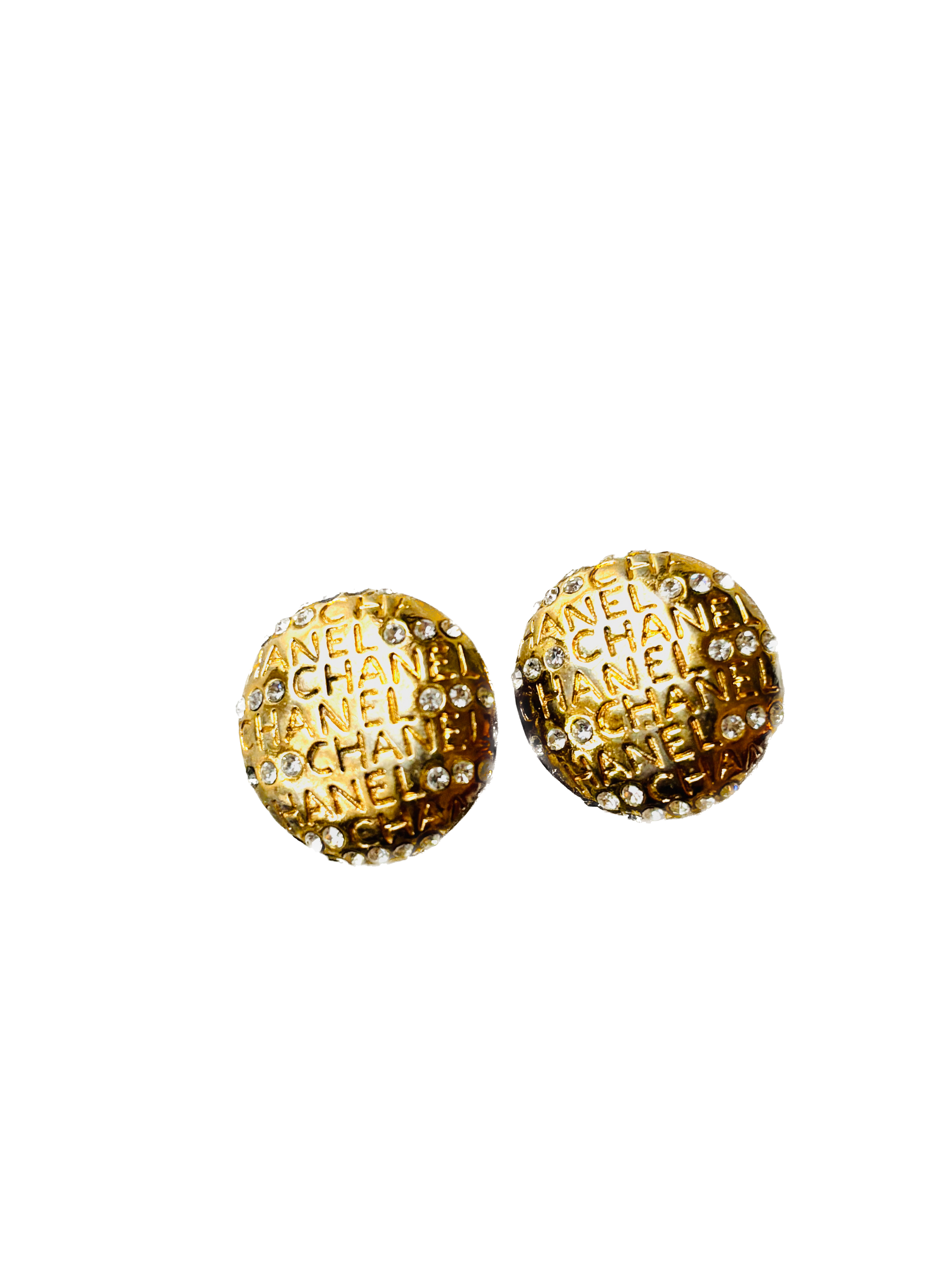 * En métal doré, avec gravure au motif de la marque CHANEL, serti de strass