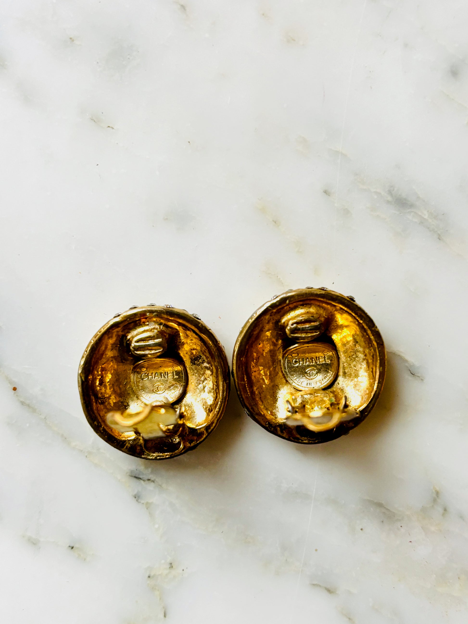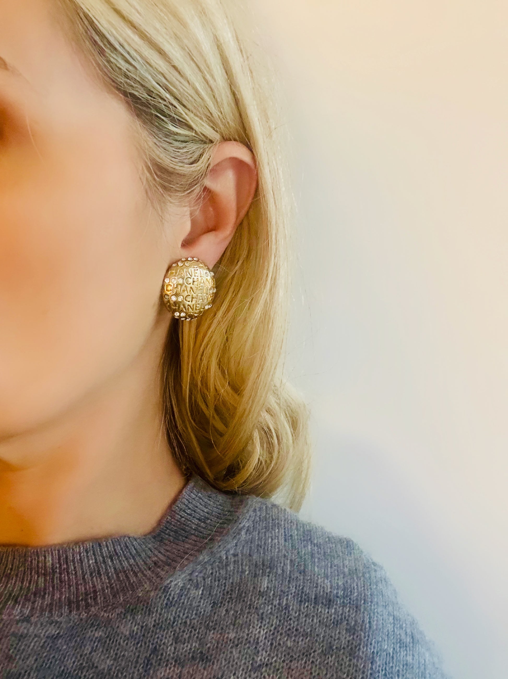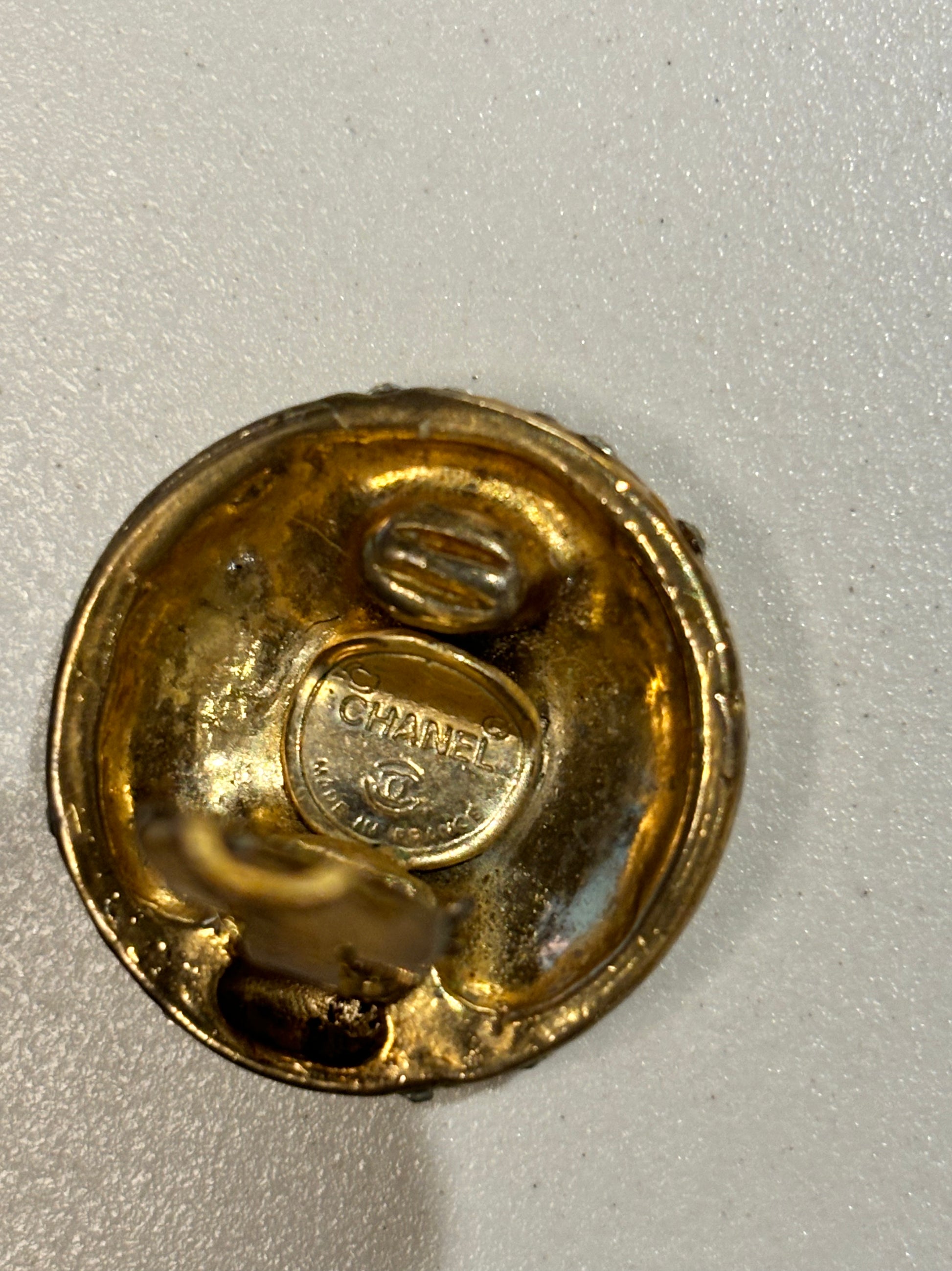 * En métal doré, avec gravure au motif de la marque CHANEL, serti de strass
