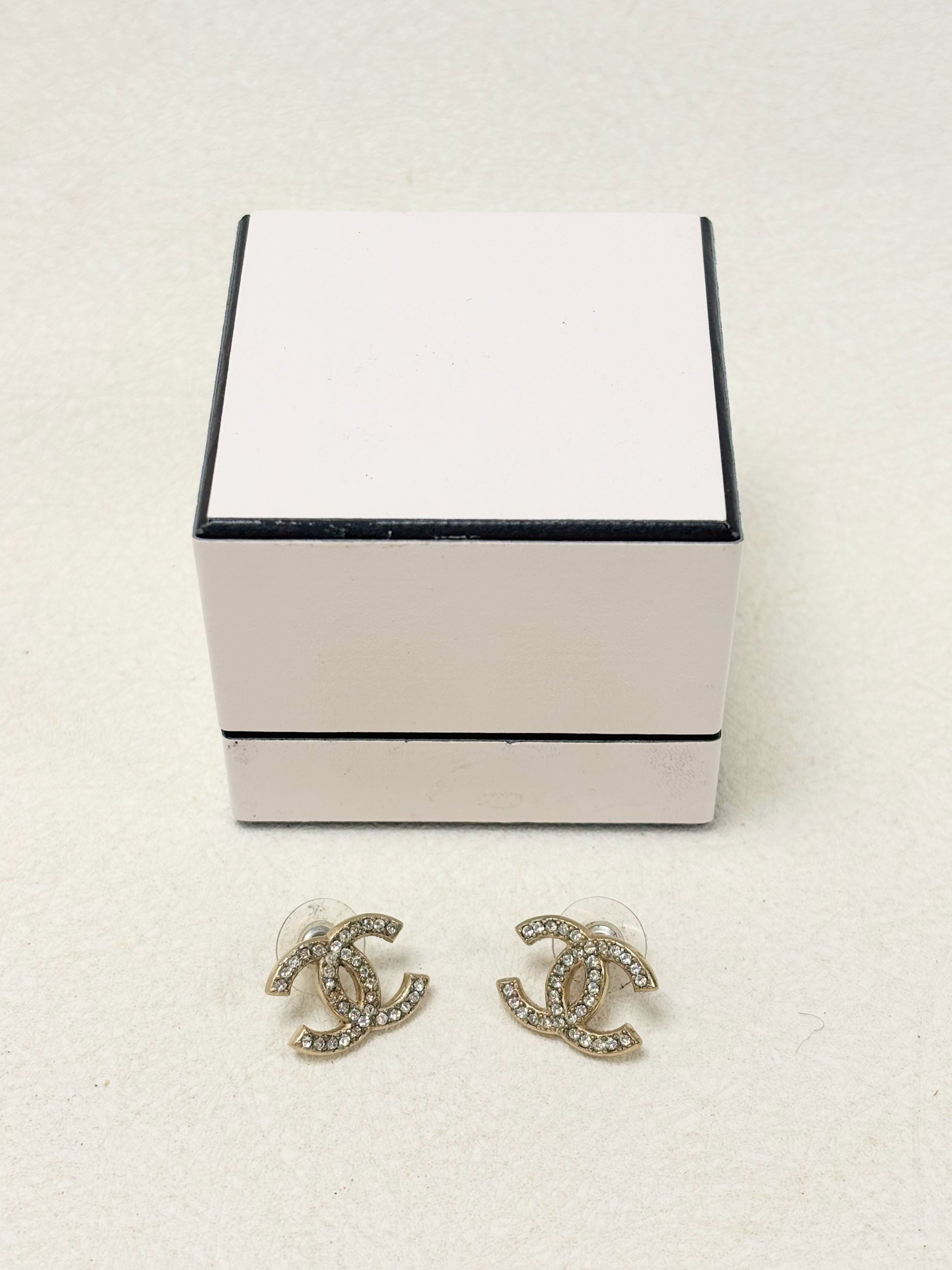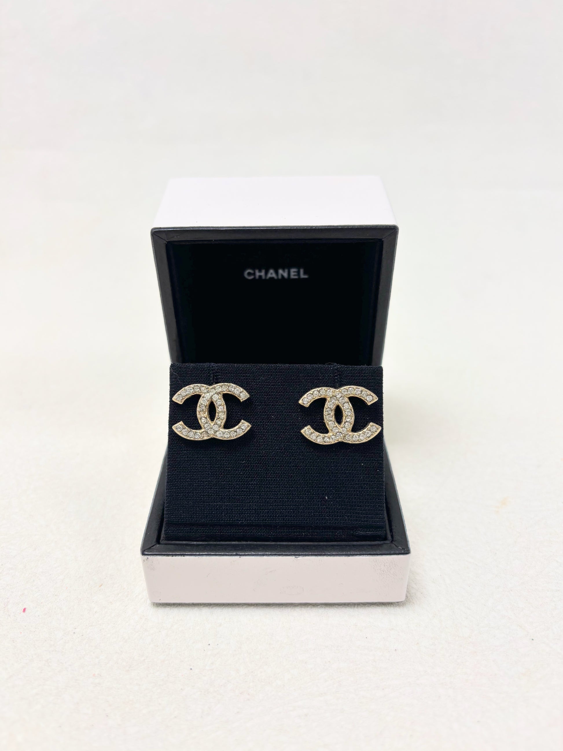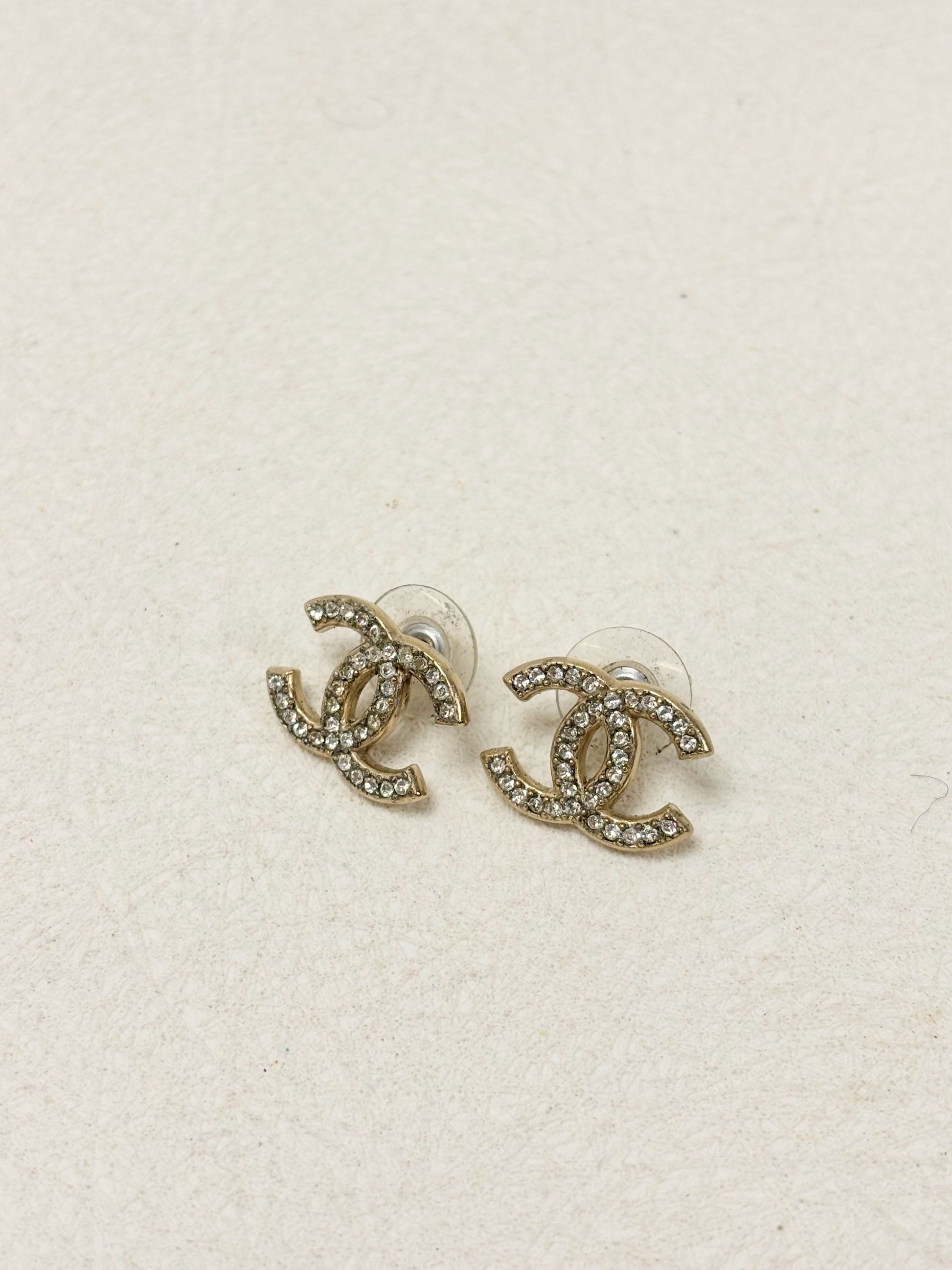 * Logo CC en métal martelé couleur champagne, orné de strass