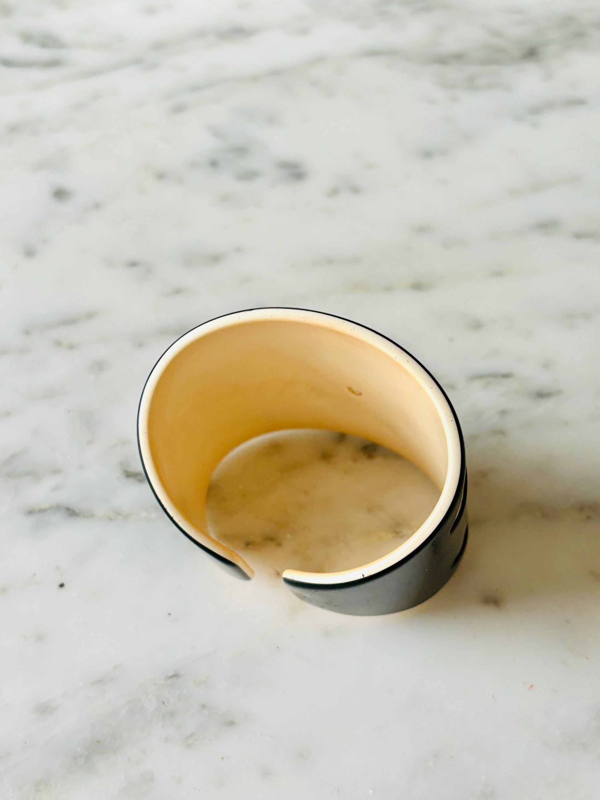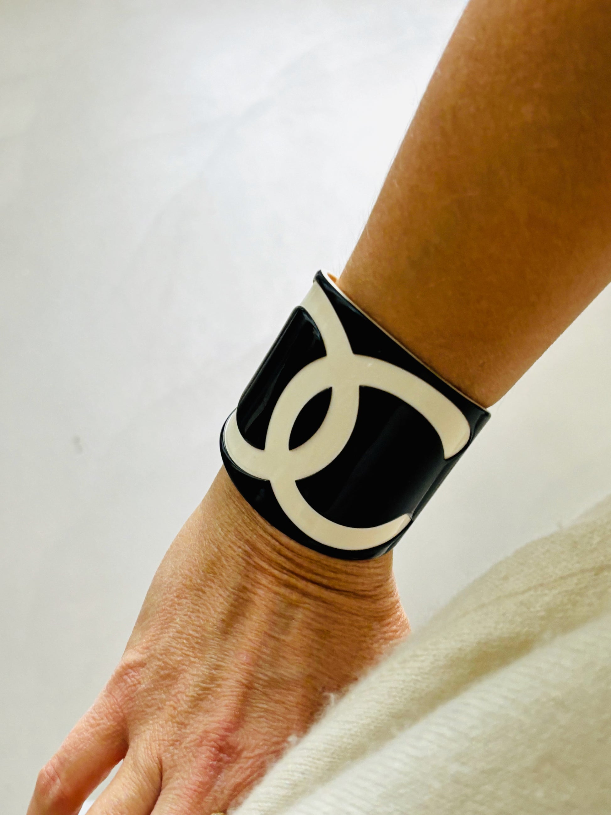 * Bracelet Manchette CHANEL en résine noire et maxi logo CC contrastant blanc