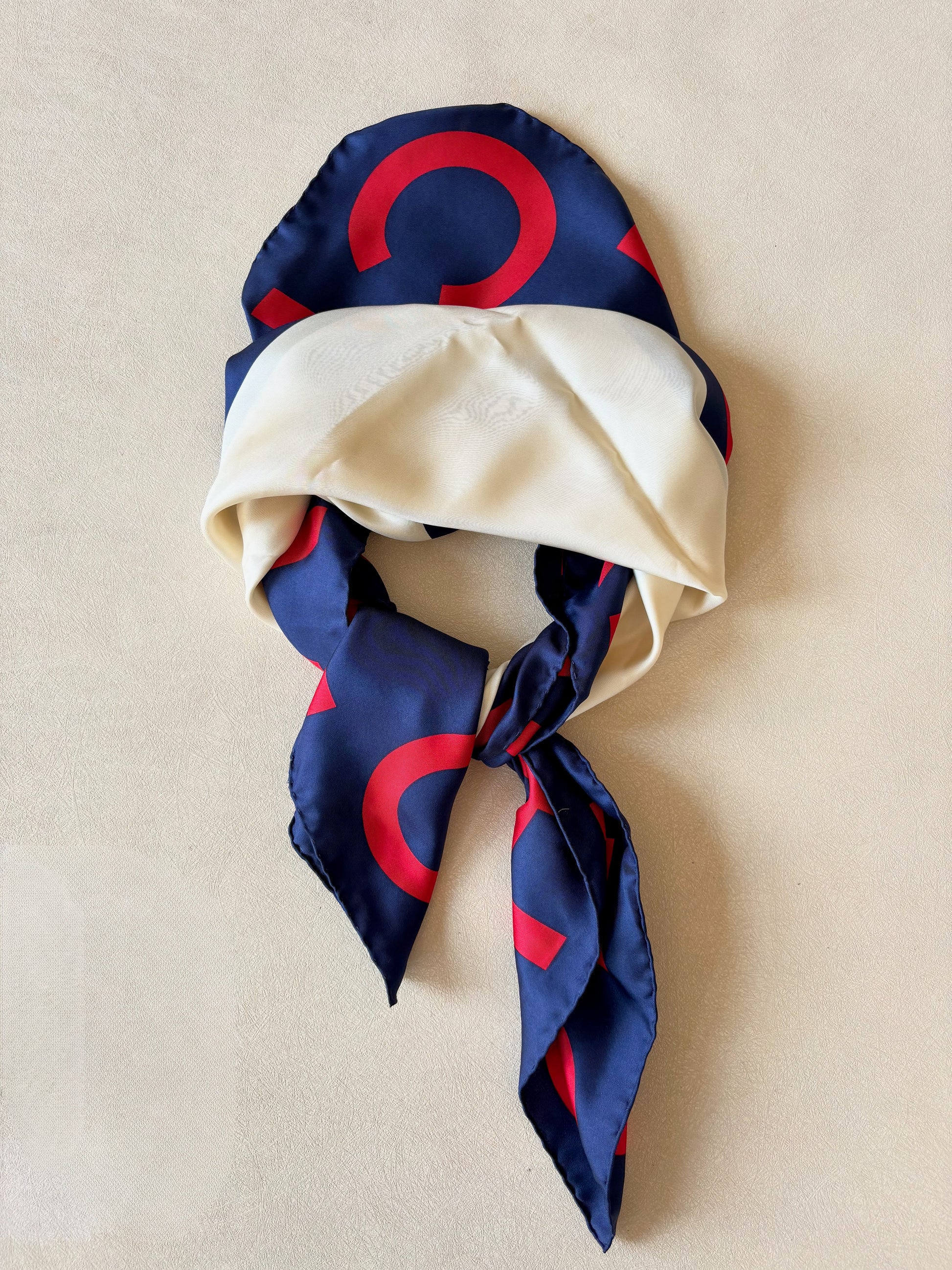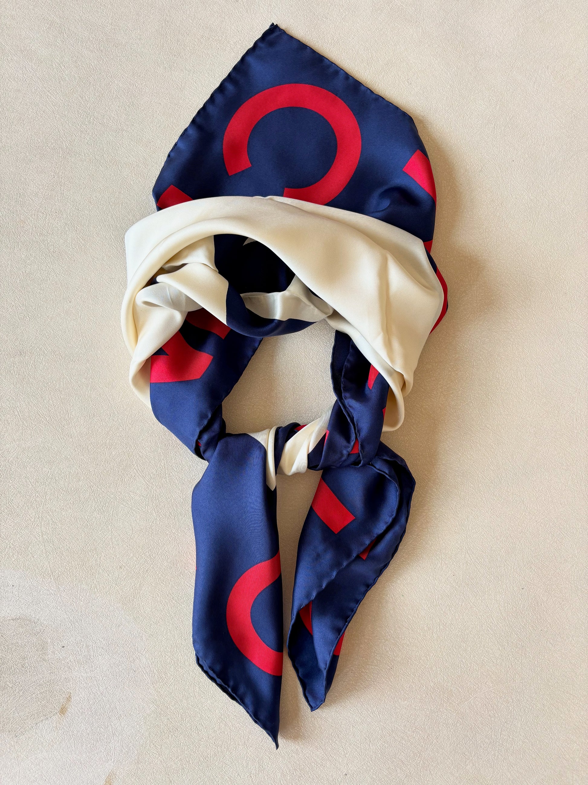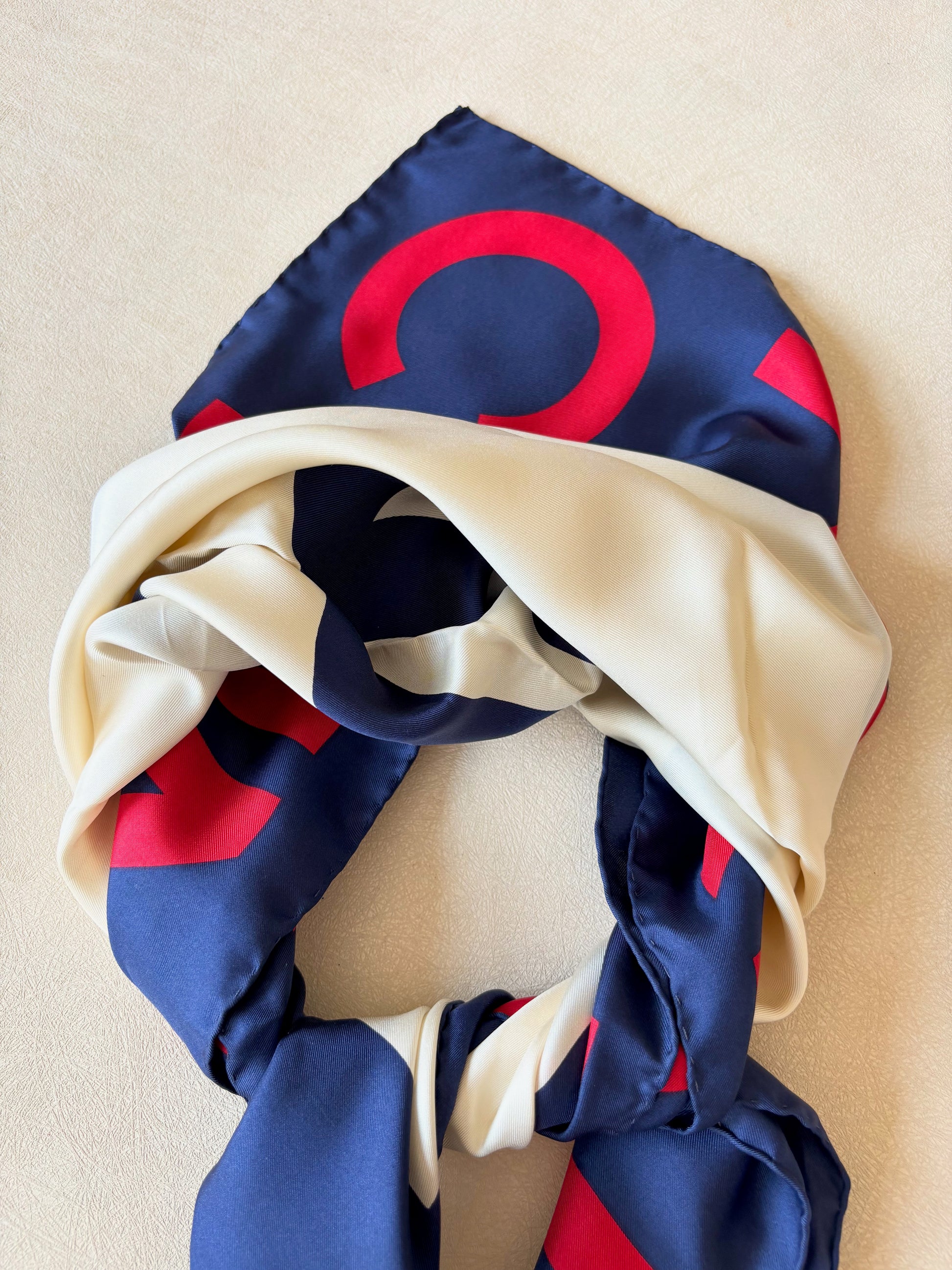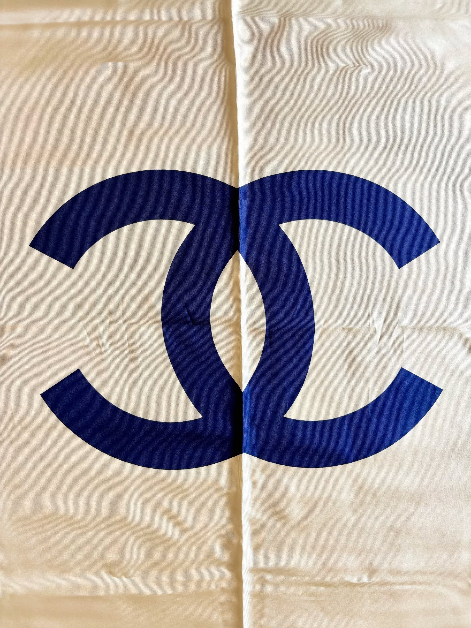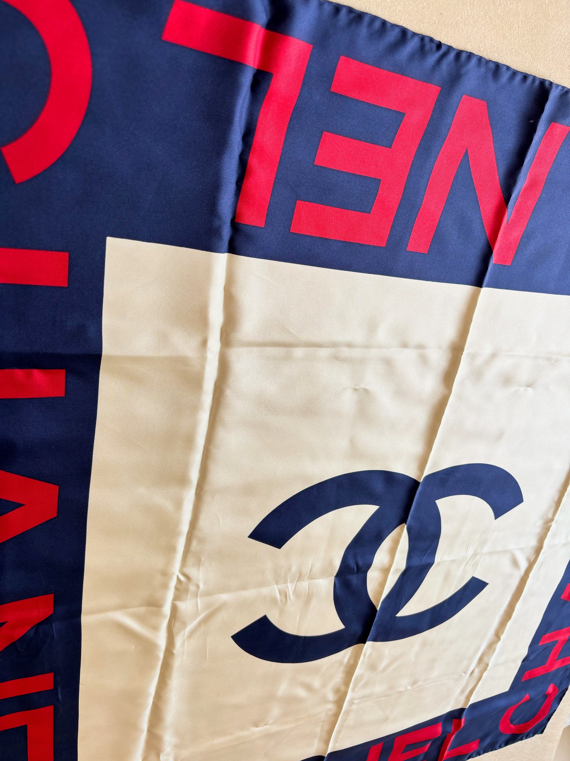 * Bordure logo CHANEL rouge sur fond bleu marine