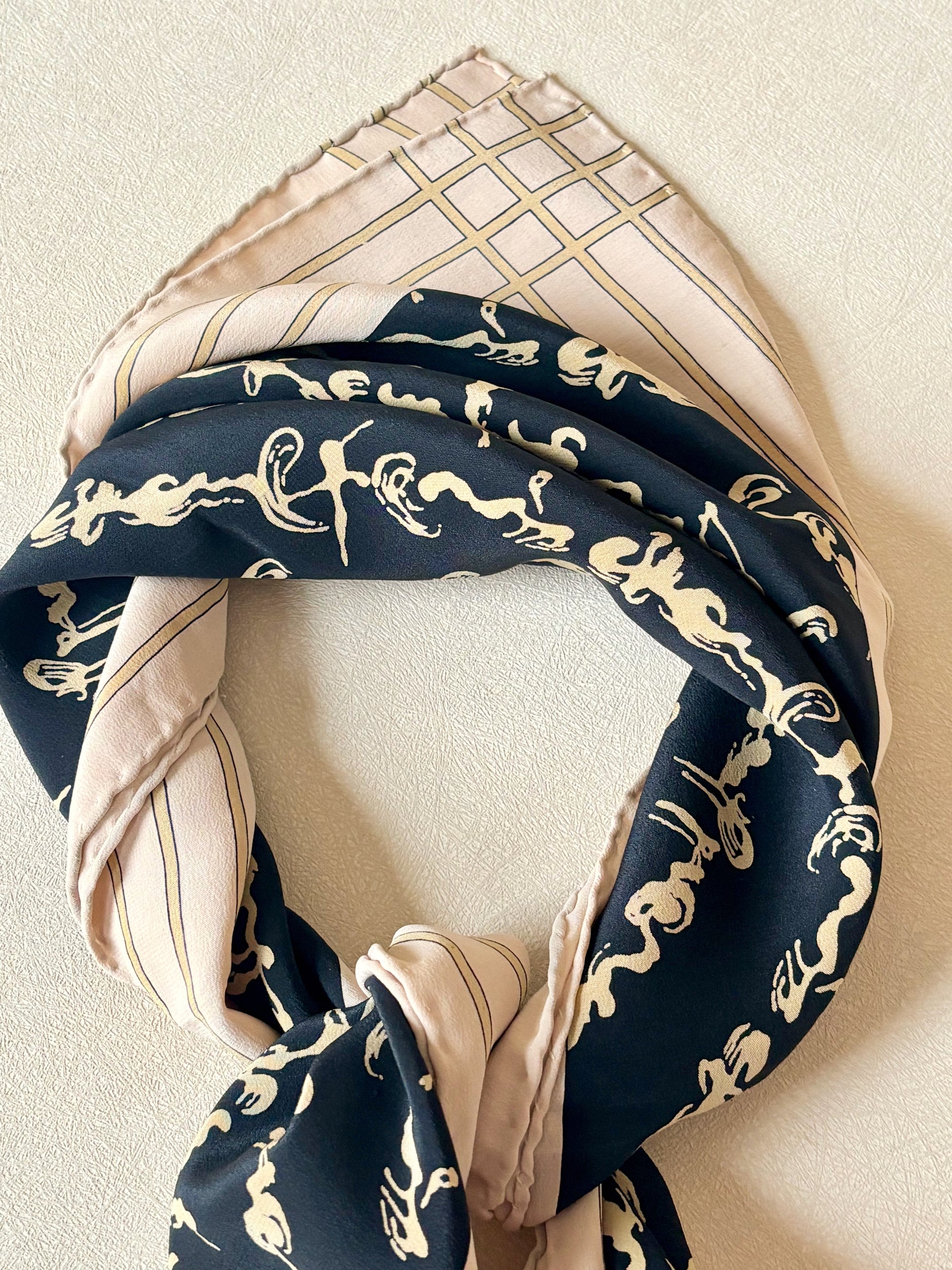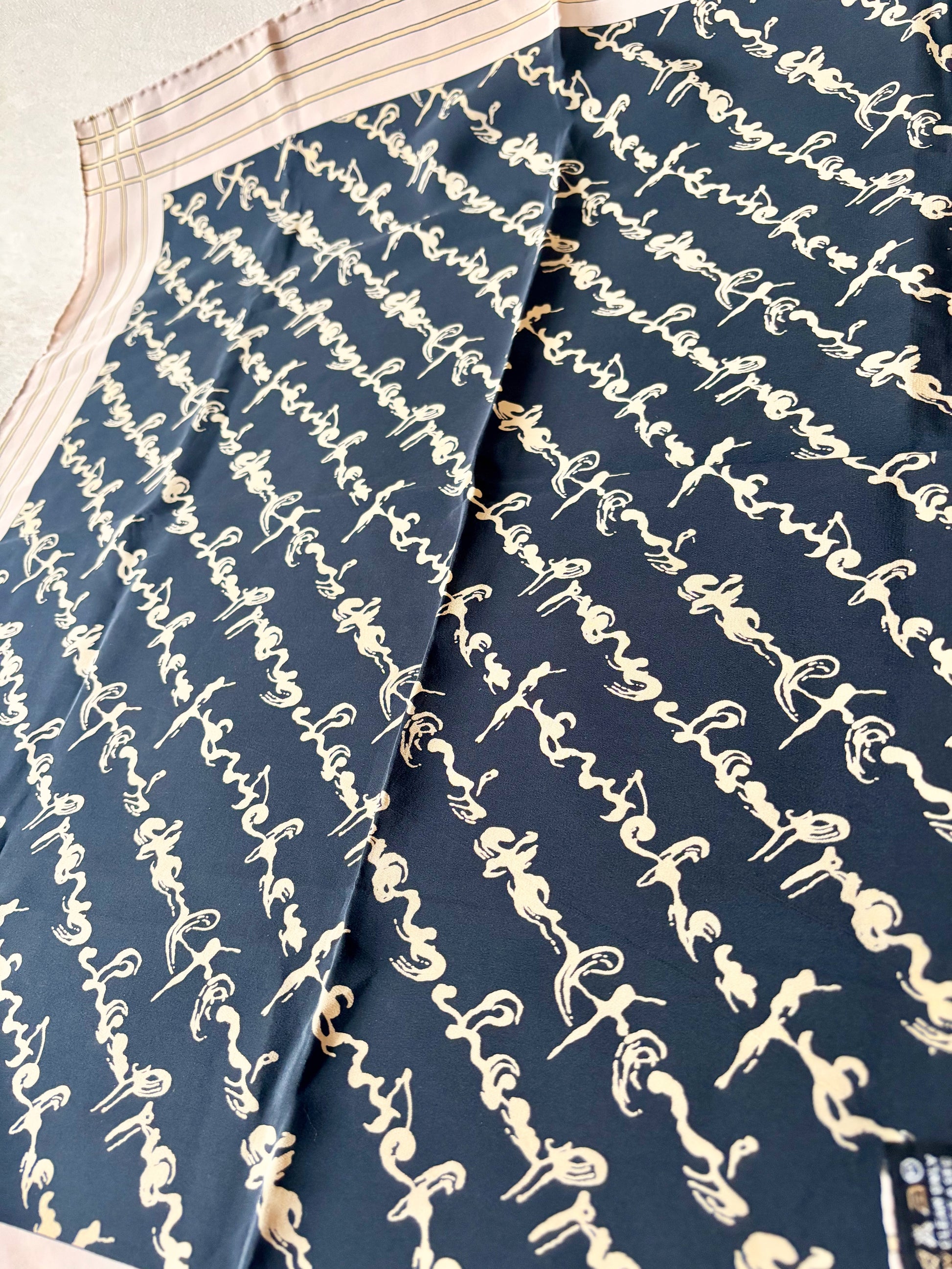 * Ecriture stylisée beige doré contrastant sur fond noir