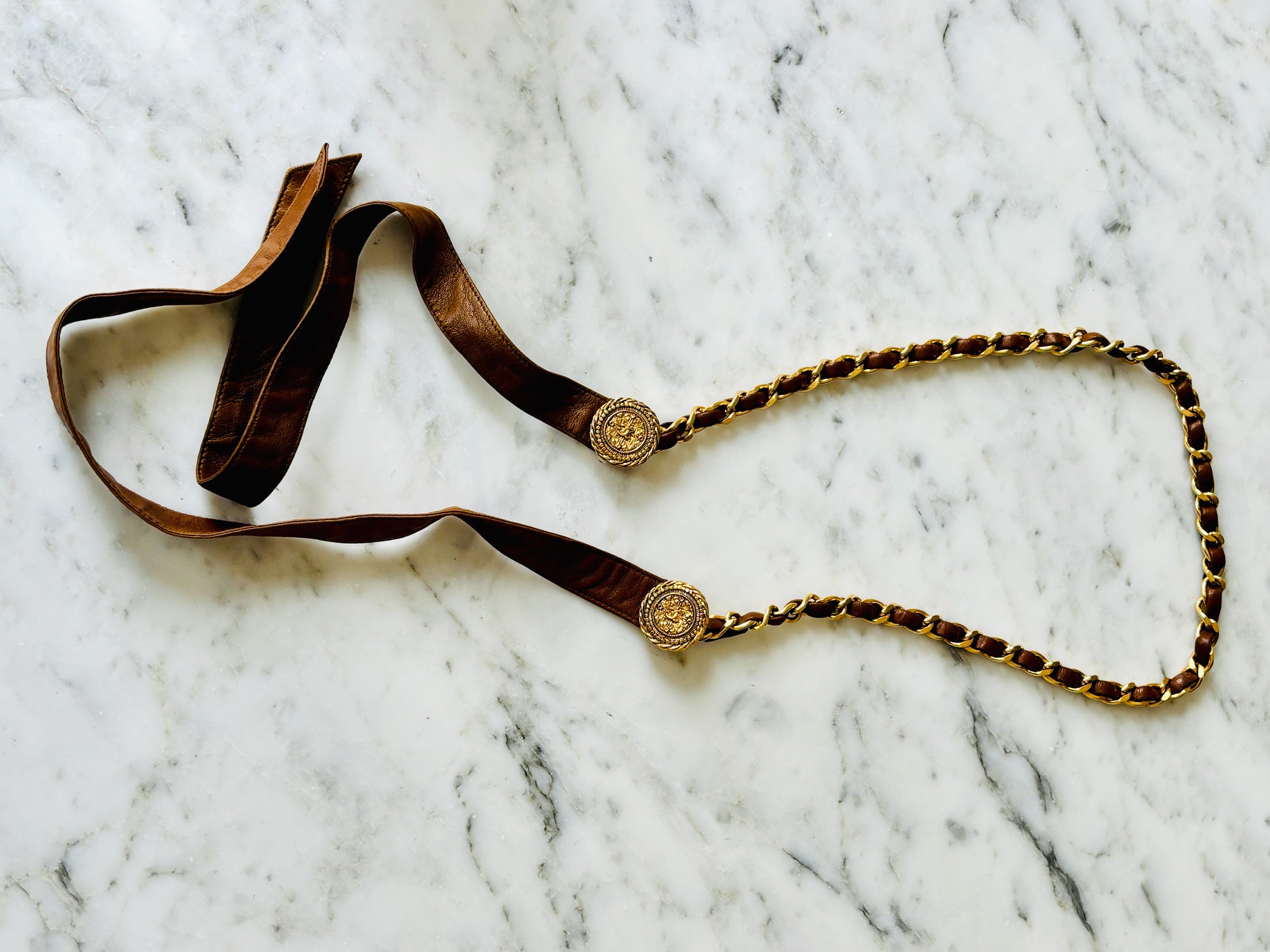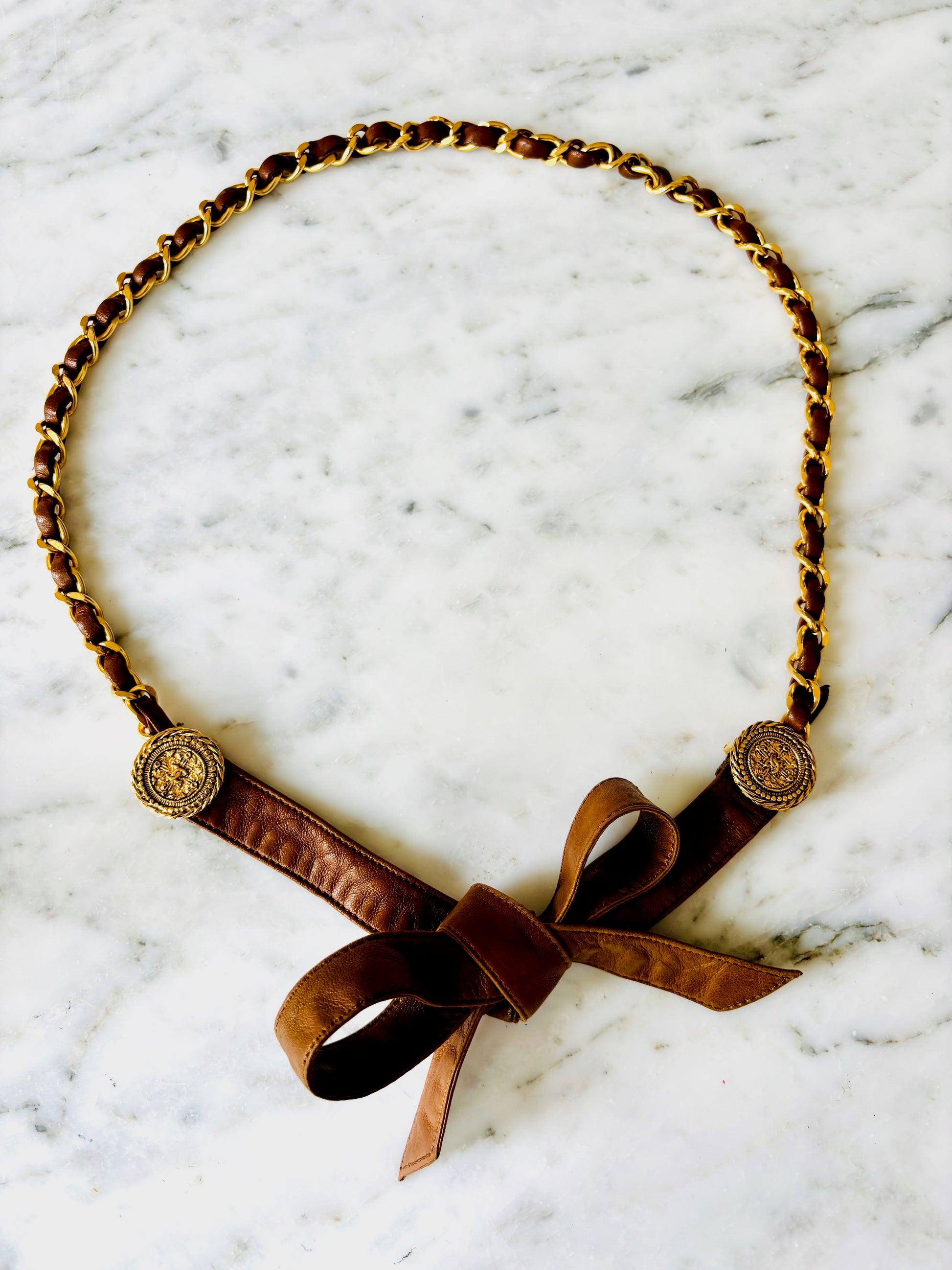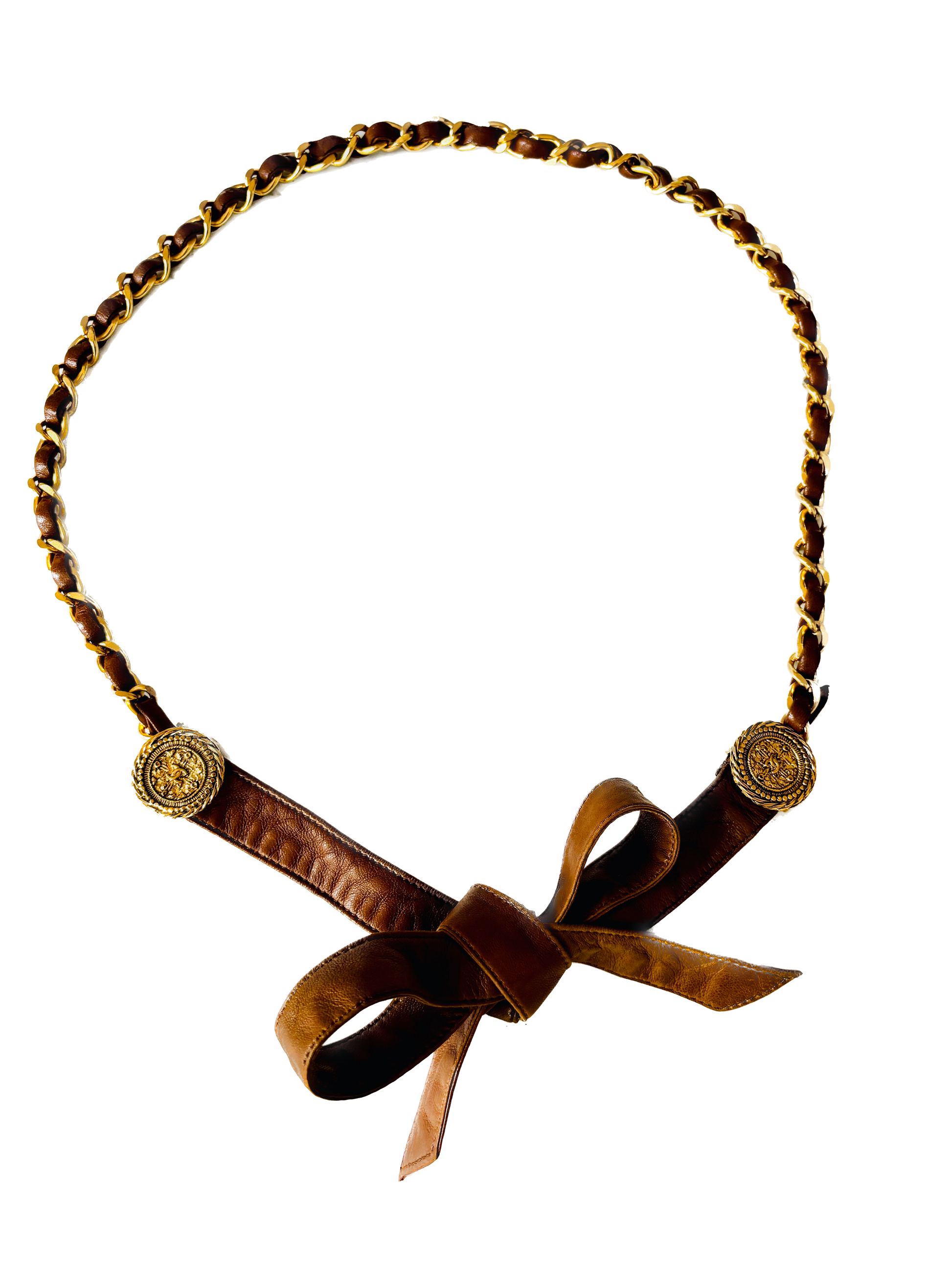 * Chaîne en métal doré enlacée par une fine lanière de cuir