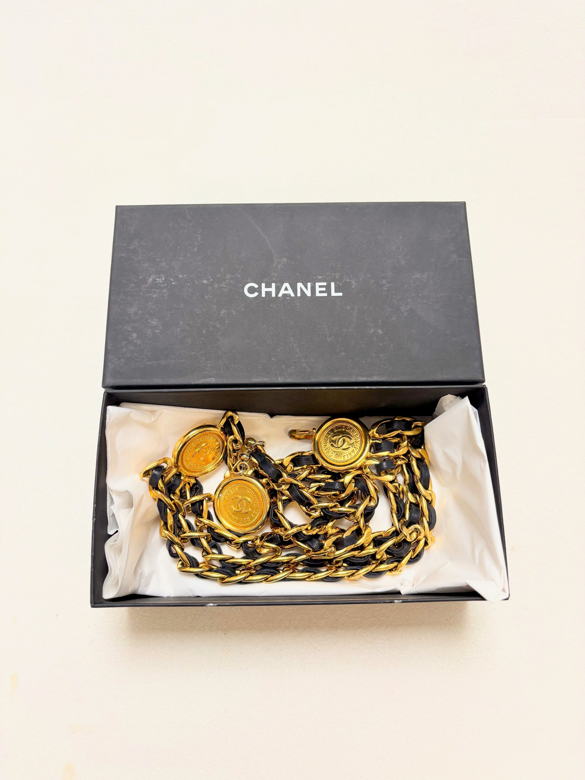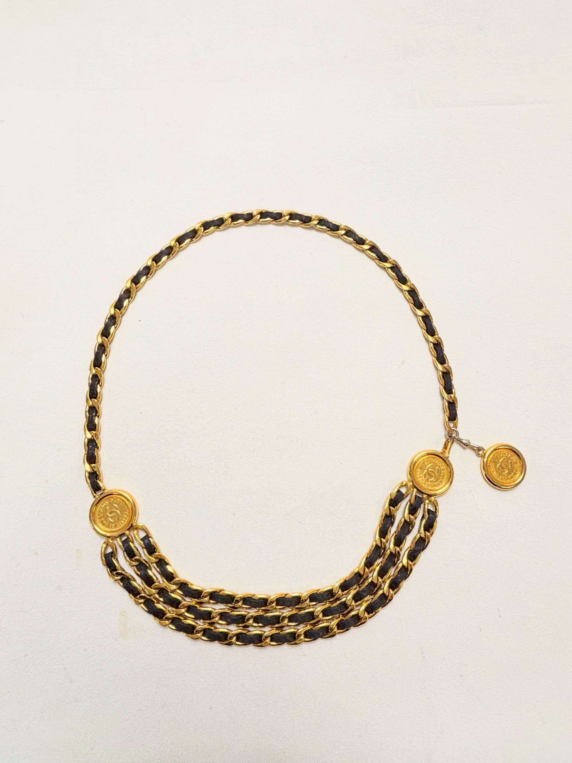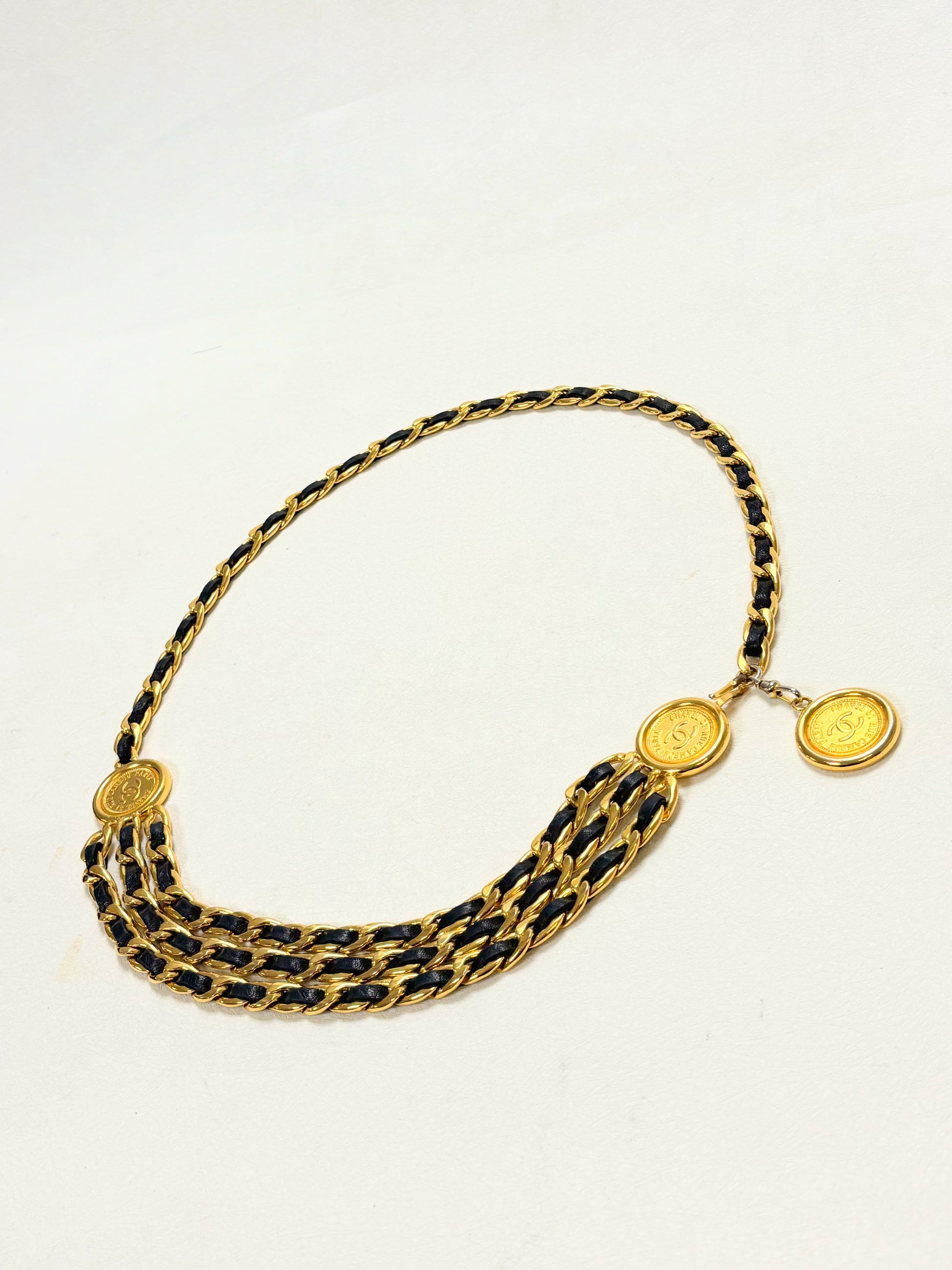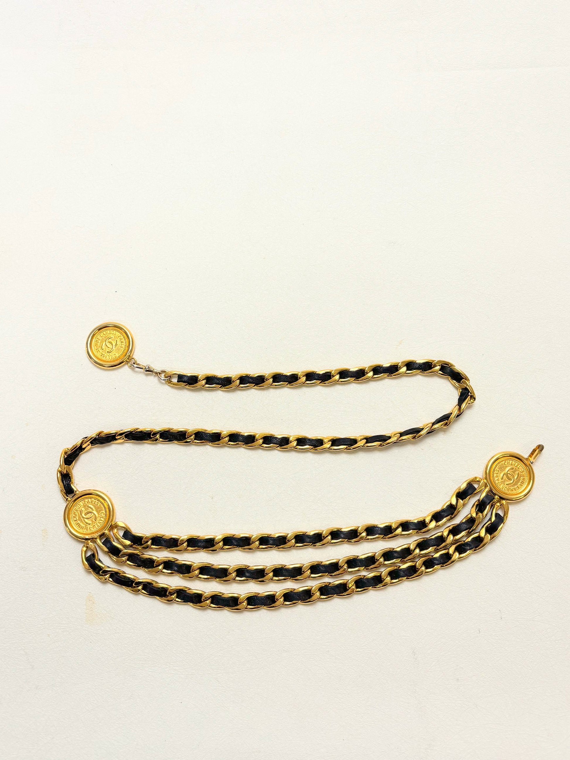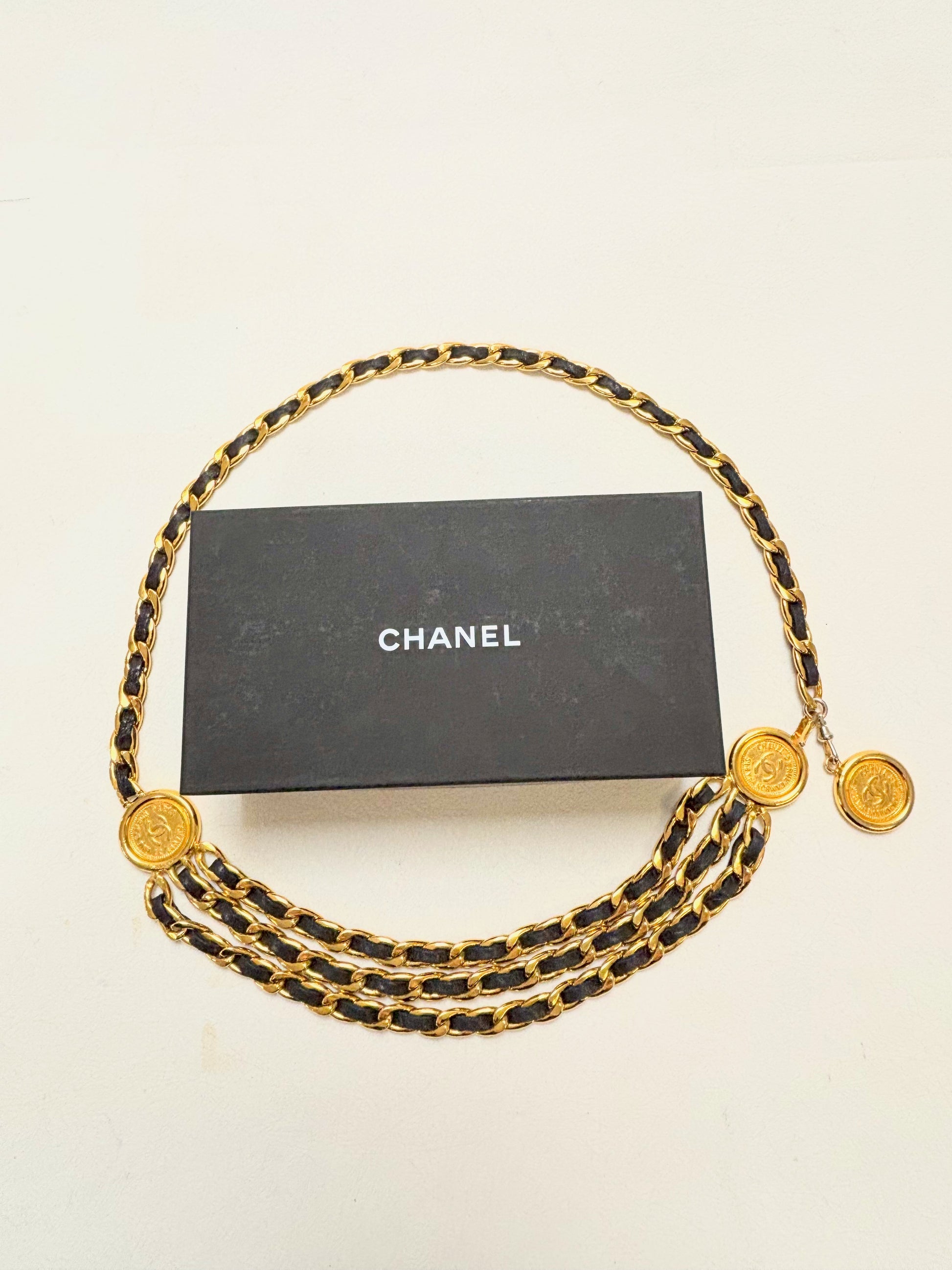 * Ceinture CHANEL triple rangs en métal doré et cuir noir