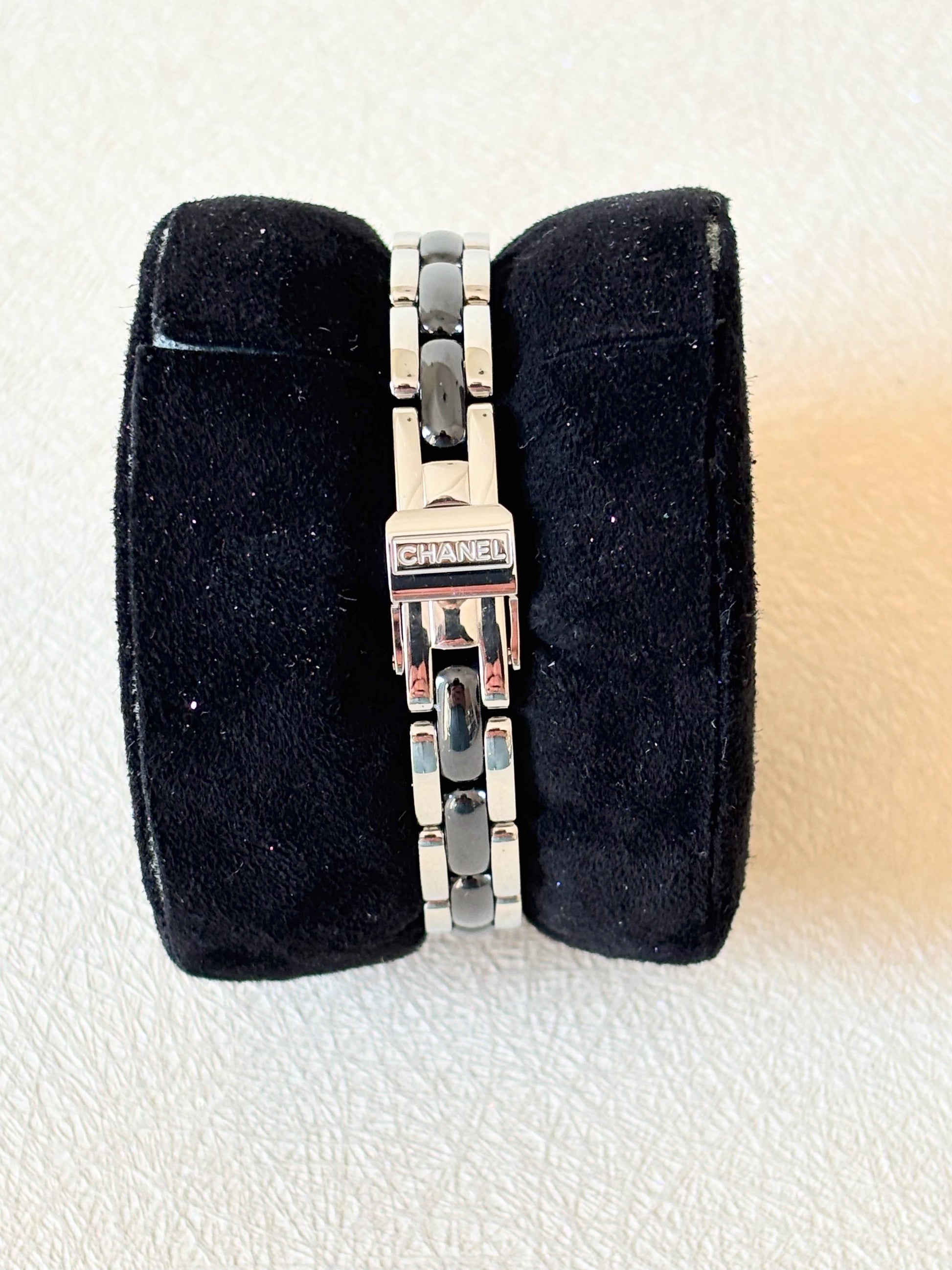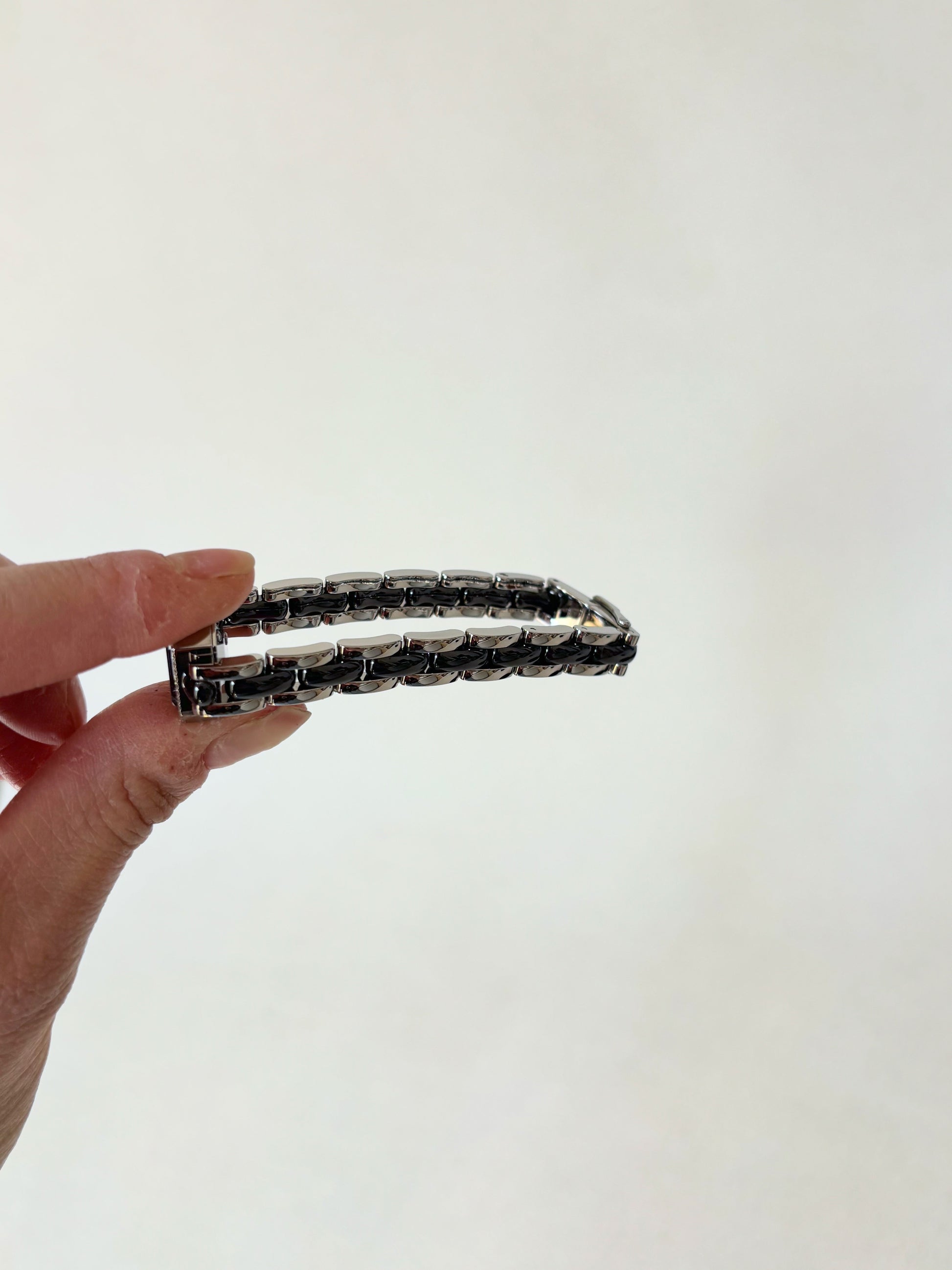 * Bracelet en acier alterné de maillons de céramique noire, fermoir cliquet