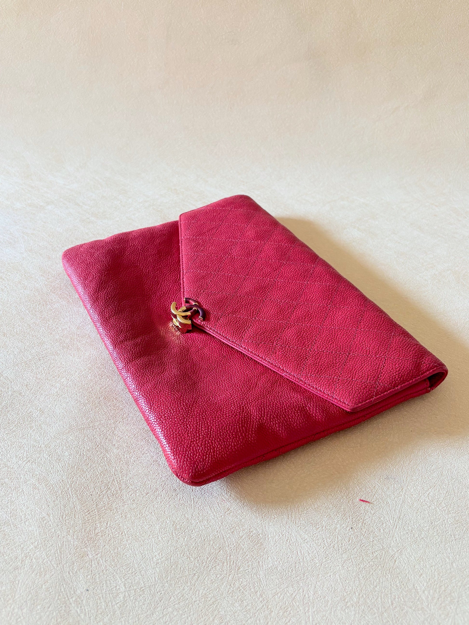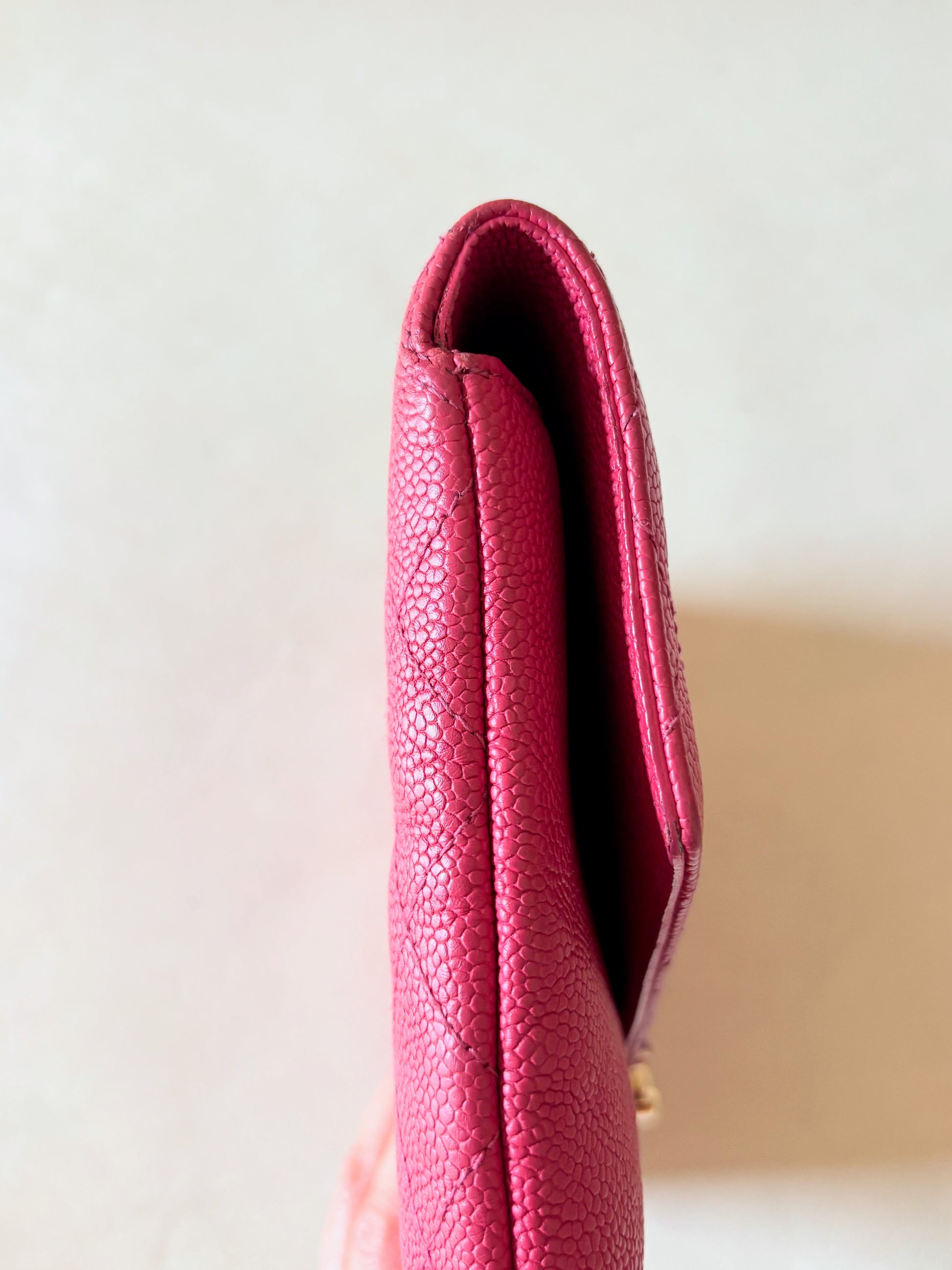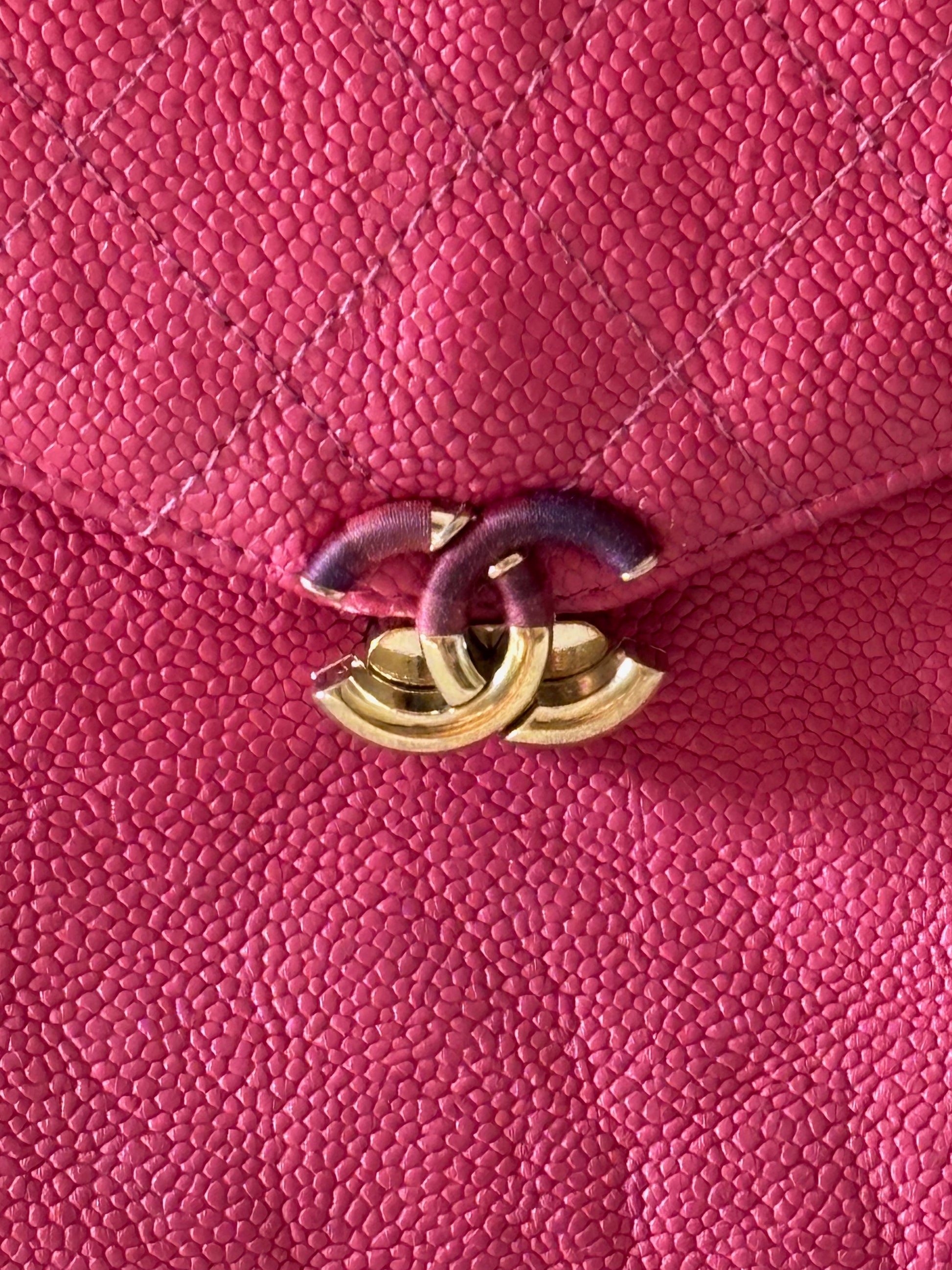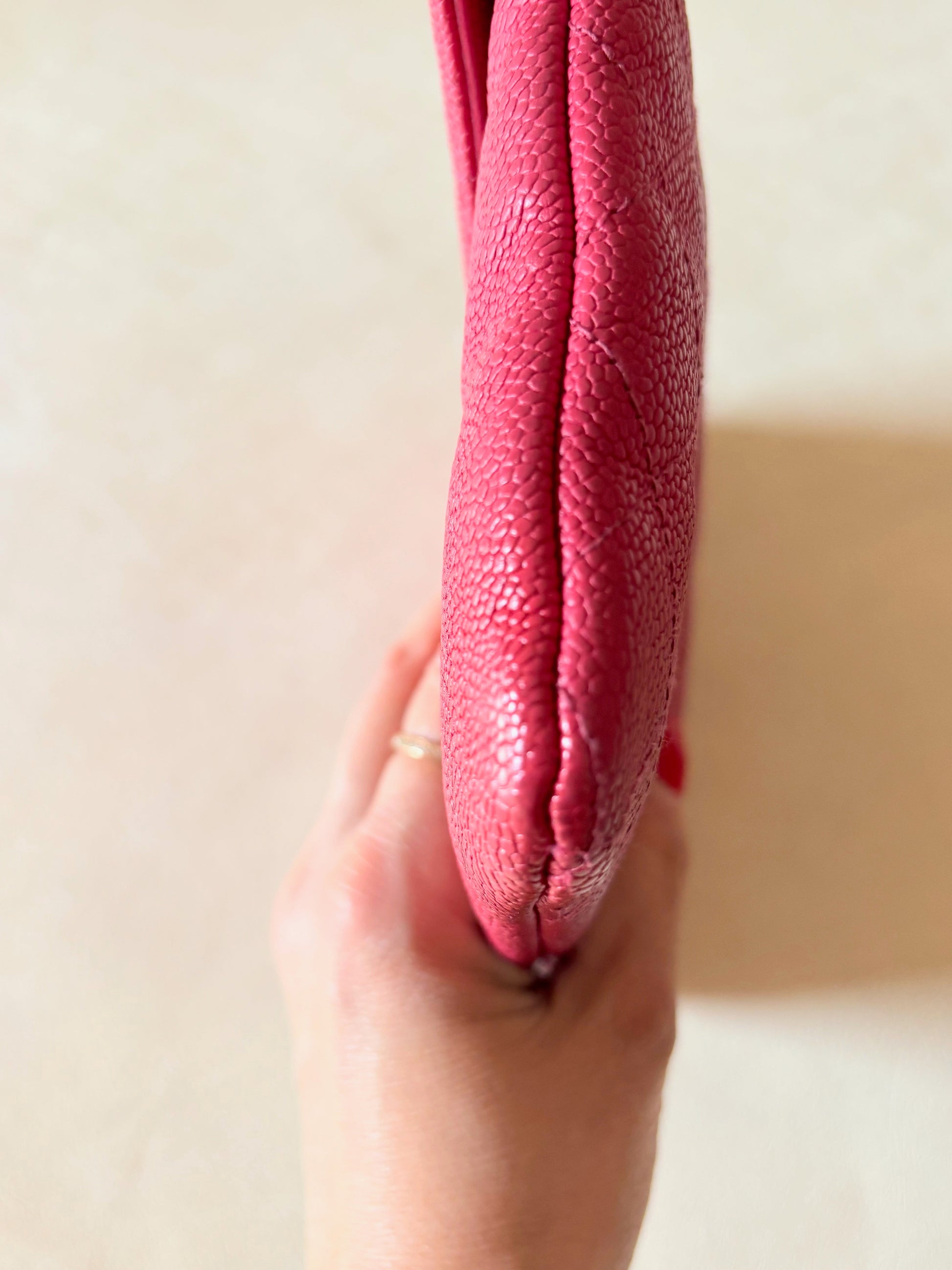 * En cuir caviar matelassé sur sa partie haute, couleur rose framboise