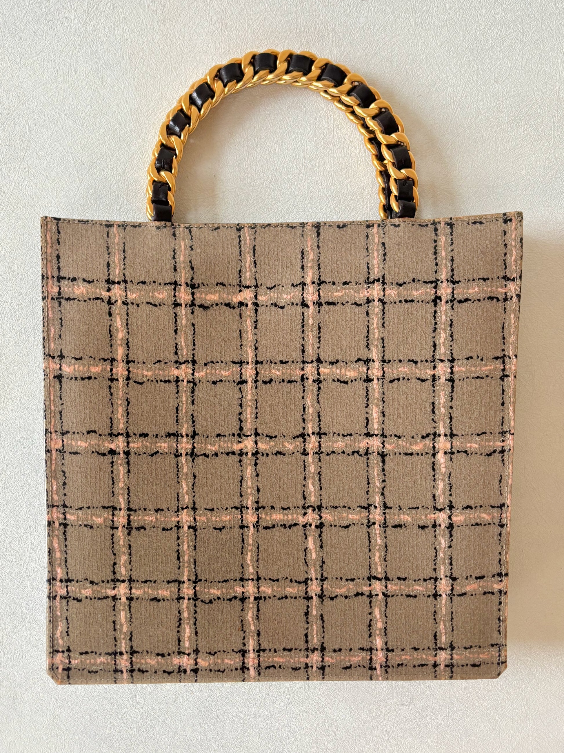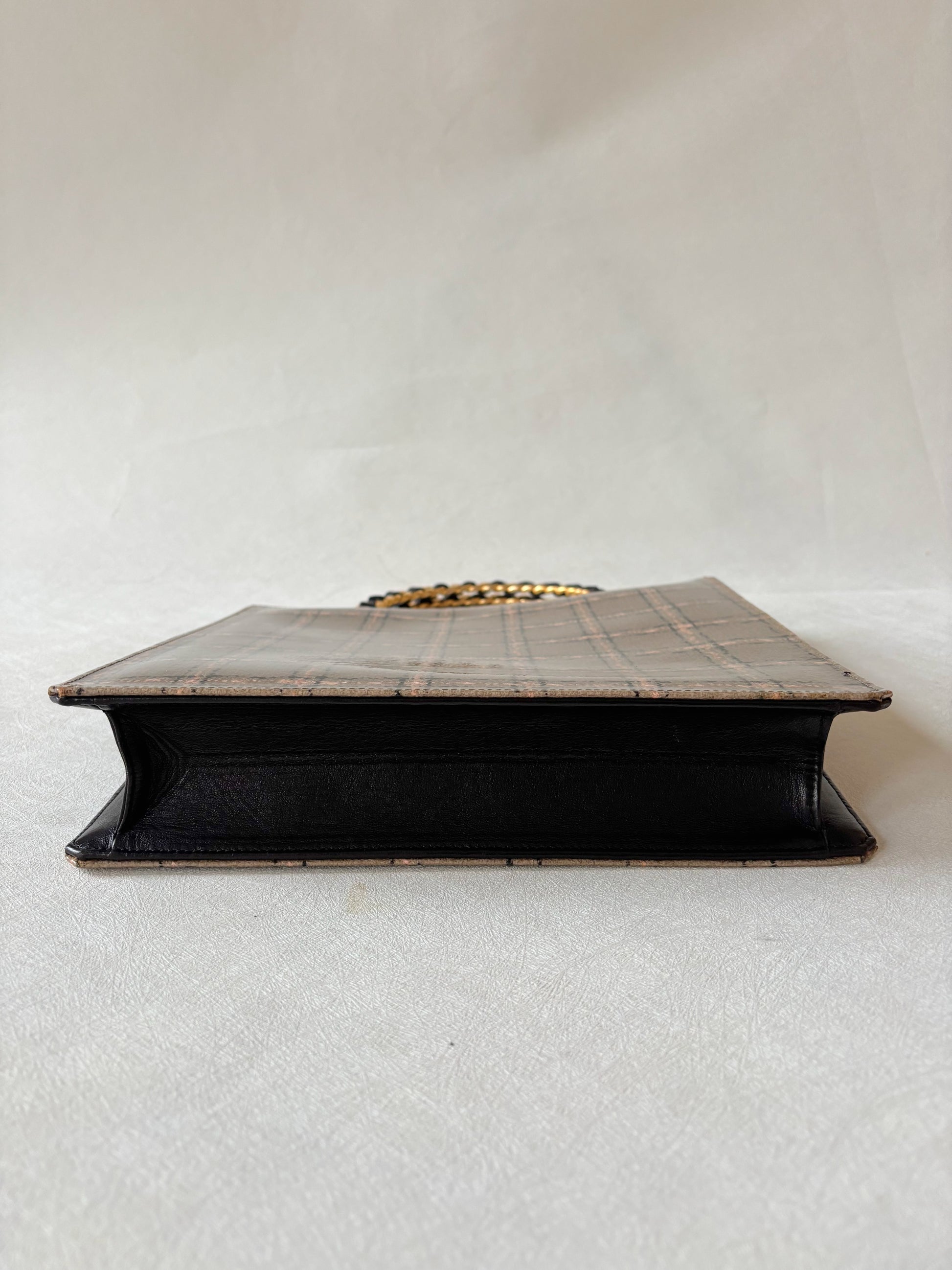 * En cuir verni façon tweed dans les tons kaki rose et noir