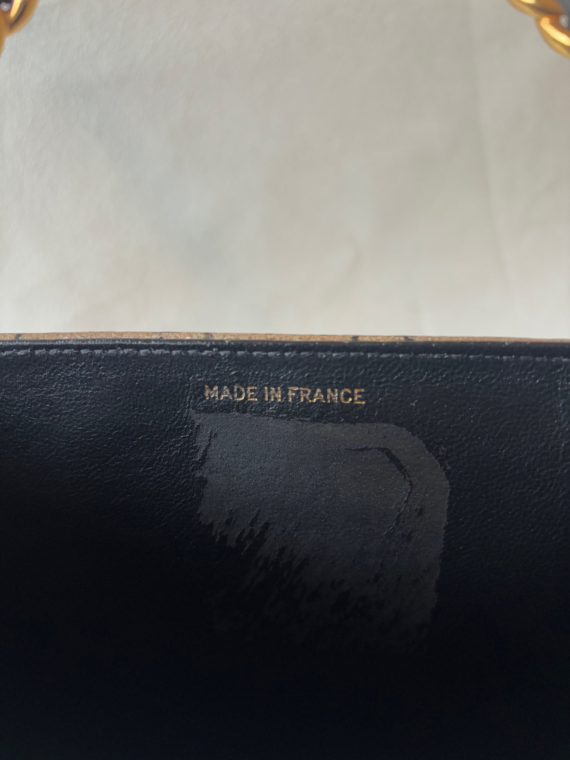 * Deux poignées supérieures en maillon de chaîne et cuir,noir côtés en cuir et intérieur en cuir entièrement doublé avec une poche à fermeture éclair.