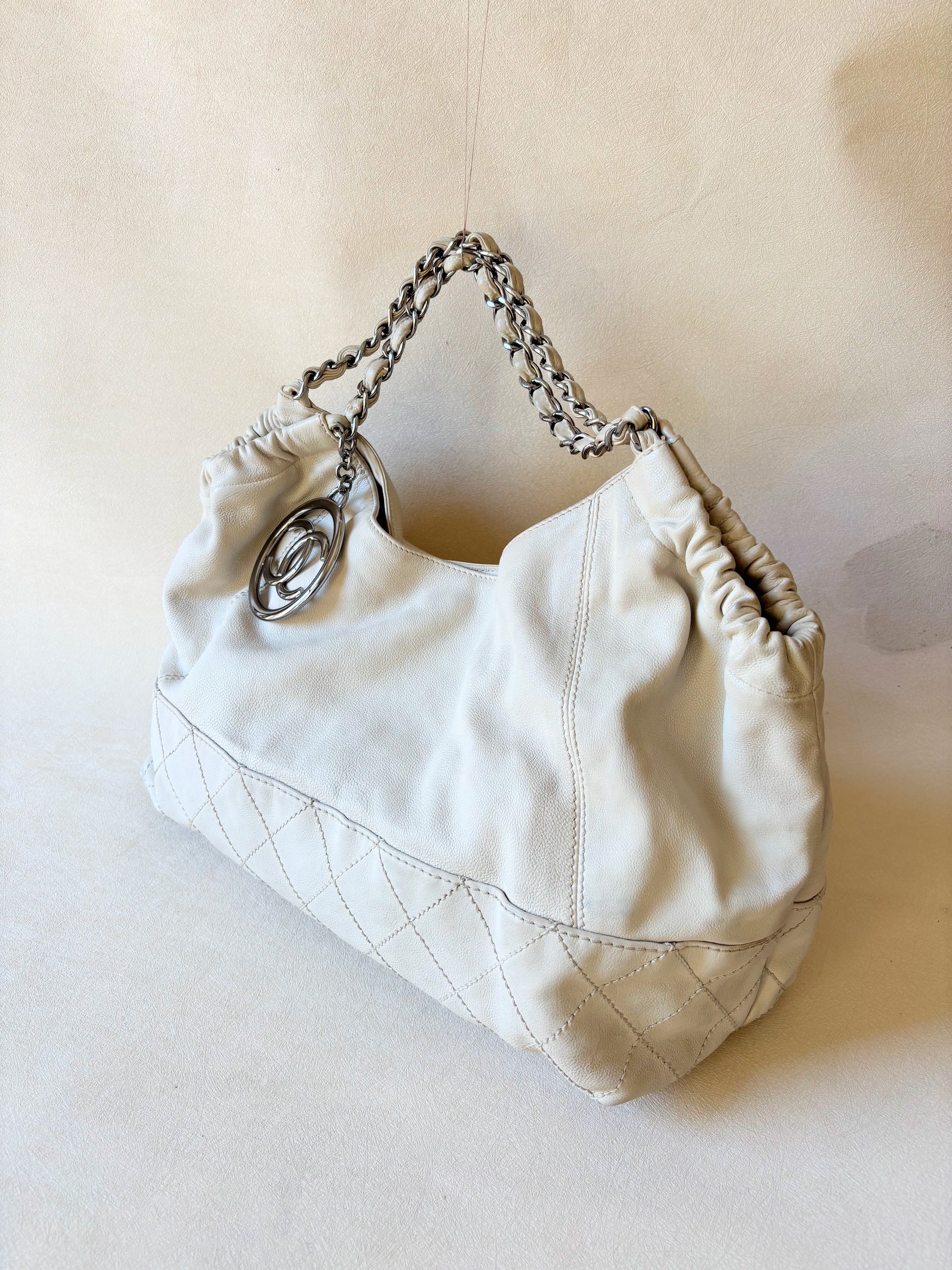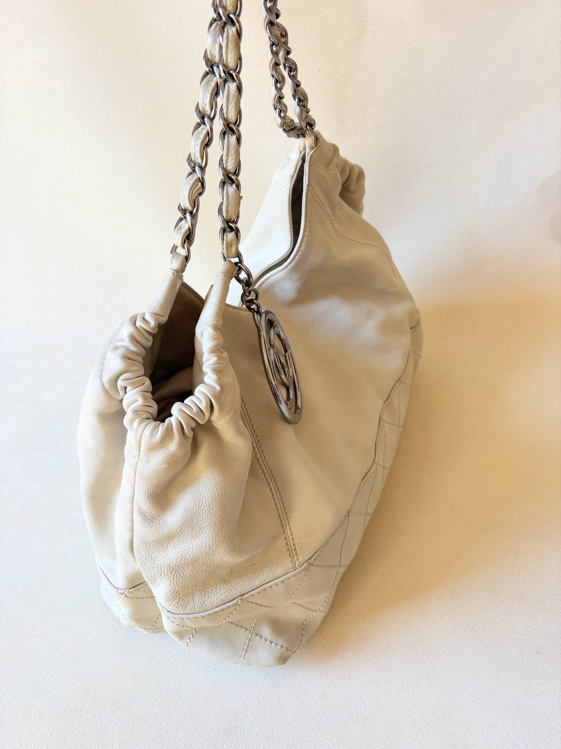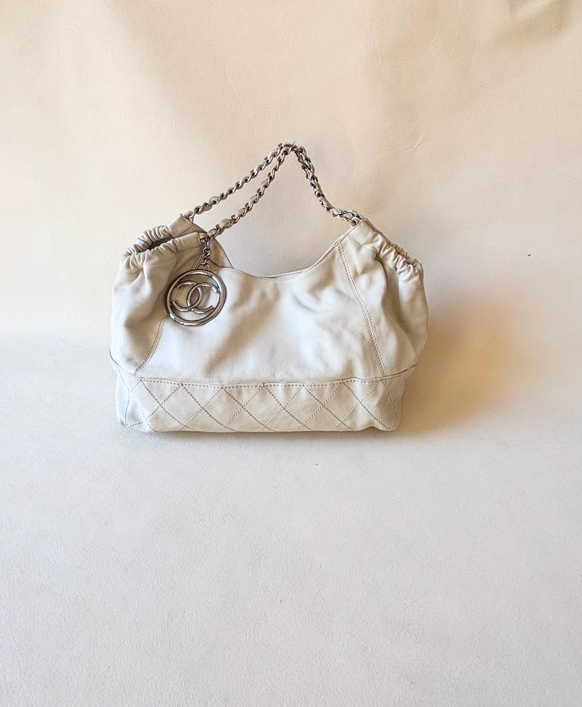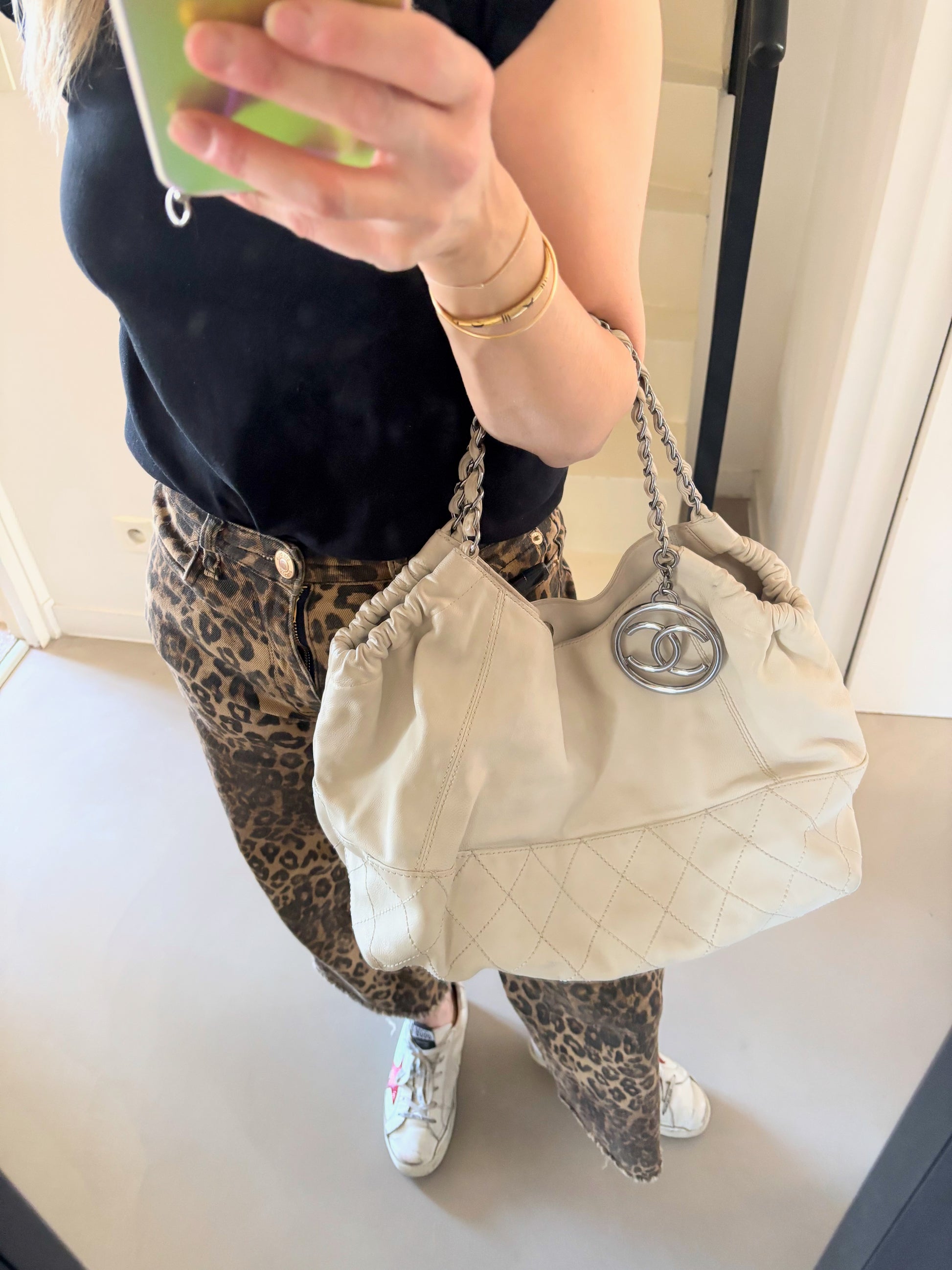 * Anses en chaîne argentée, entrelacée de cuir d'agneau, pour un porté épaule
