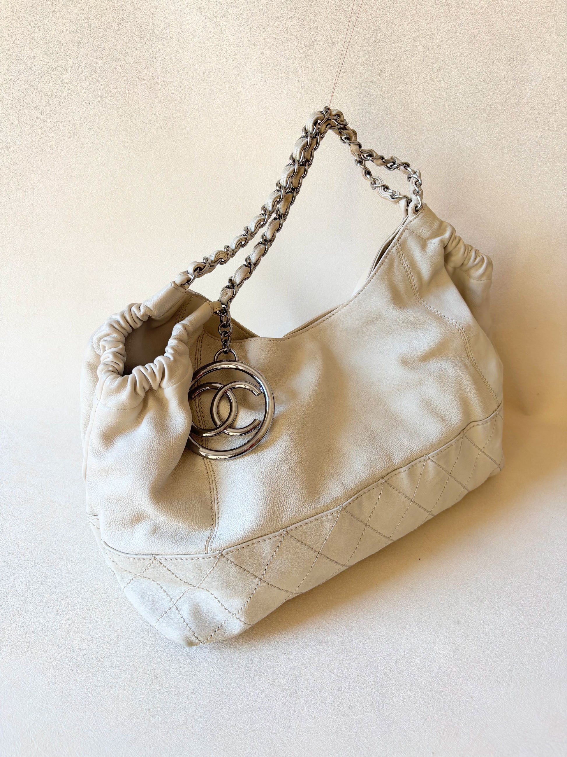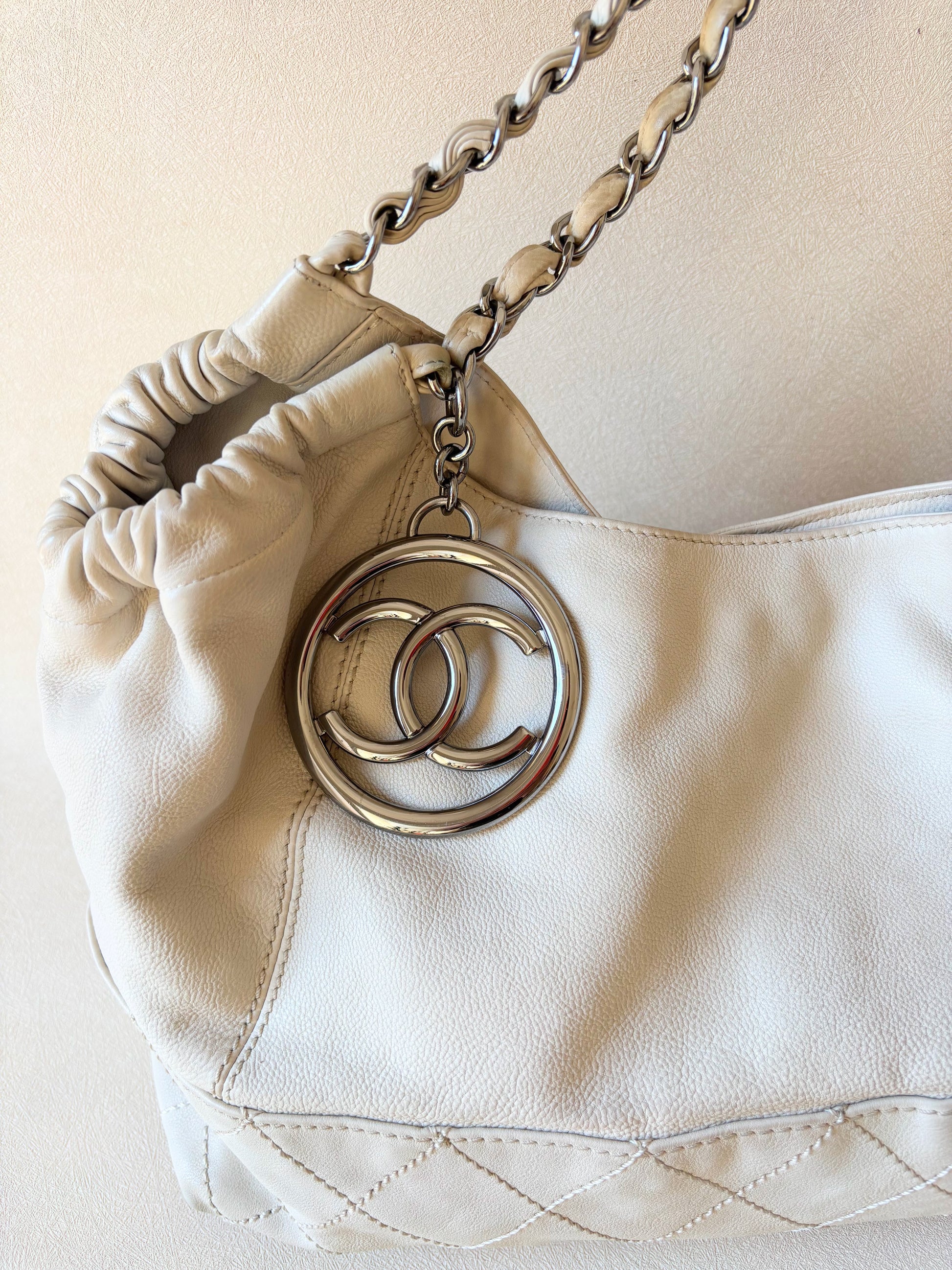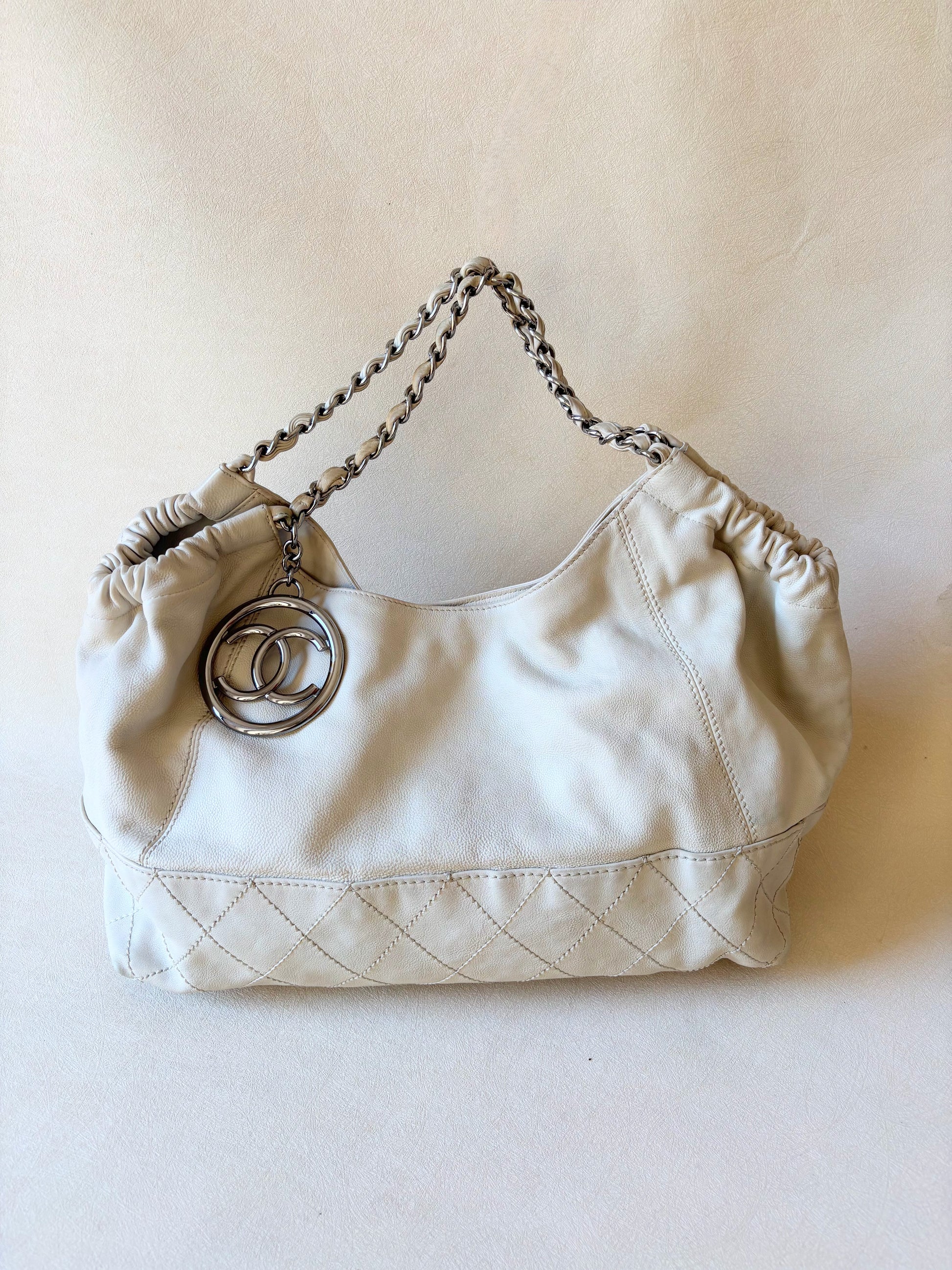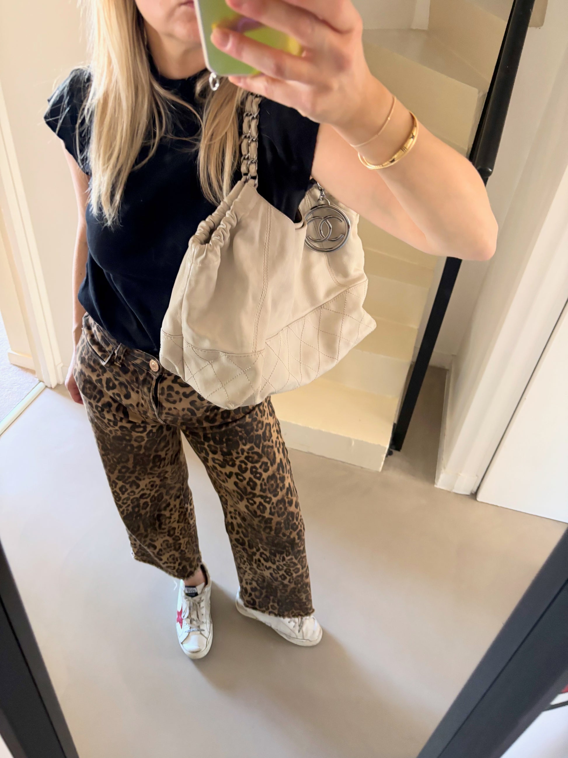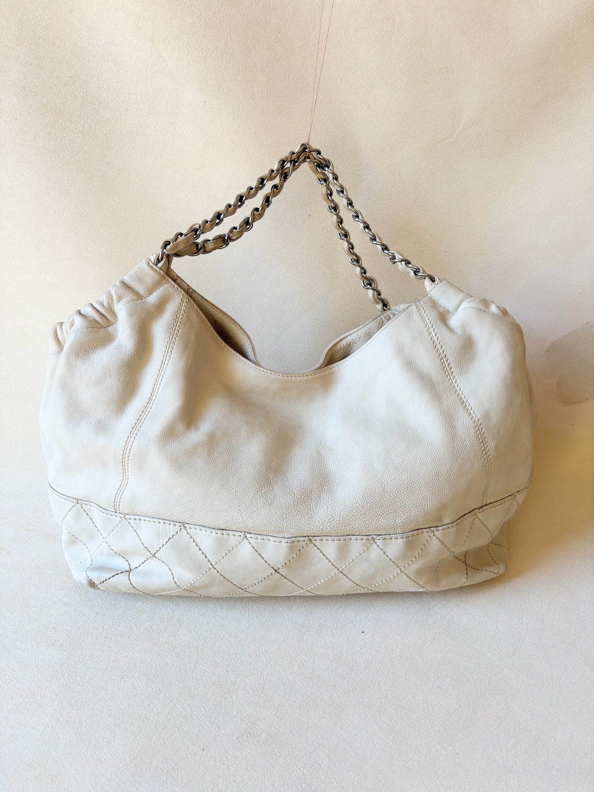 * Anses en chaîne argentée, entrelacée de cuir d'agneau, pour un porté épaule