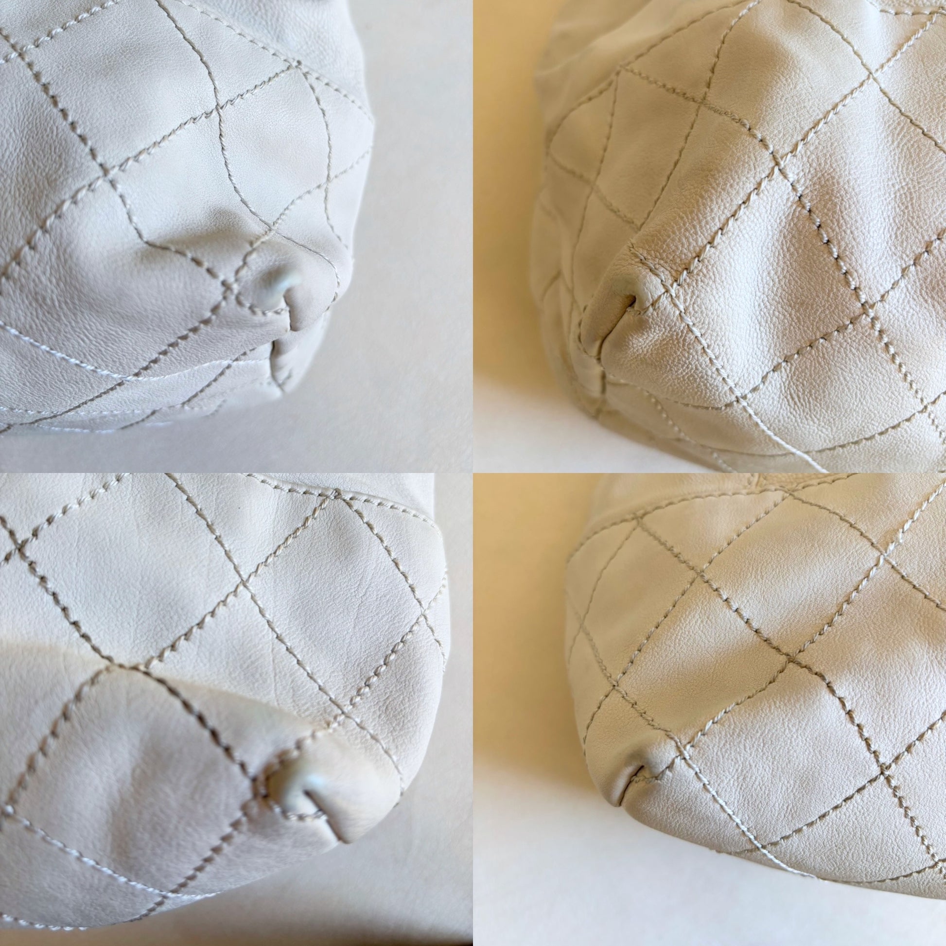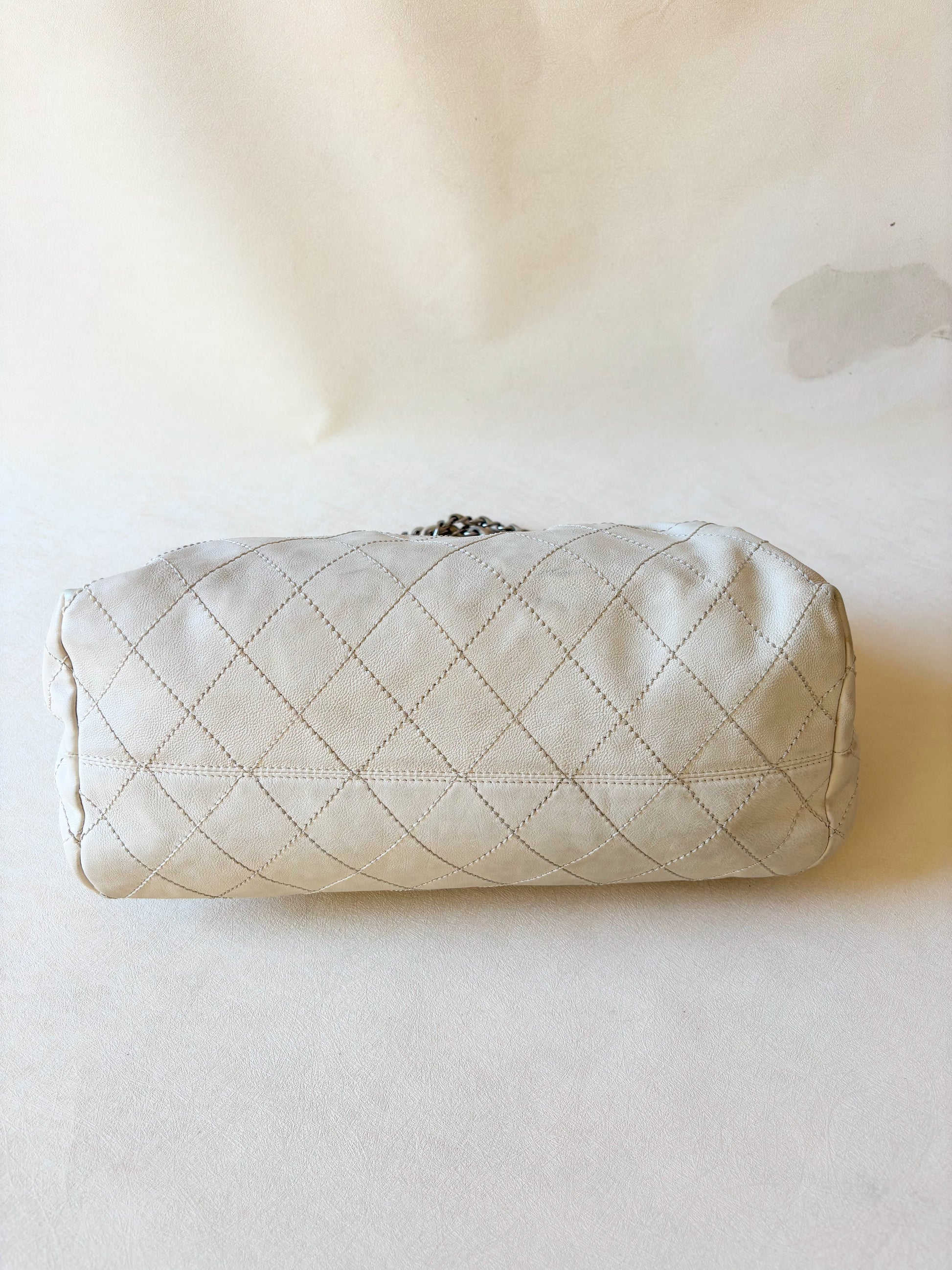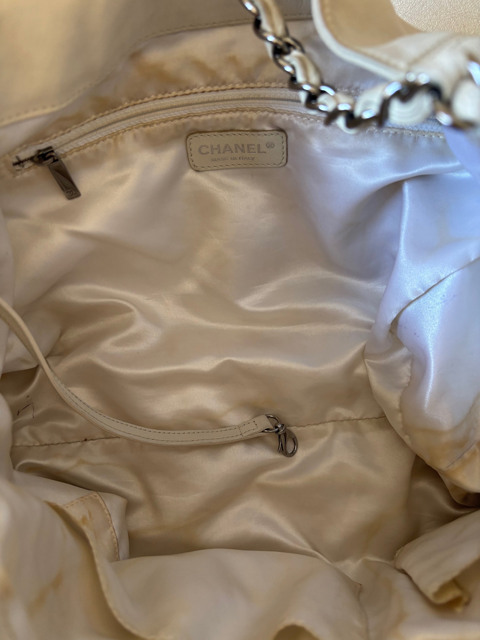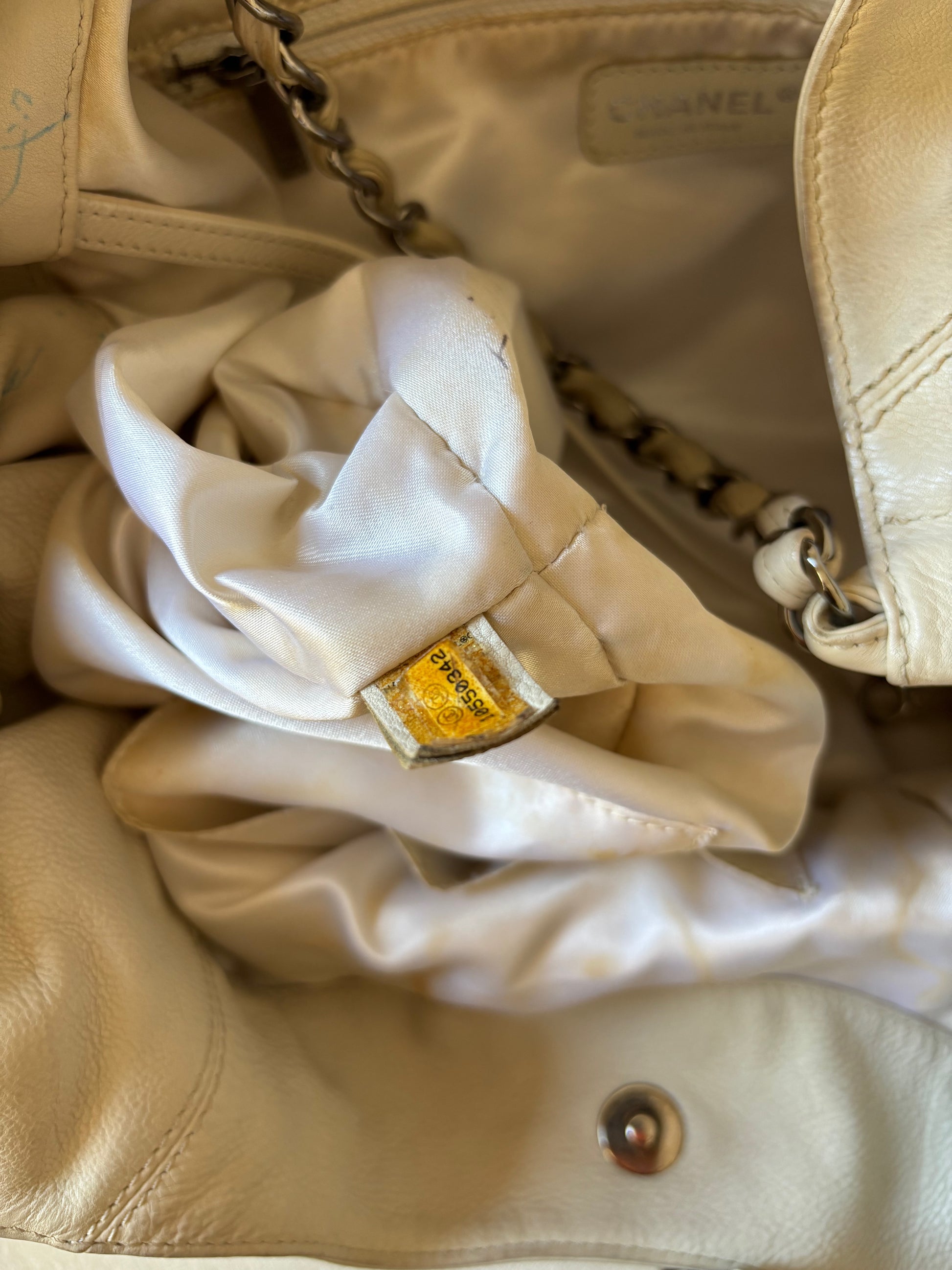 * Anses en chaîne argentée, entrelacée de cuir d'agneau, pour un porté épaule