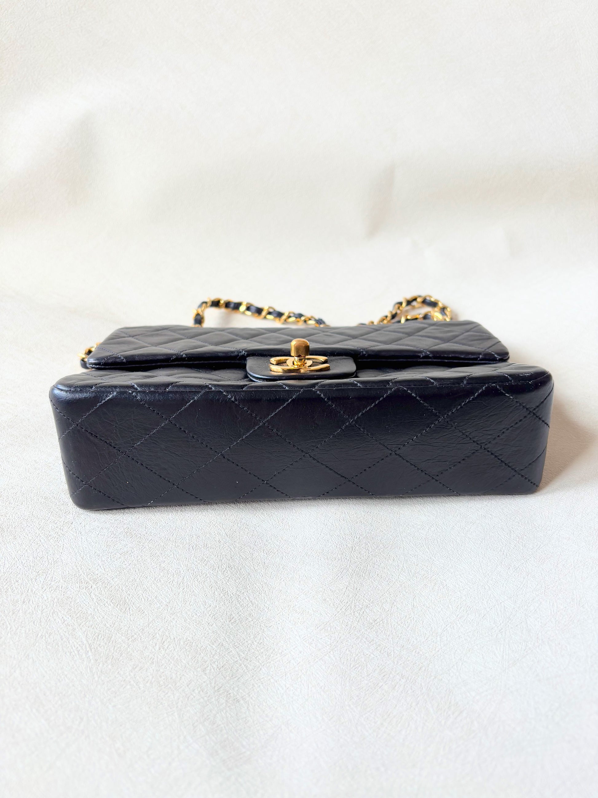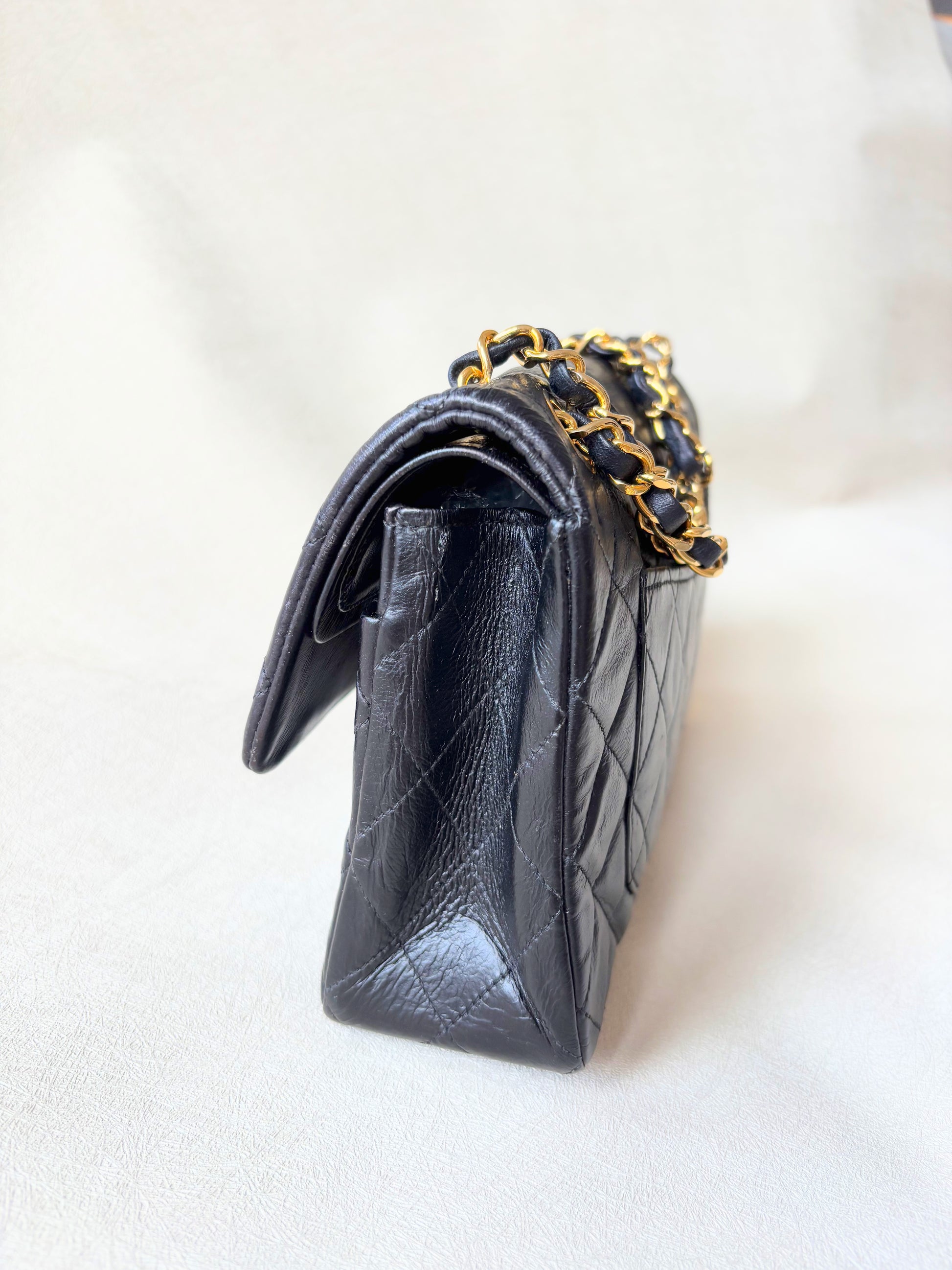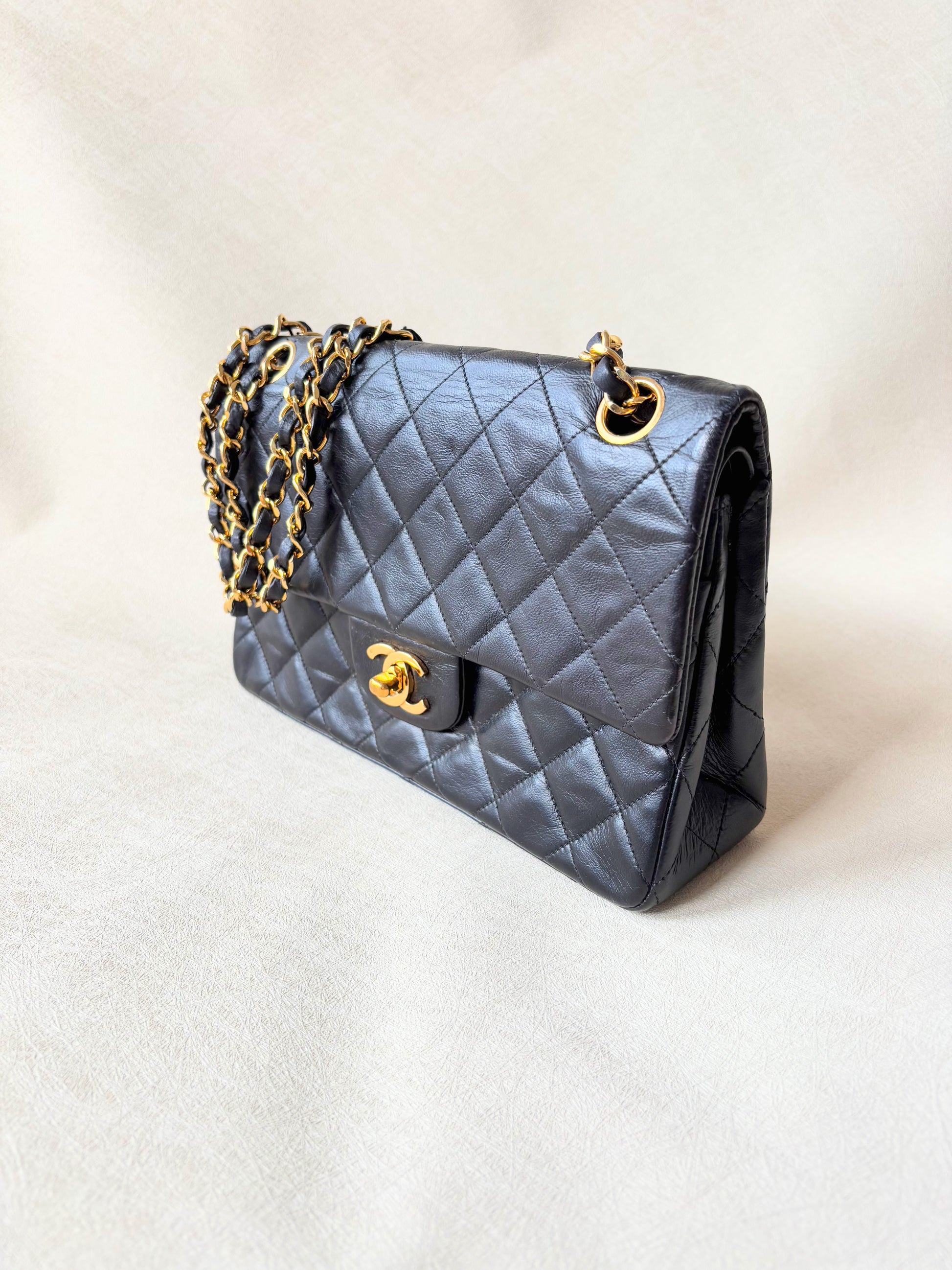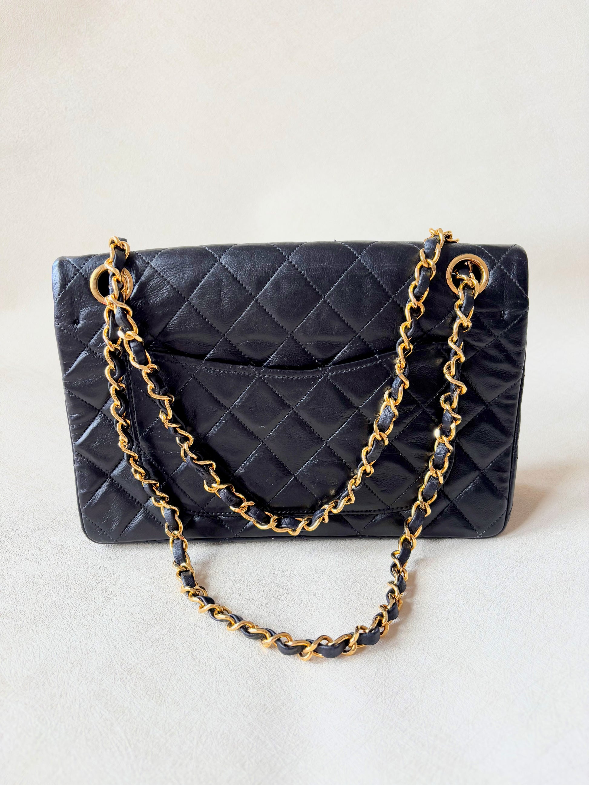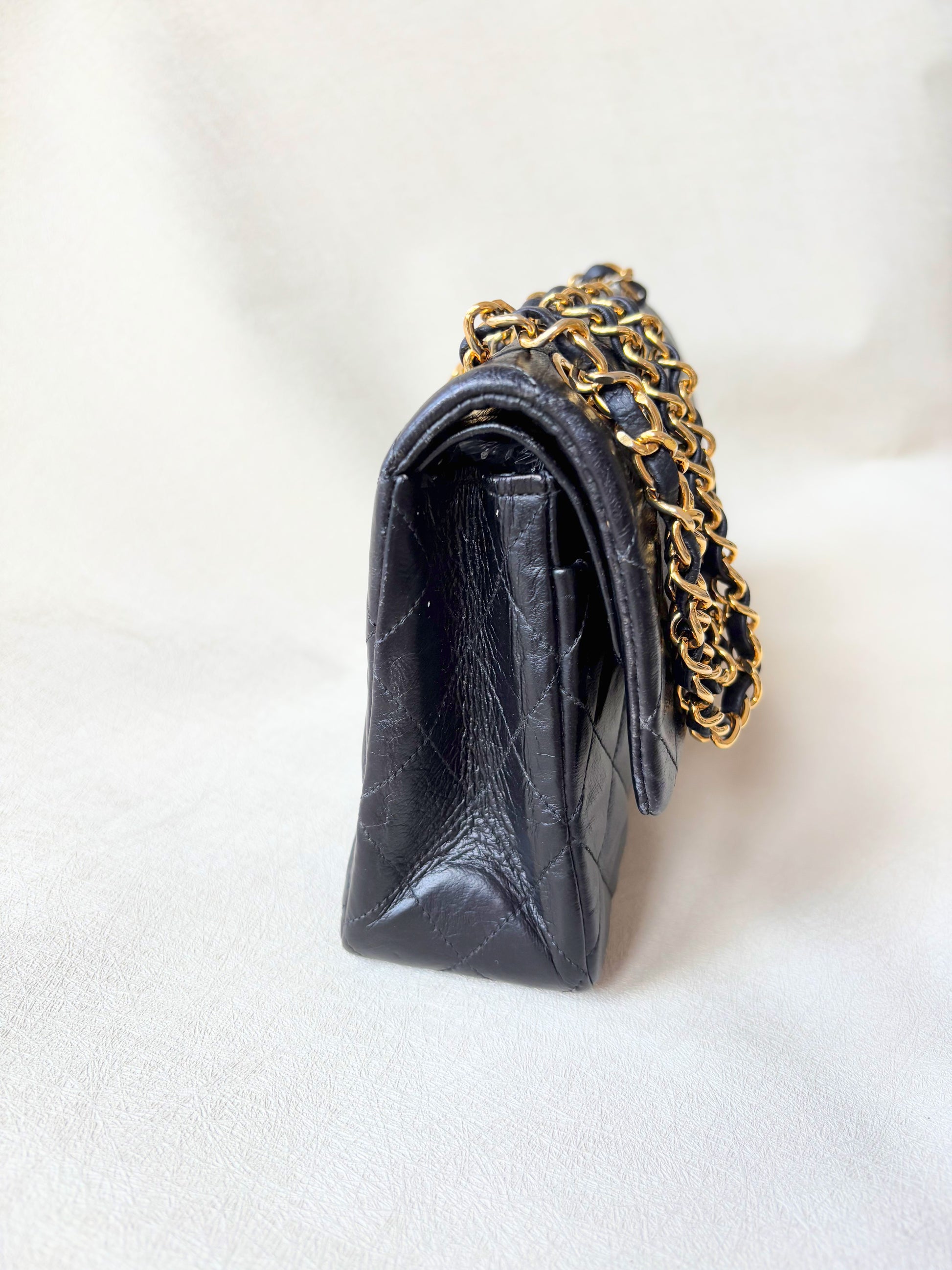 * Chaîne en métal doré entrelacée de cuir noir pour un porté main ou épaule