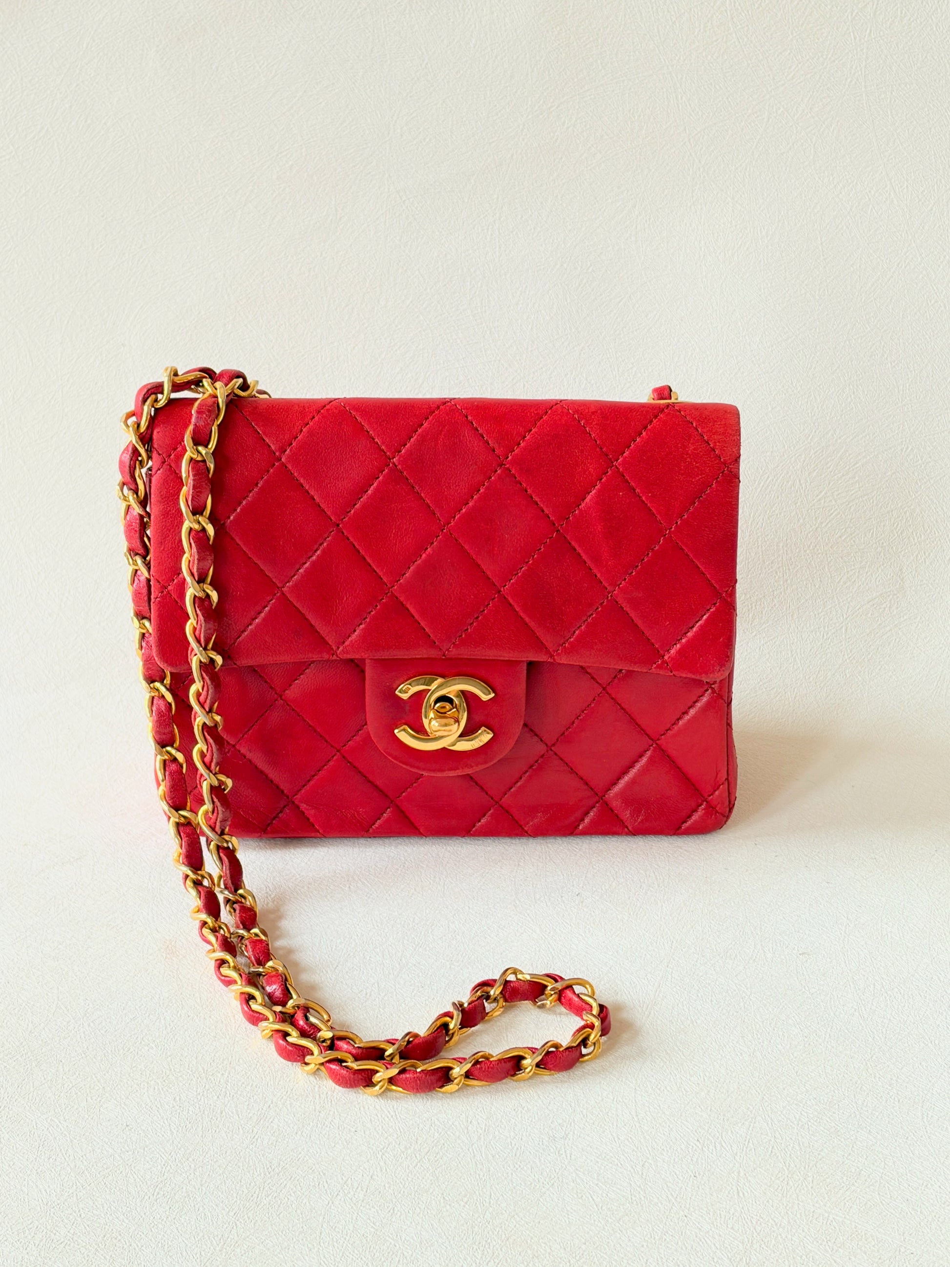 * Chaîne en métal doré entrelacé de cuir rouge, pour un porté épaule