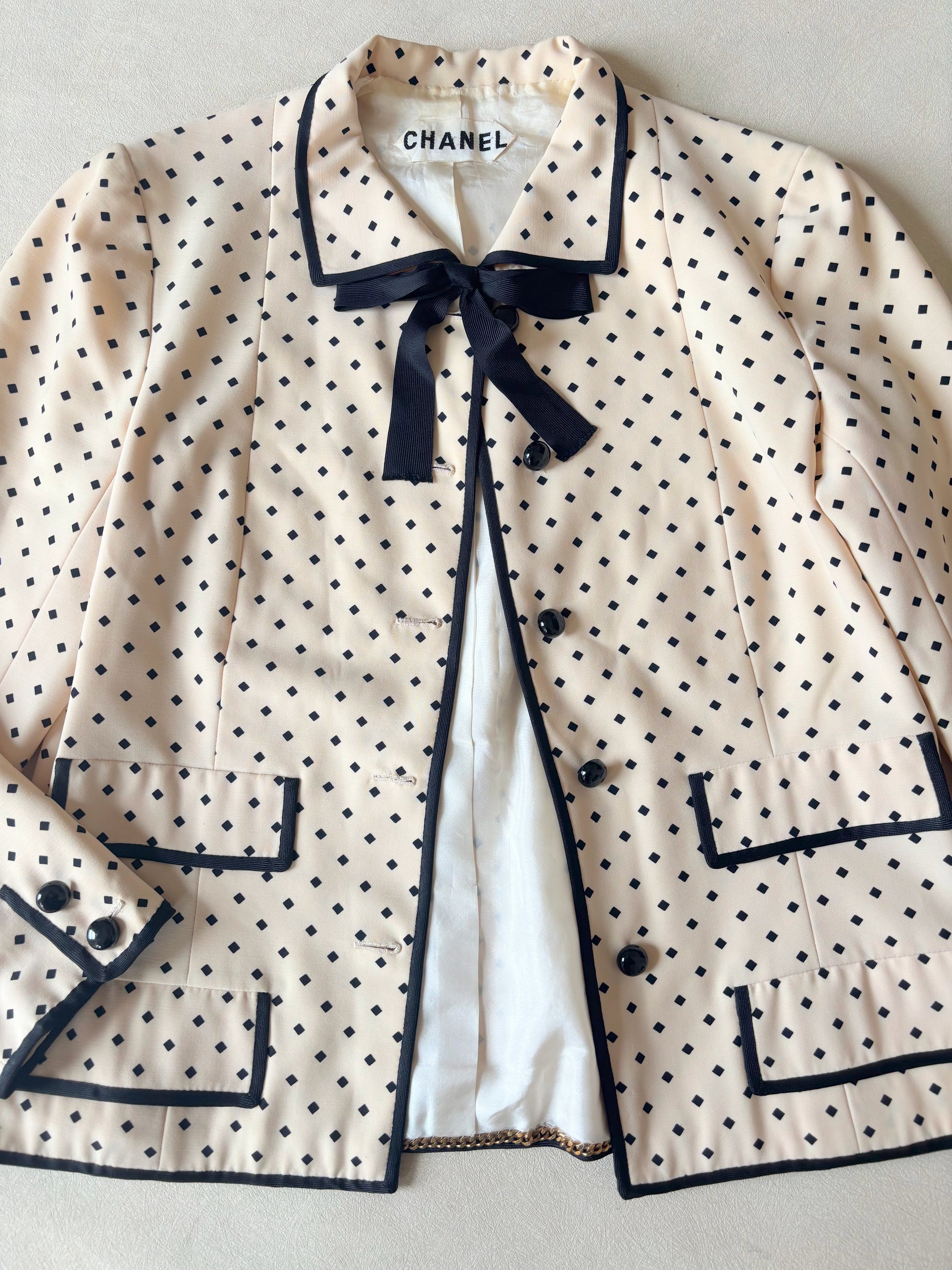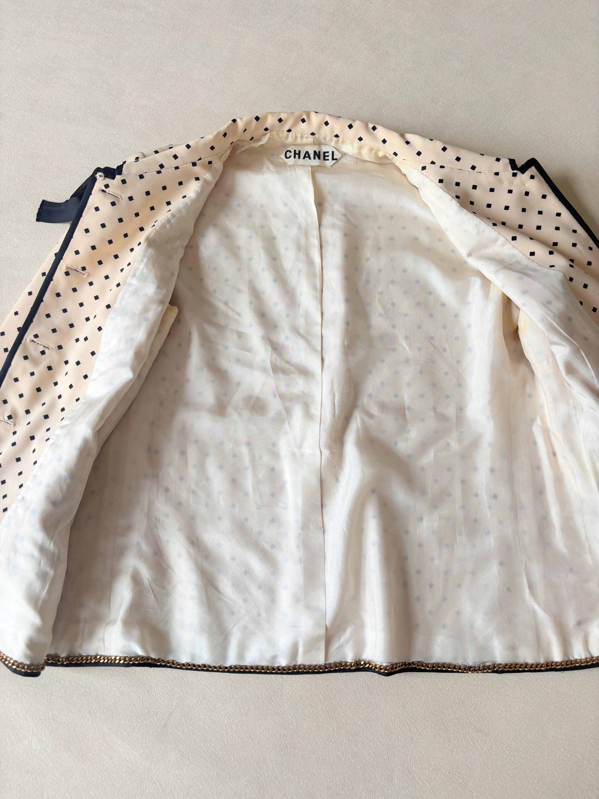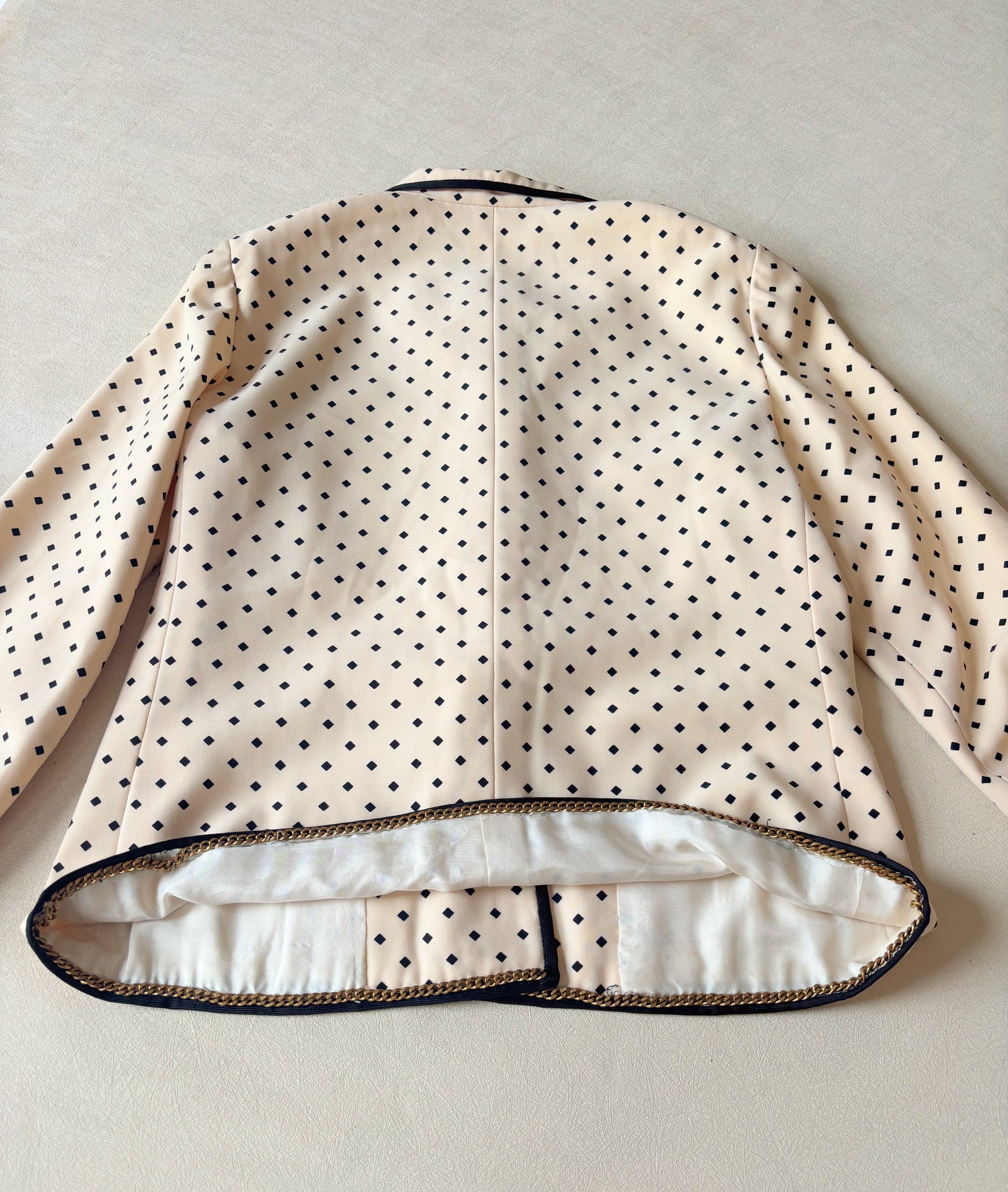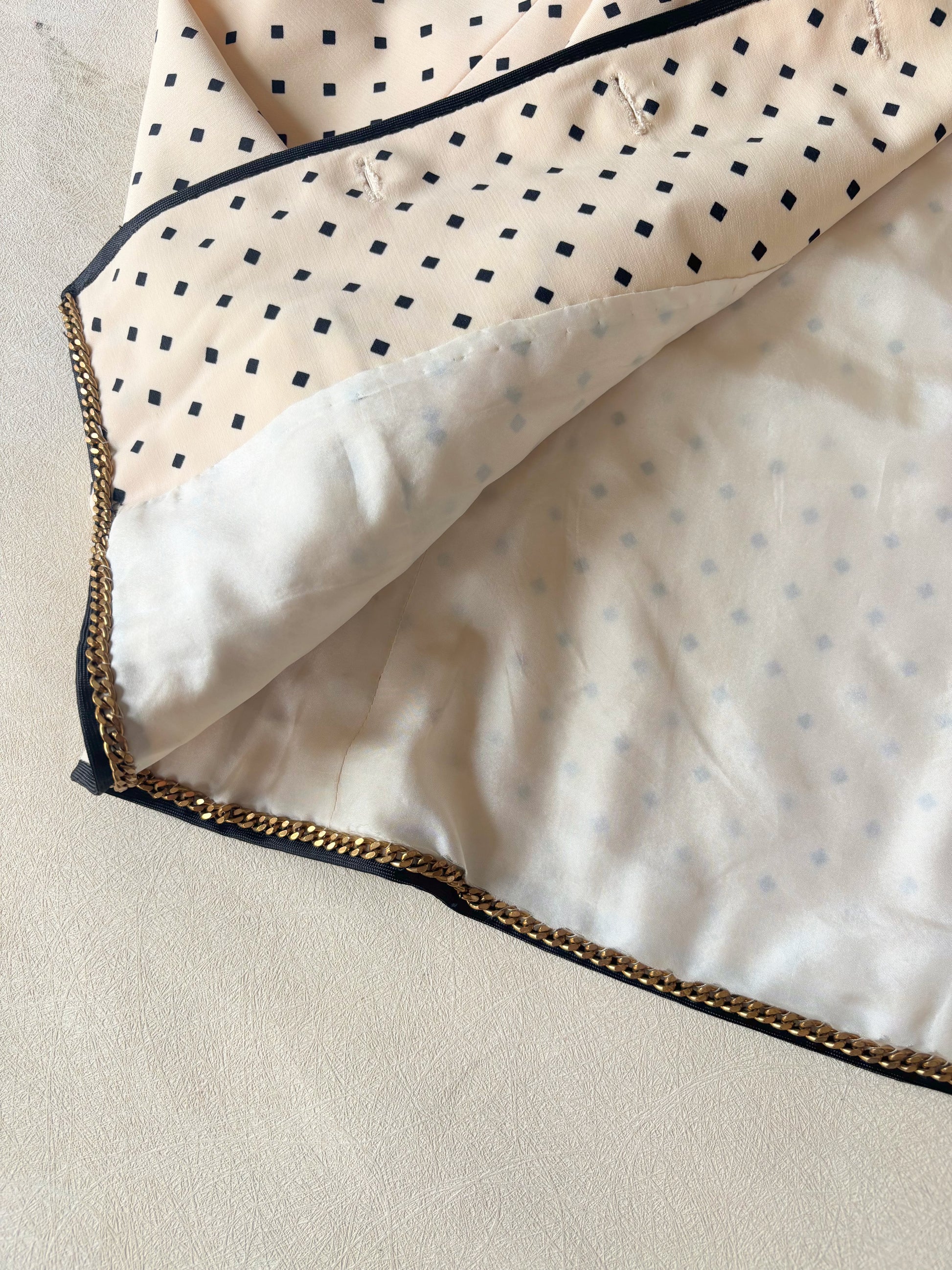 * Doublure en soie et chaîne dorée cousue en bas de la veste