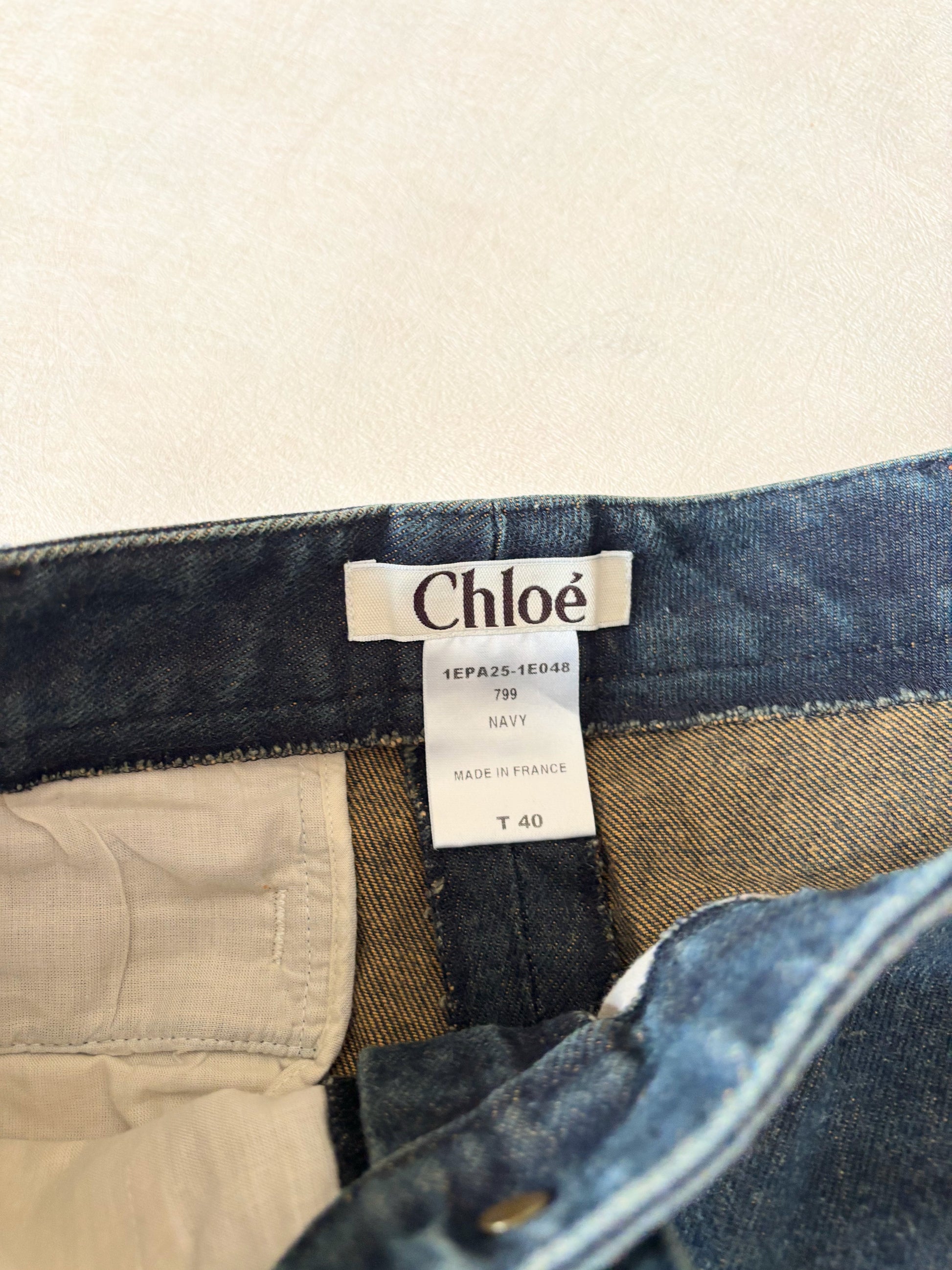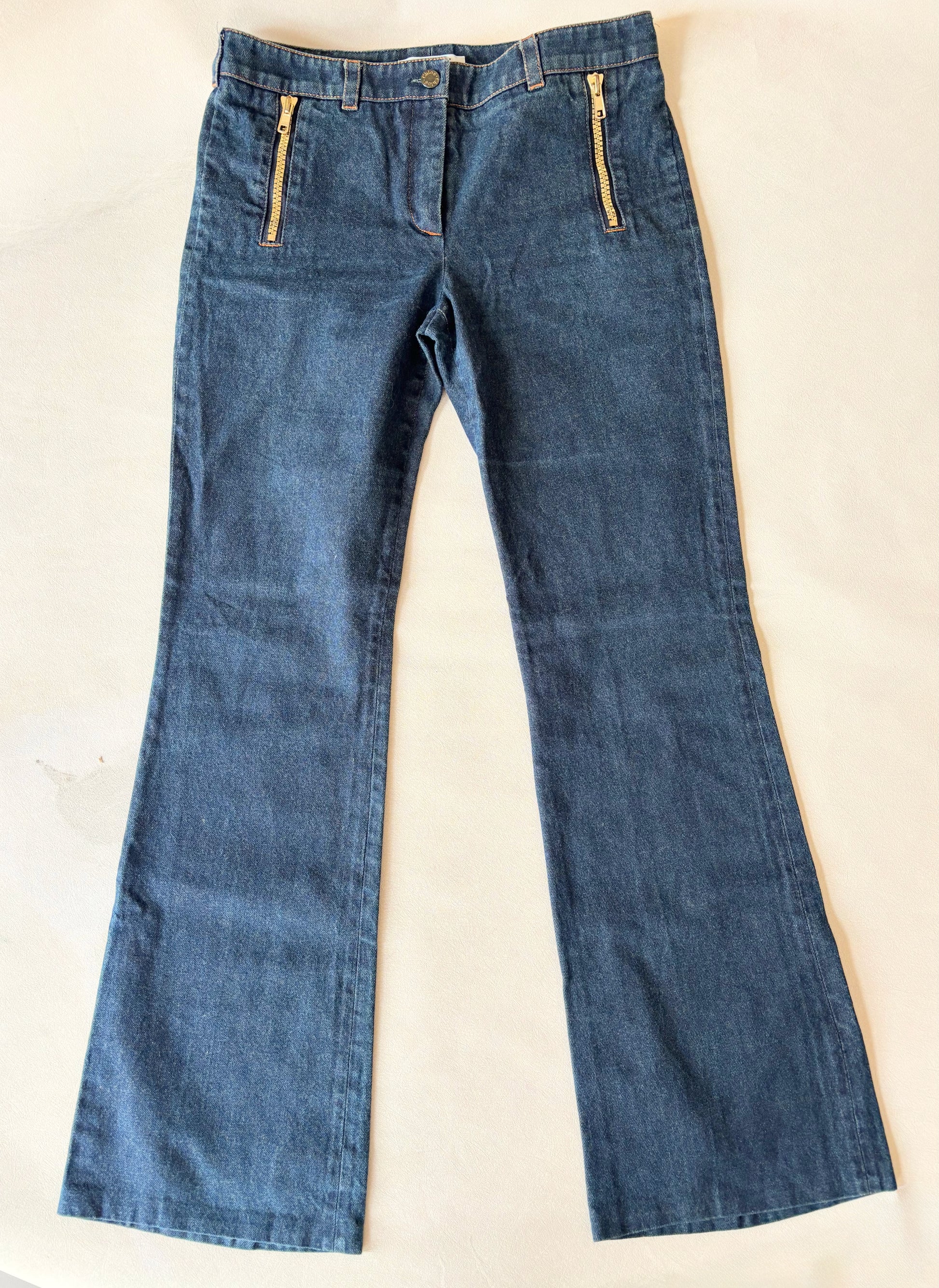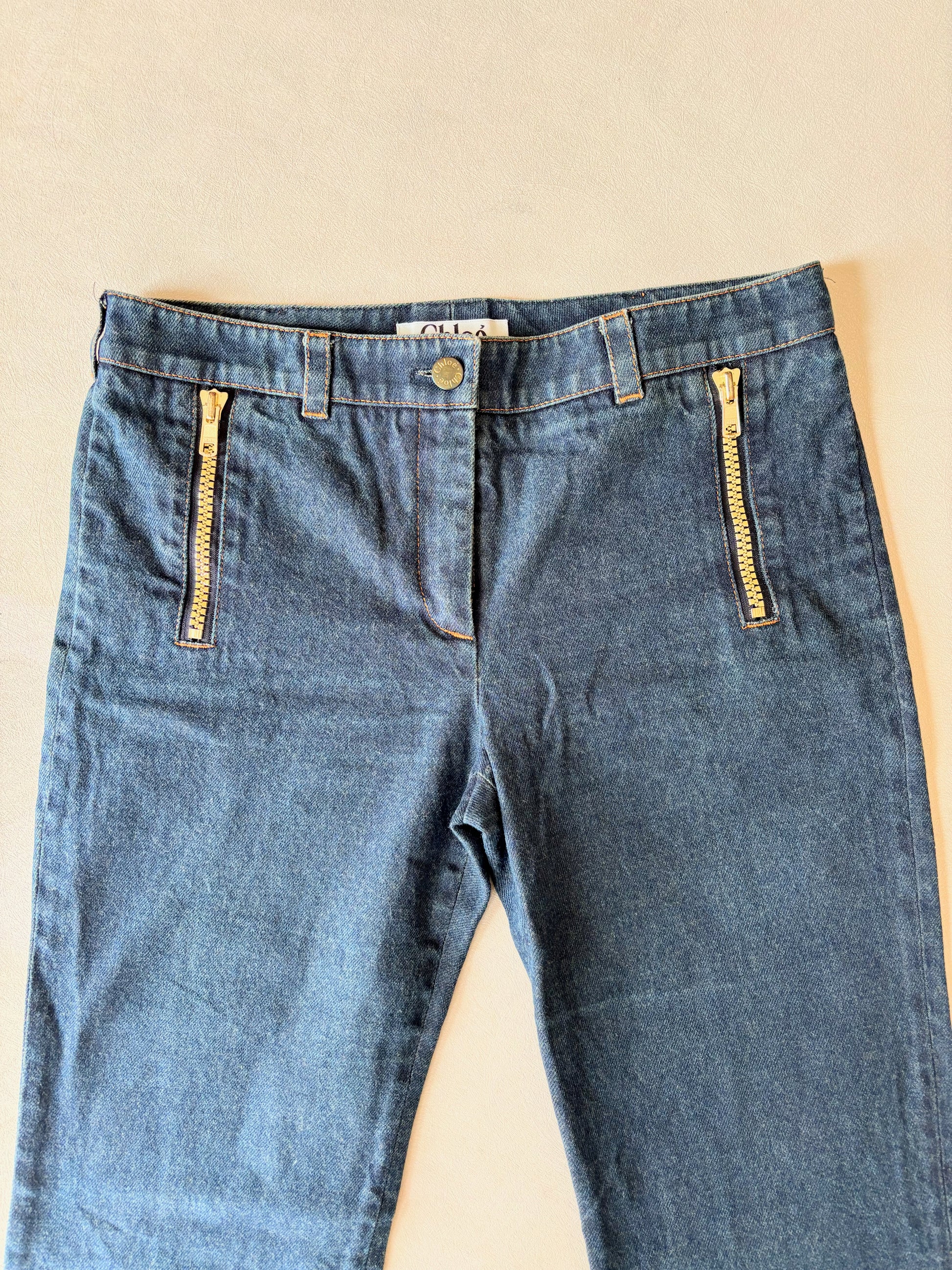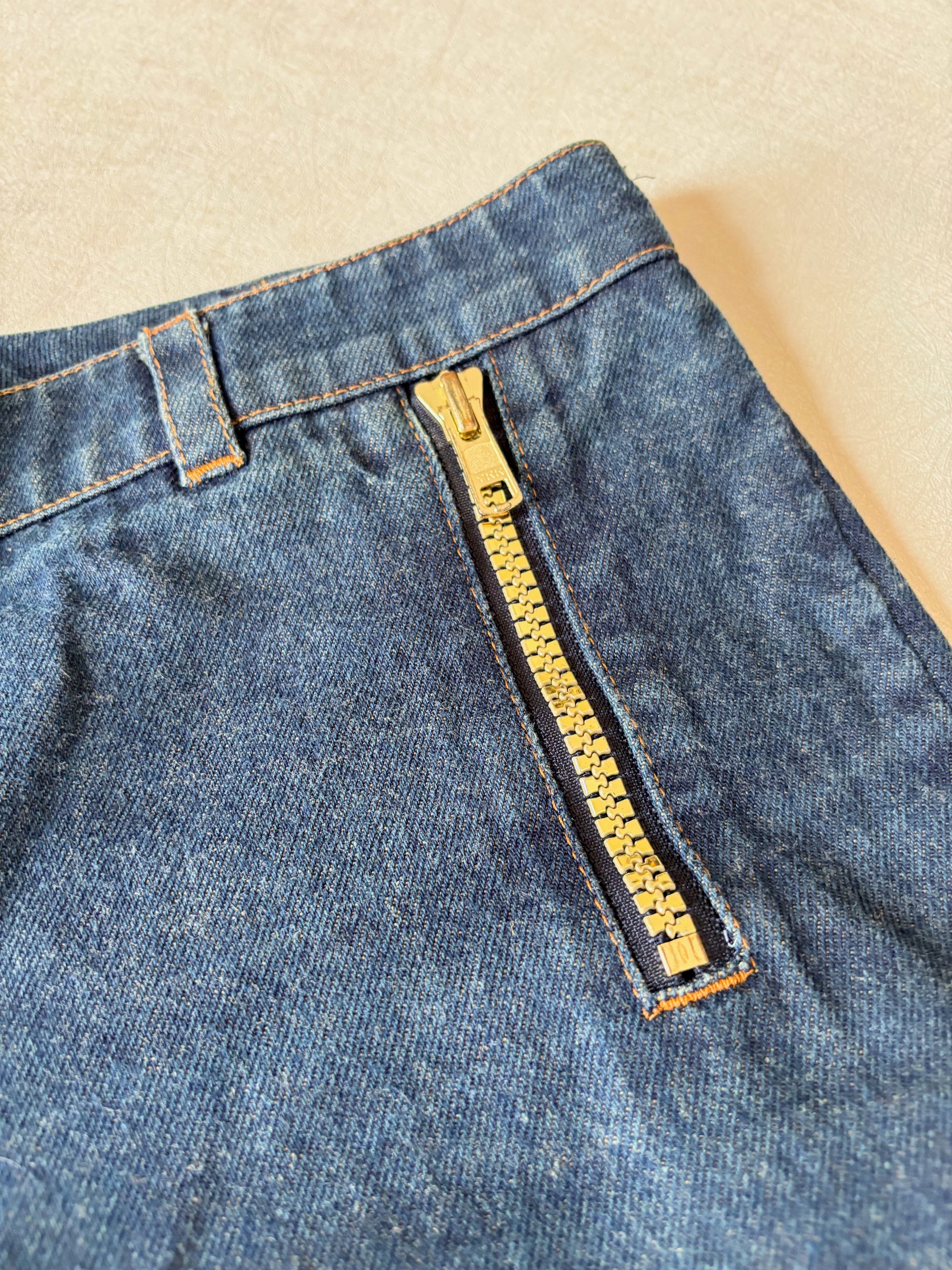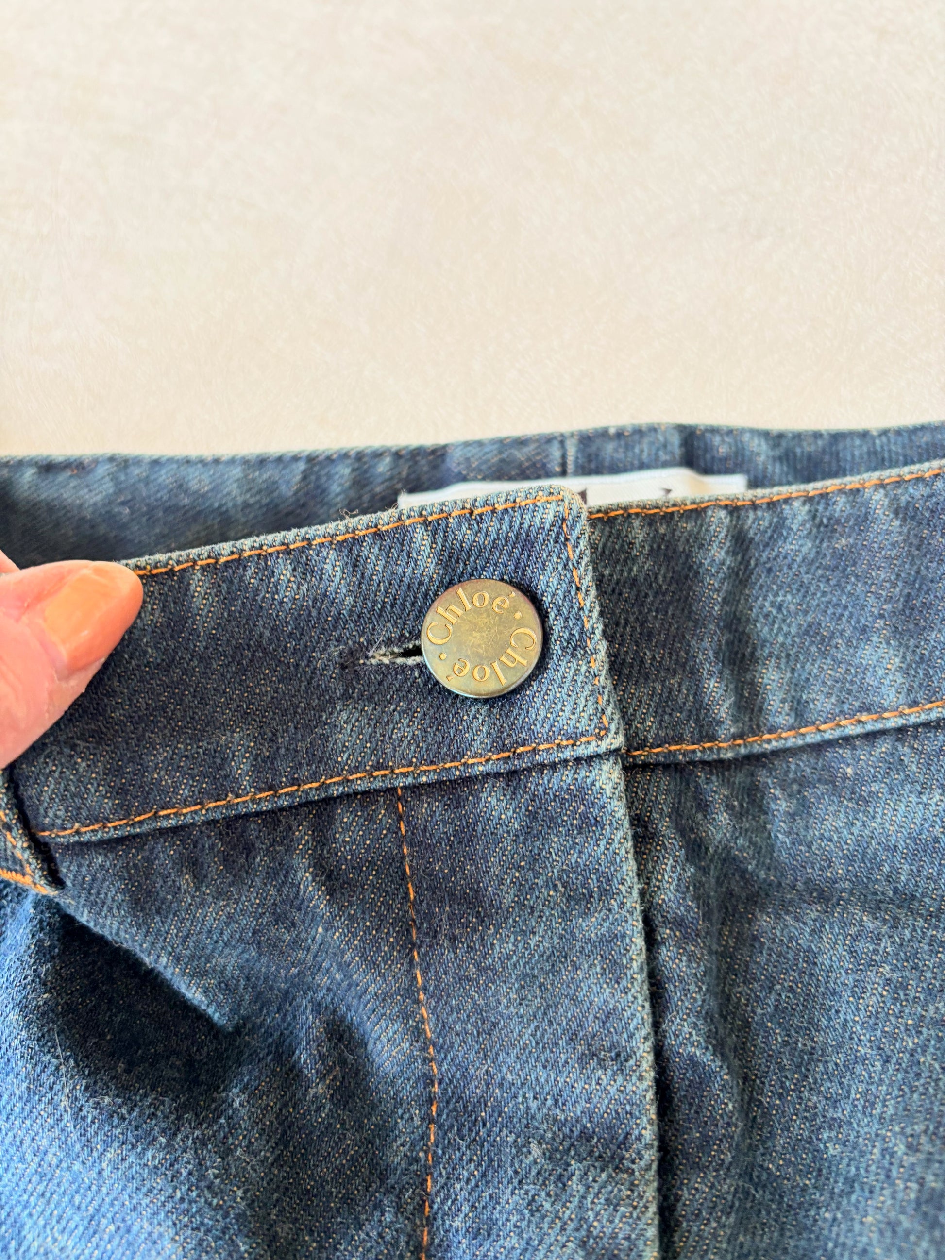 * En denim orné d'un cheval en sequins rouges brodé sur la poche arrière du pantalon