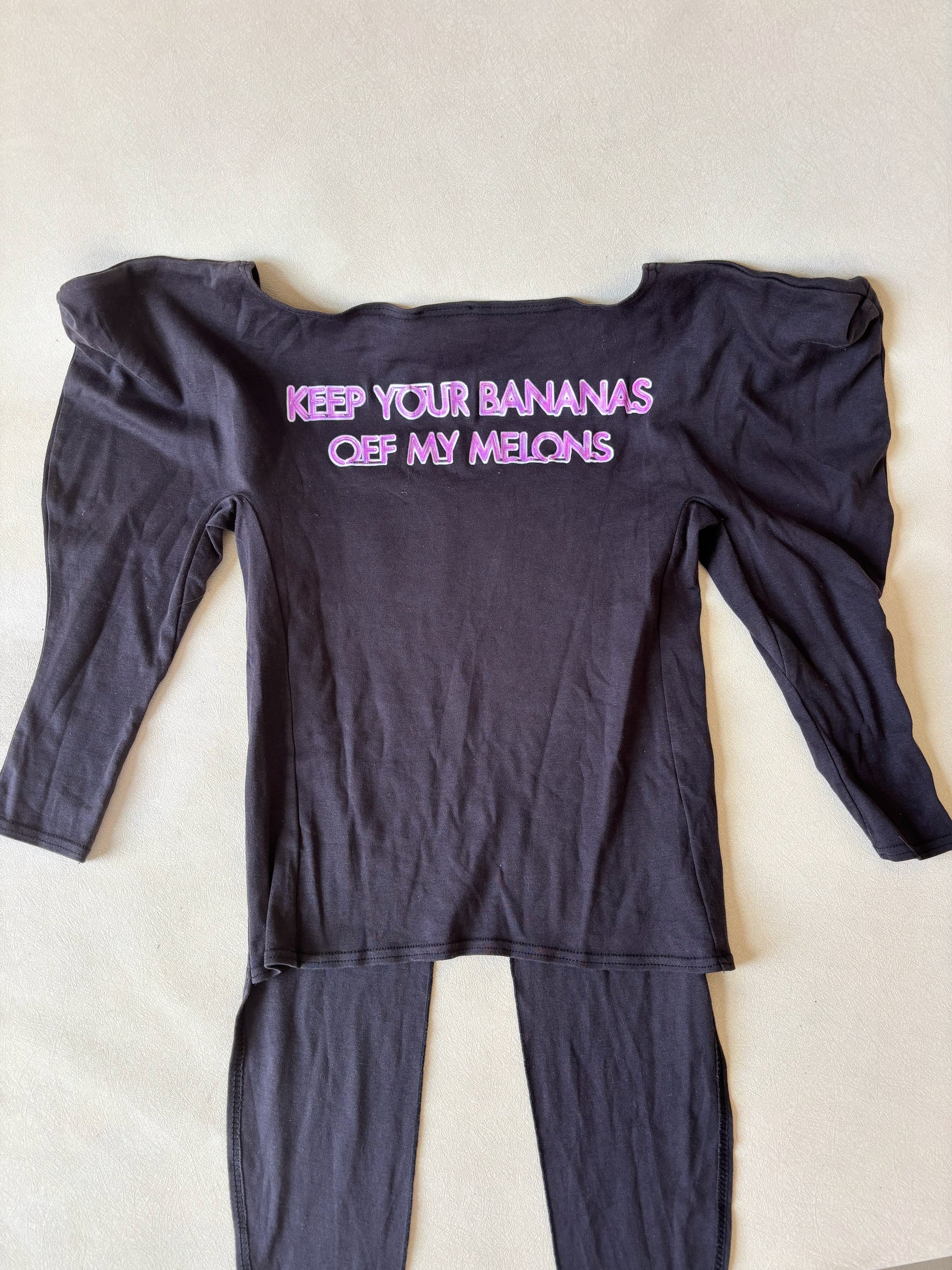 * T-shirt en coton noir floqué de deux mains "bananes"