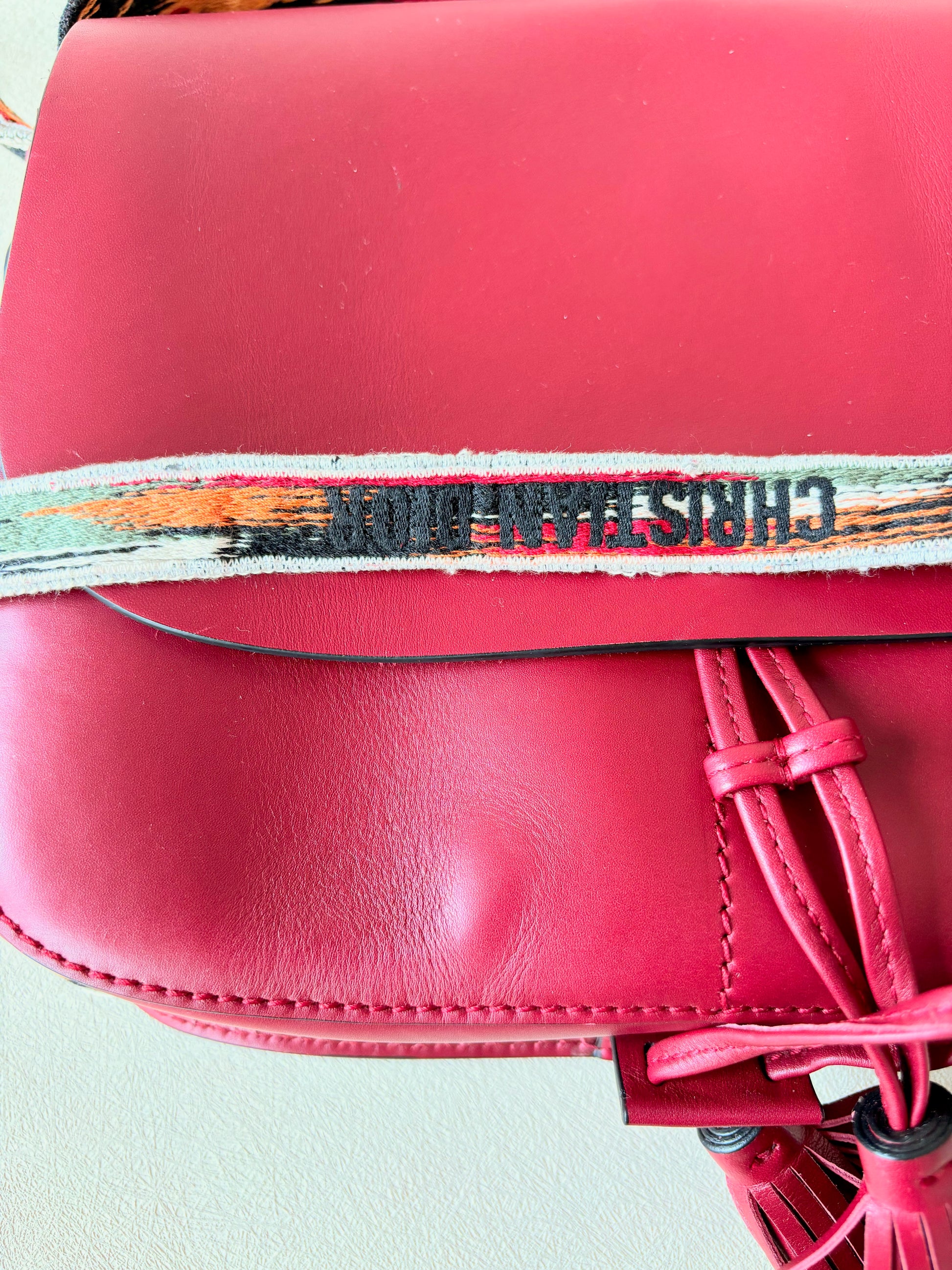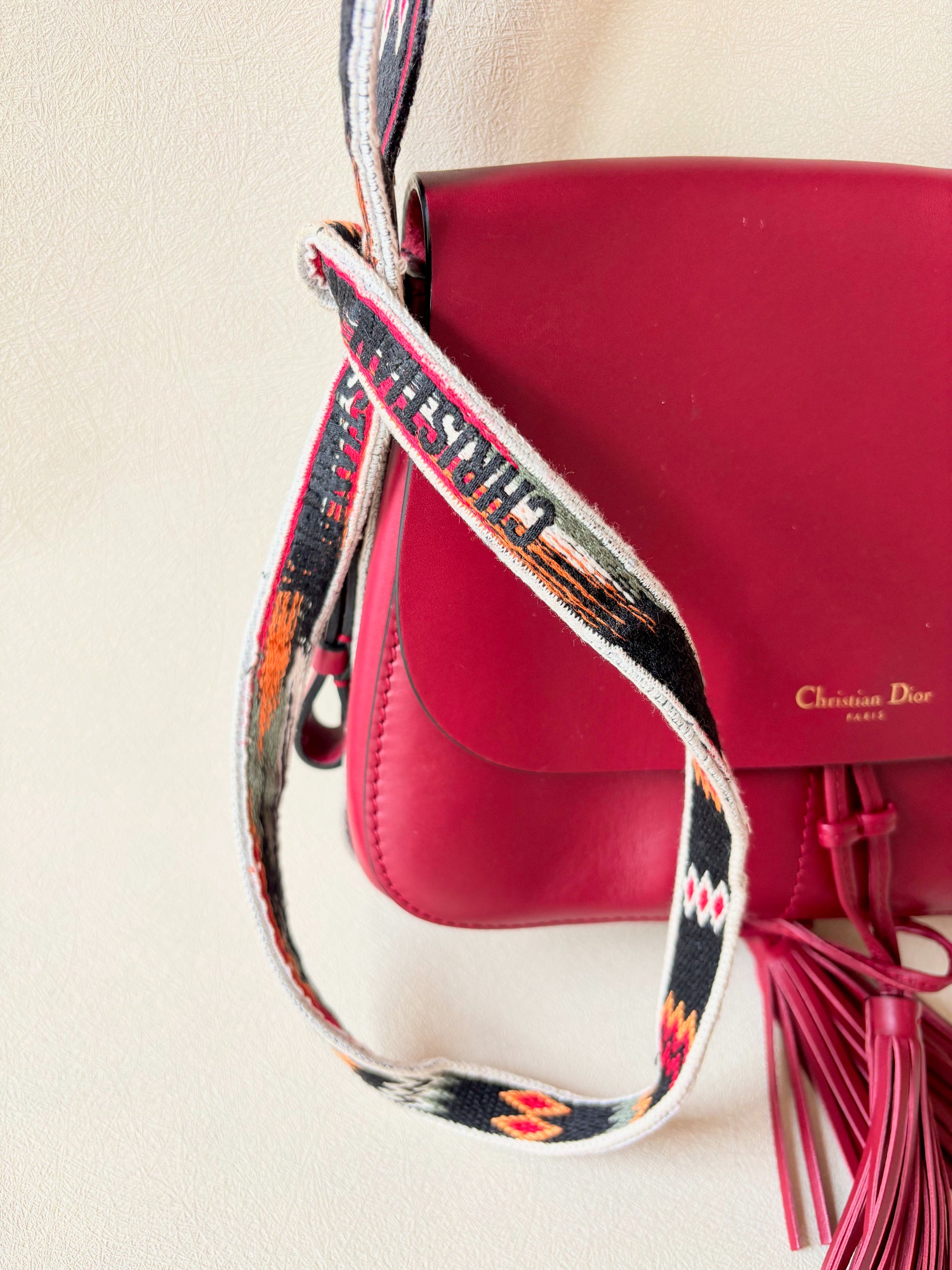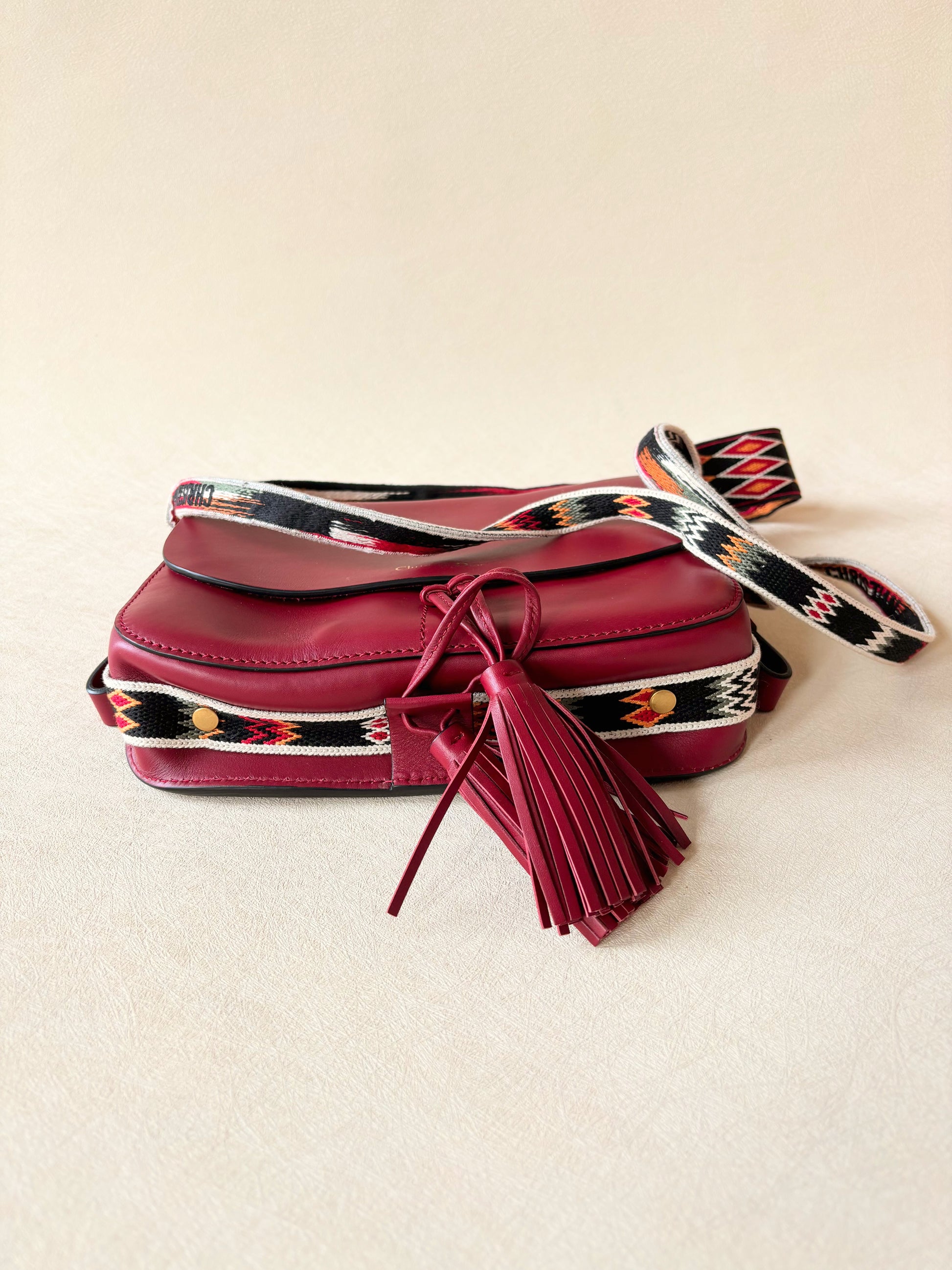 * Fermoir avec pompons en cuir rouge, bijouterie dorée