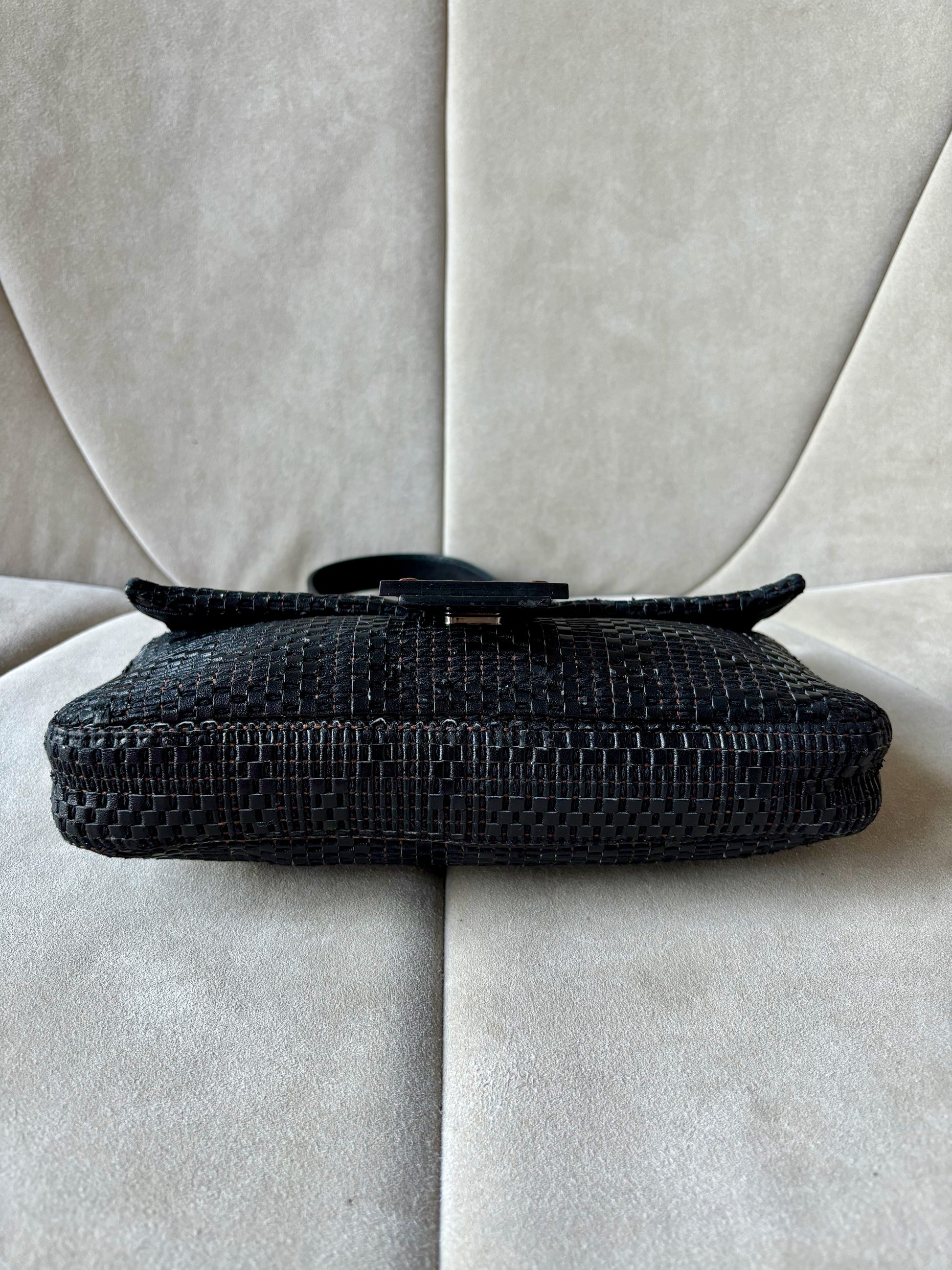 * Sac Baguette FENDI en cuir intrecciato et tissu noir
