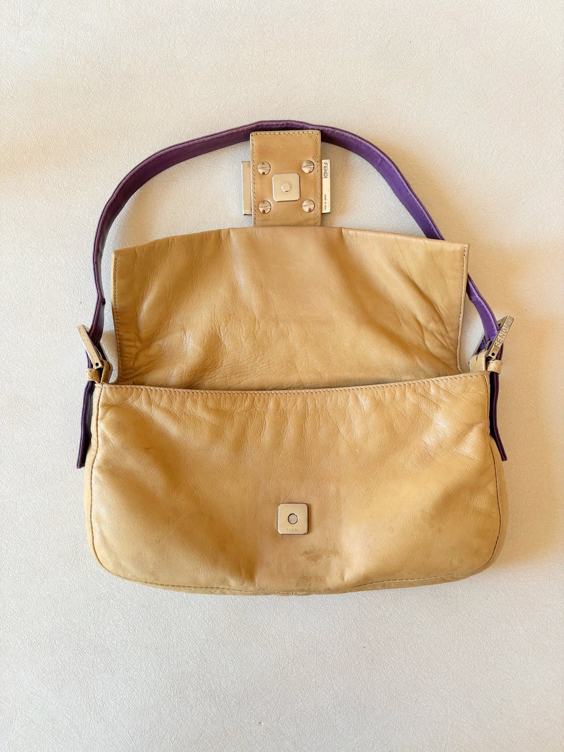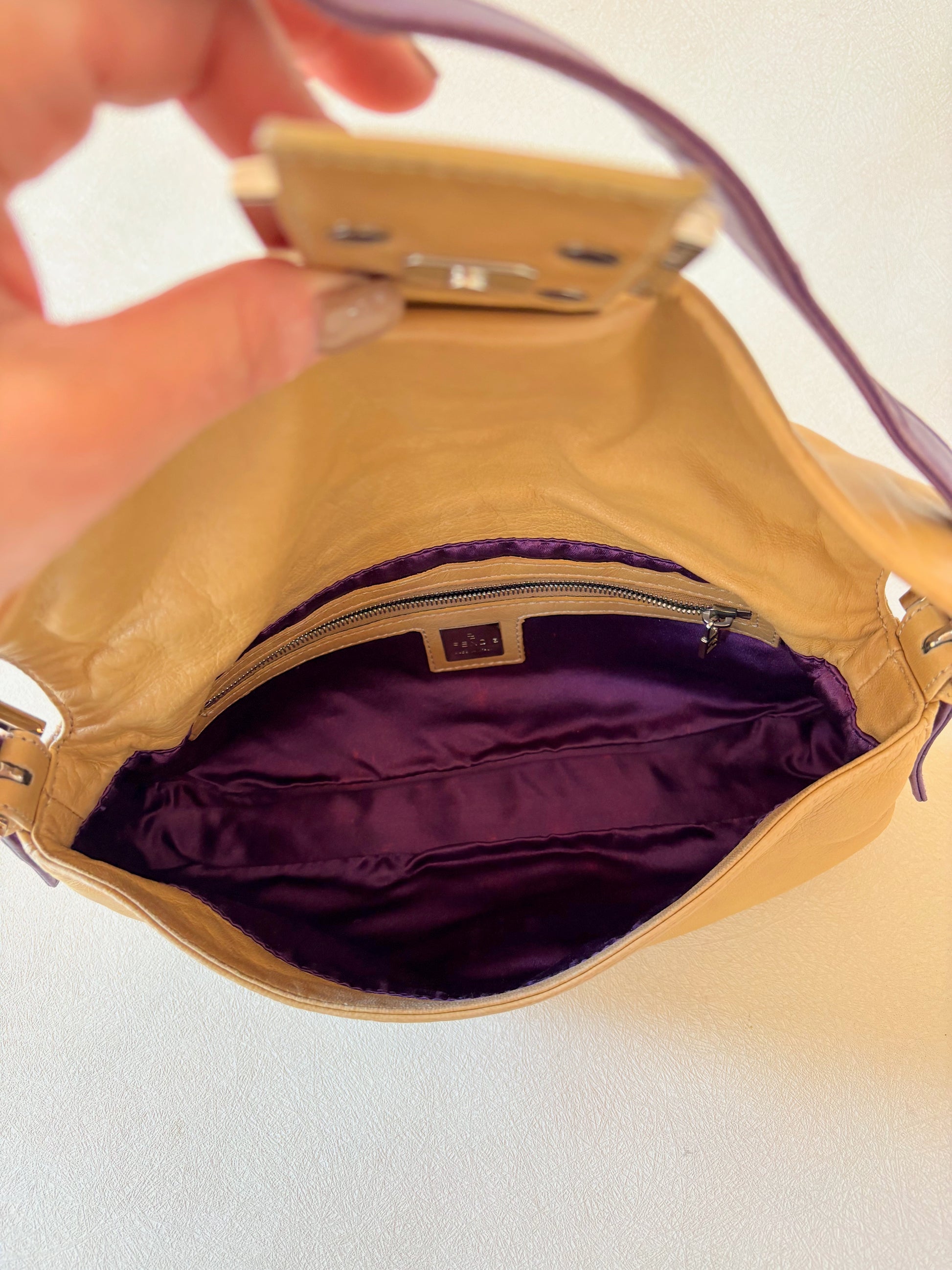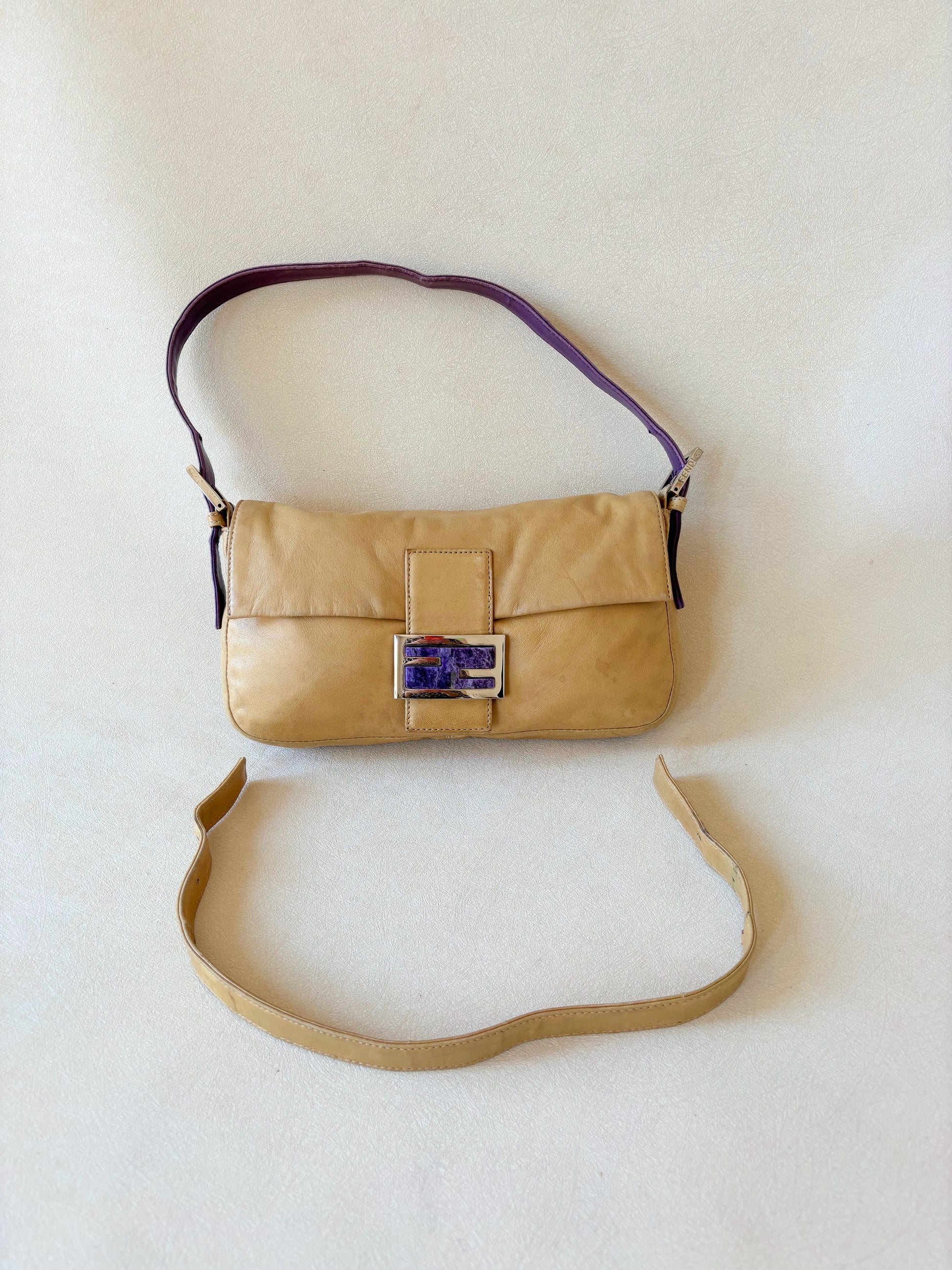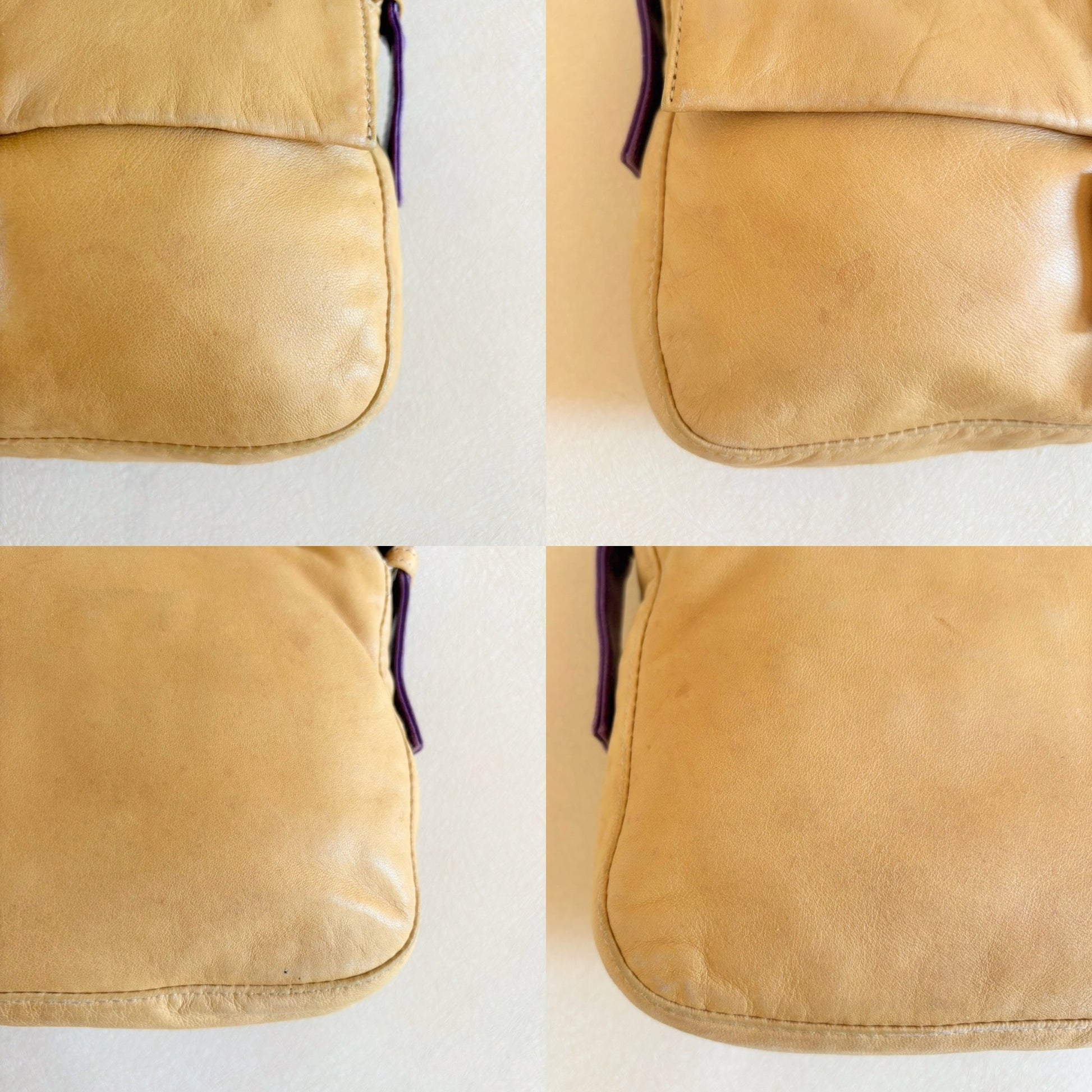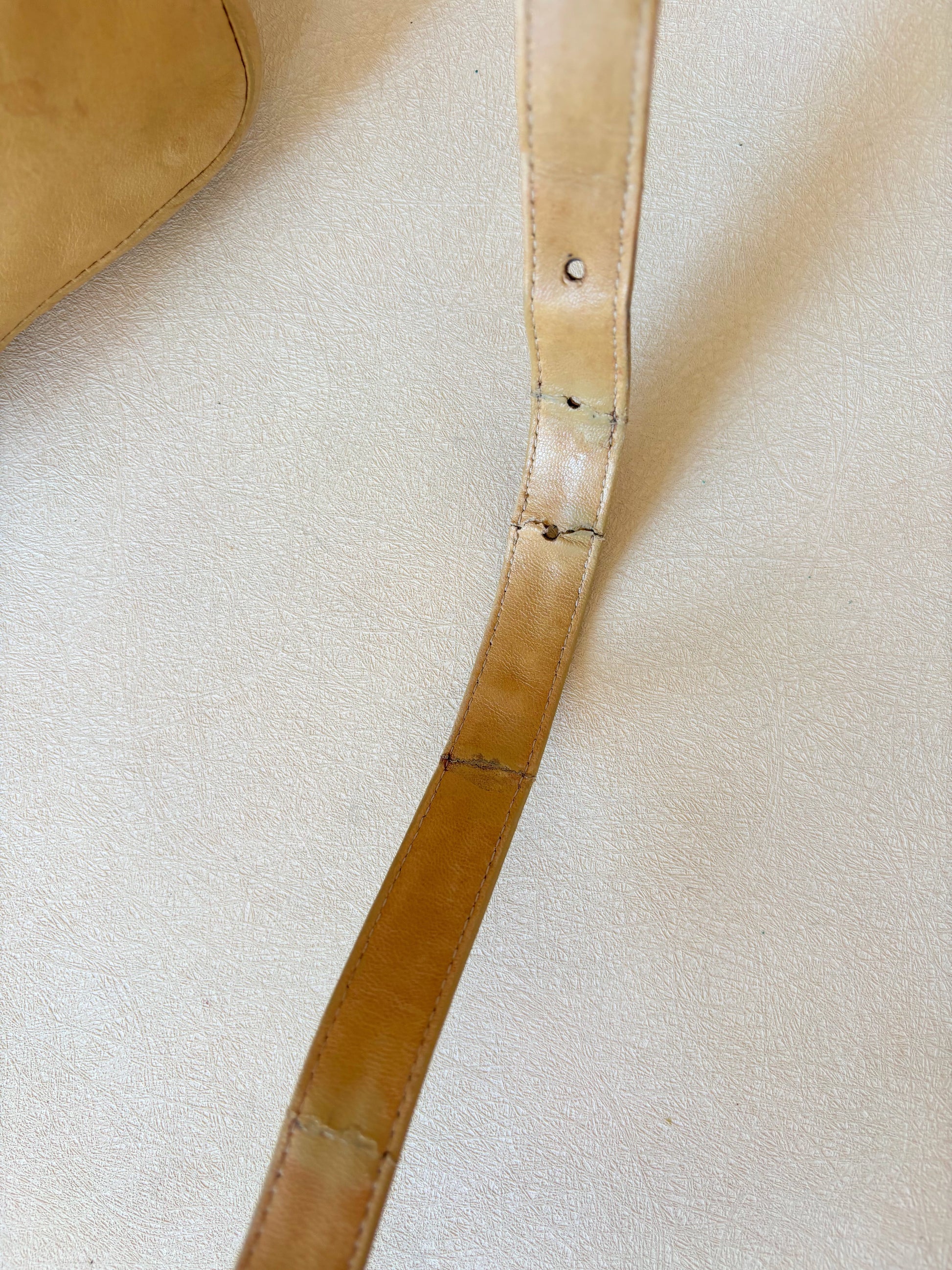 * Bon état vintage , qq taches peu visible ssur le cuir ; intérieur très propre ; également livré avec une bandoulière en cuir beige qui présente de multiples cassures