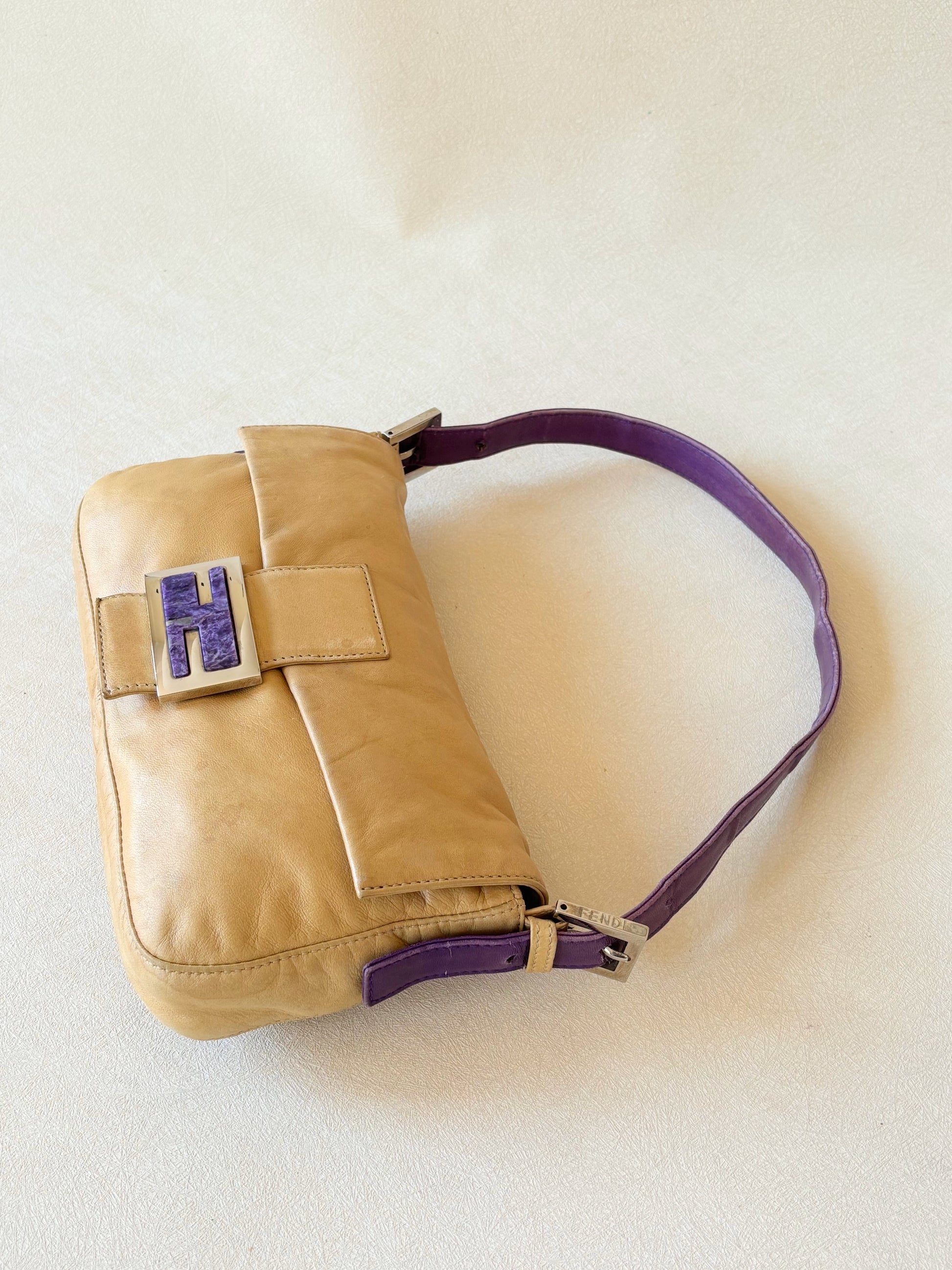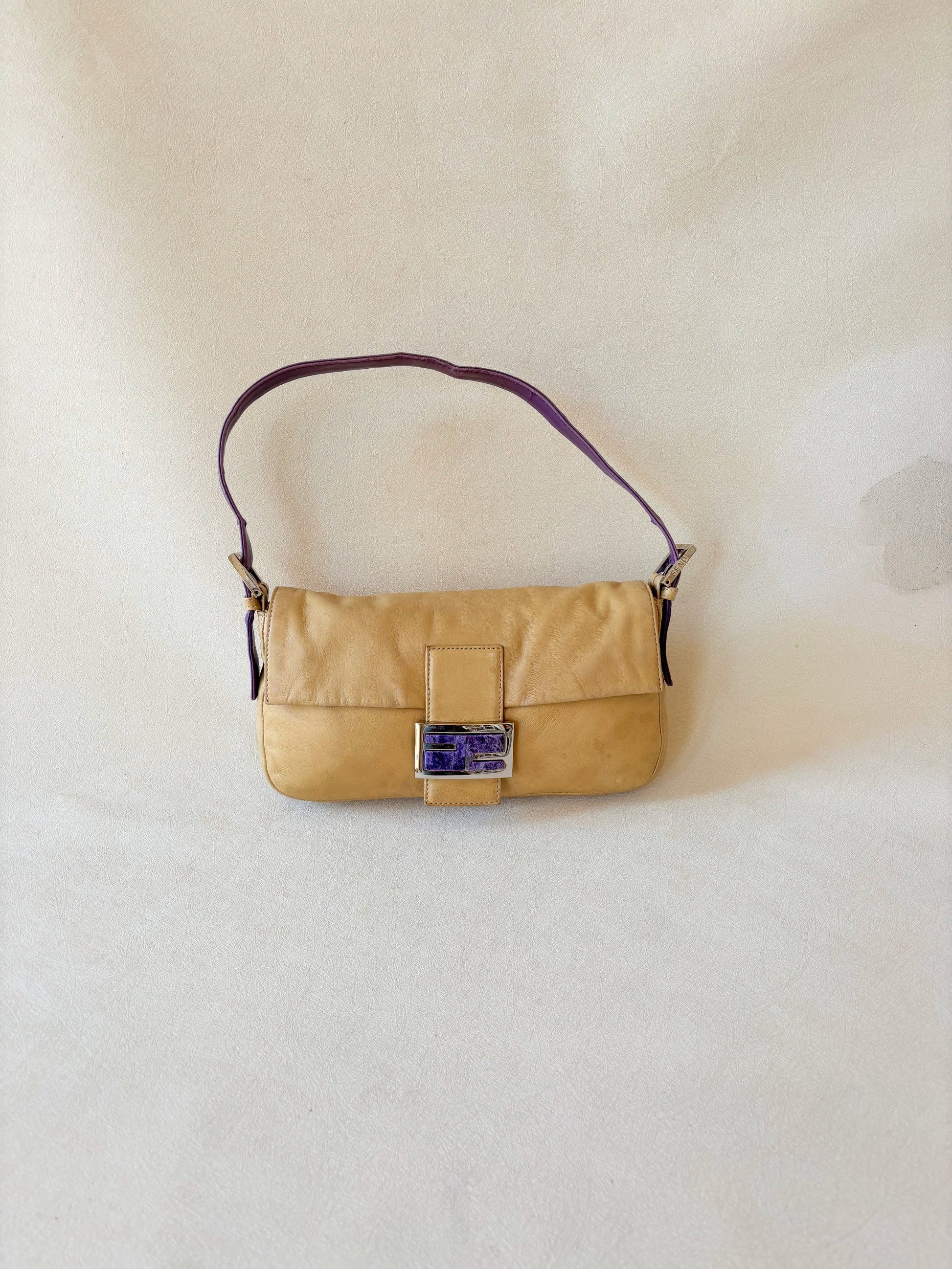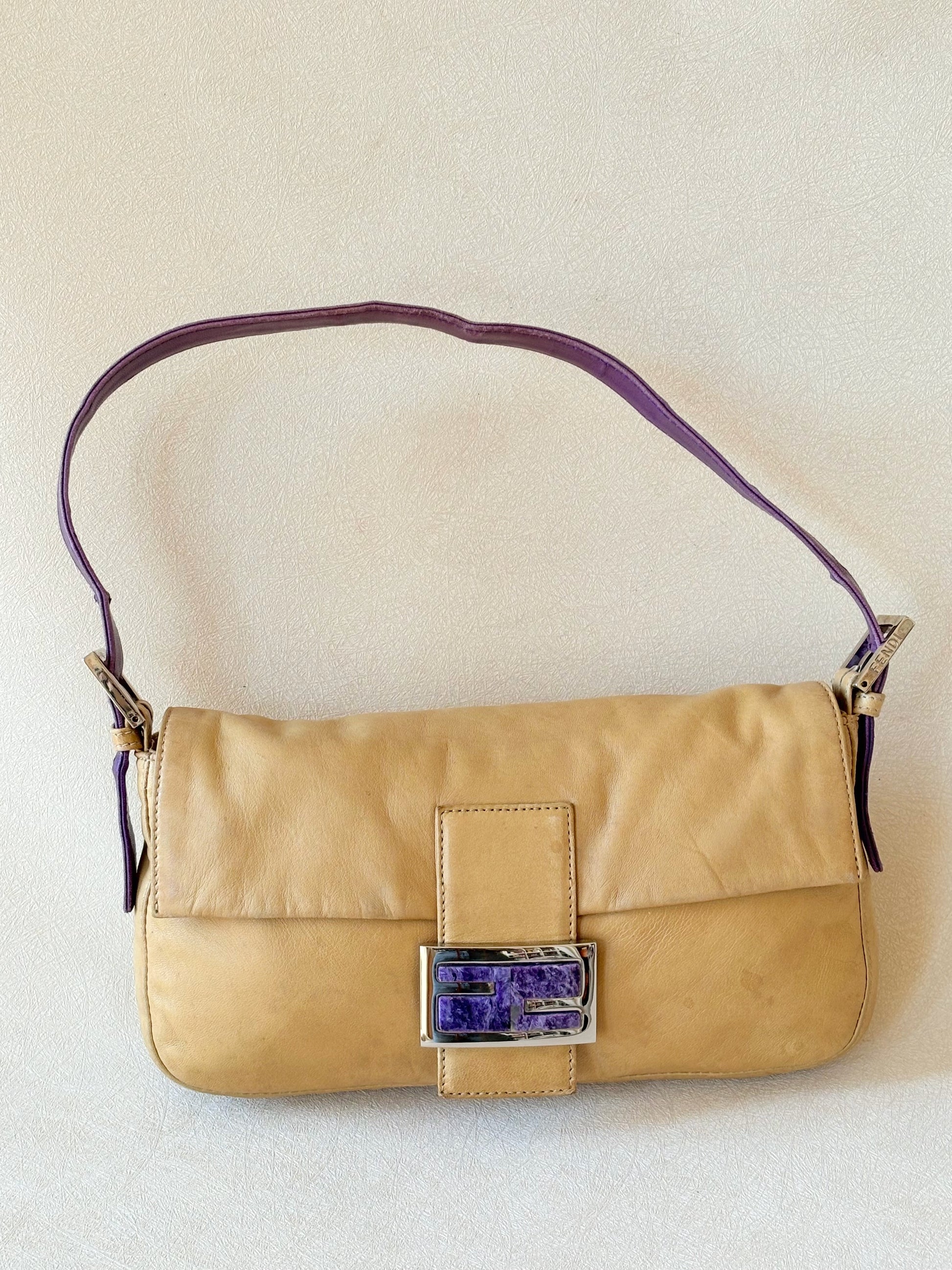 * Bijouterie en métal argenté et résine violette, fermoir FF emblématique de la marque