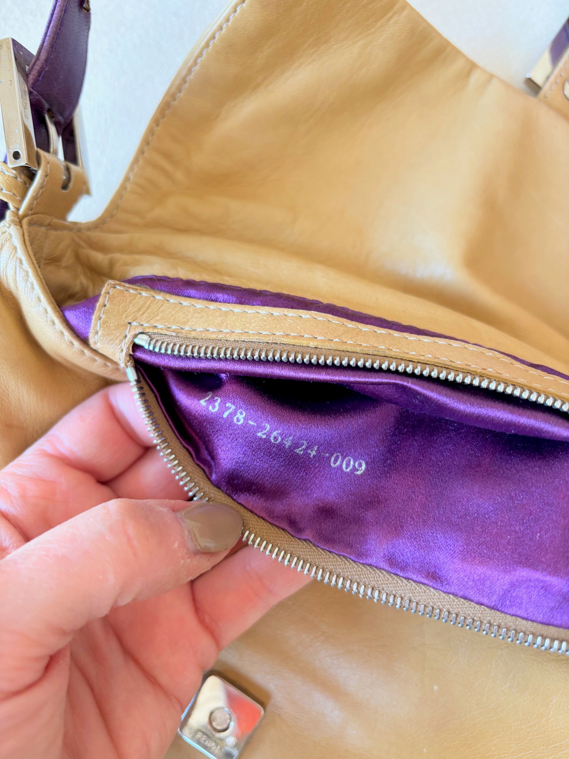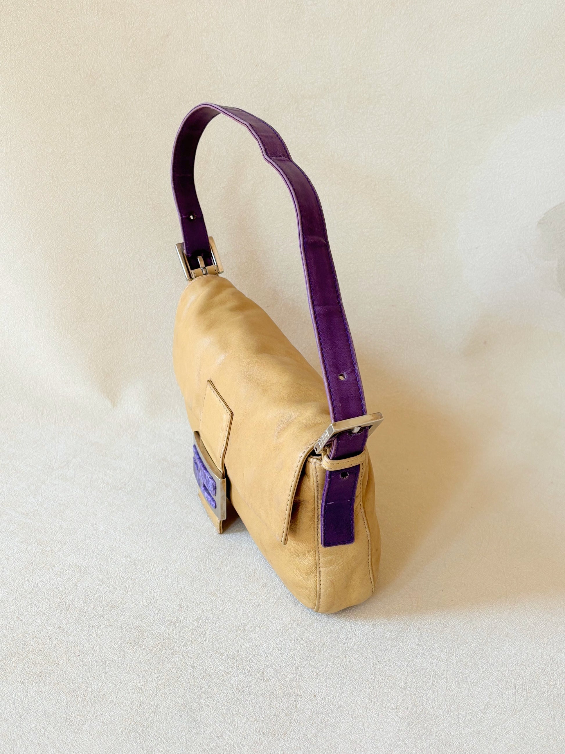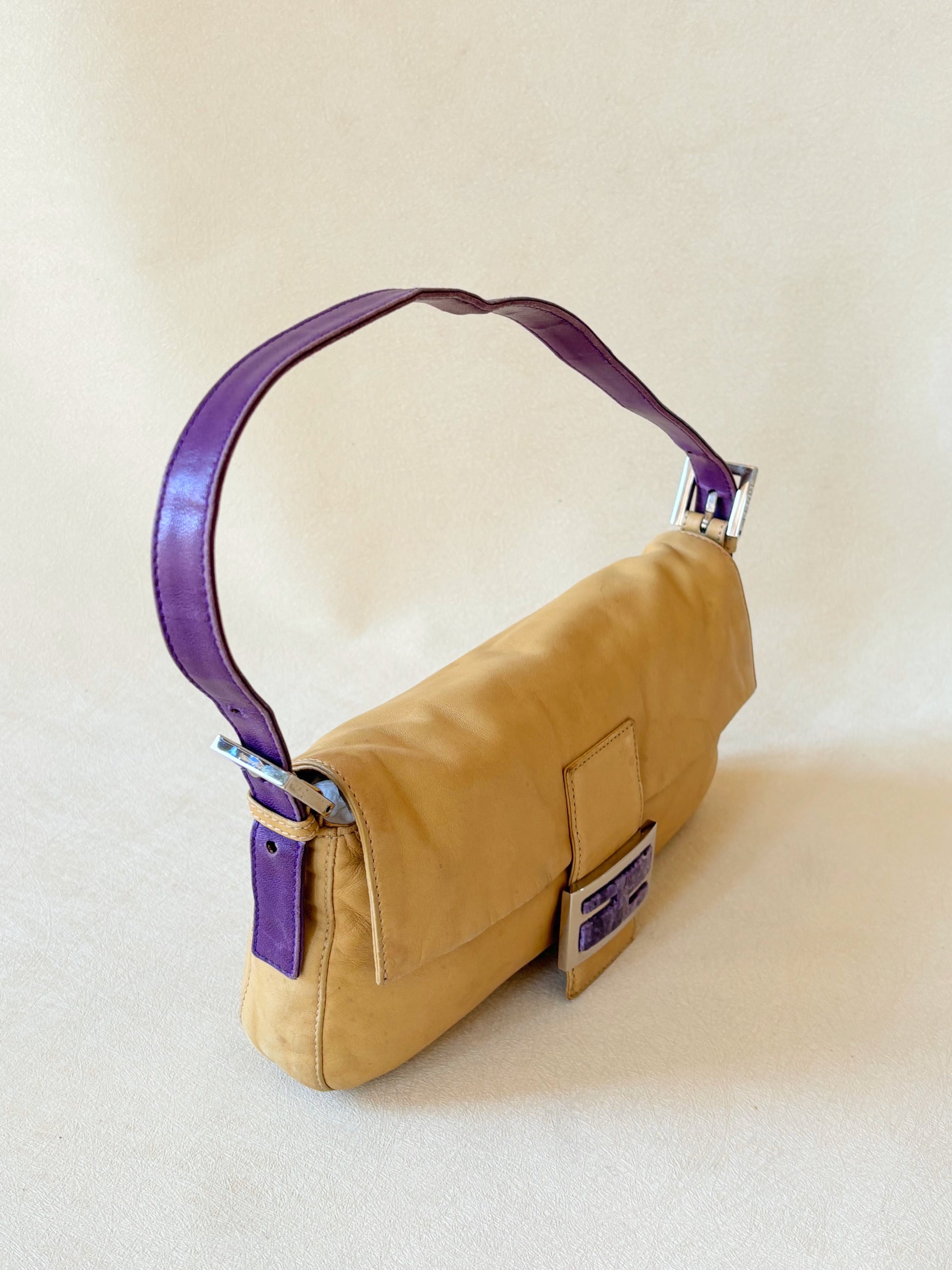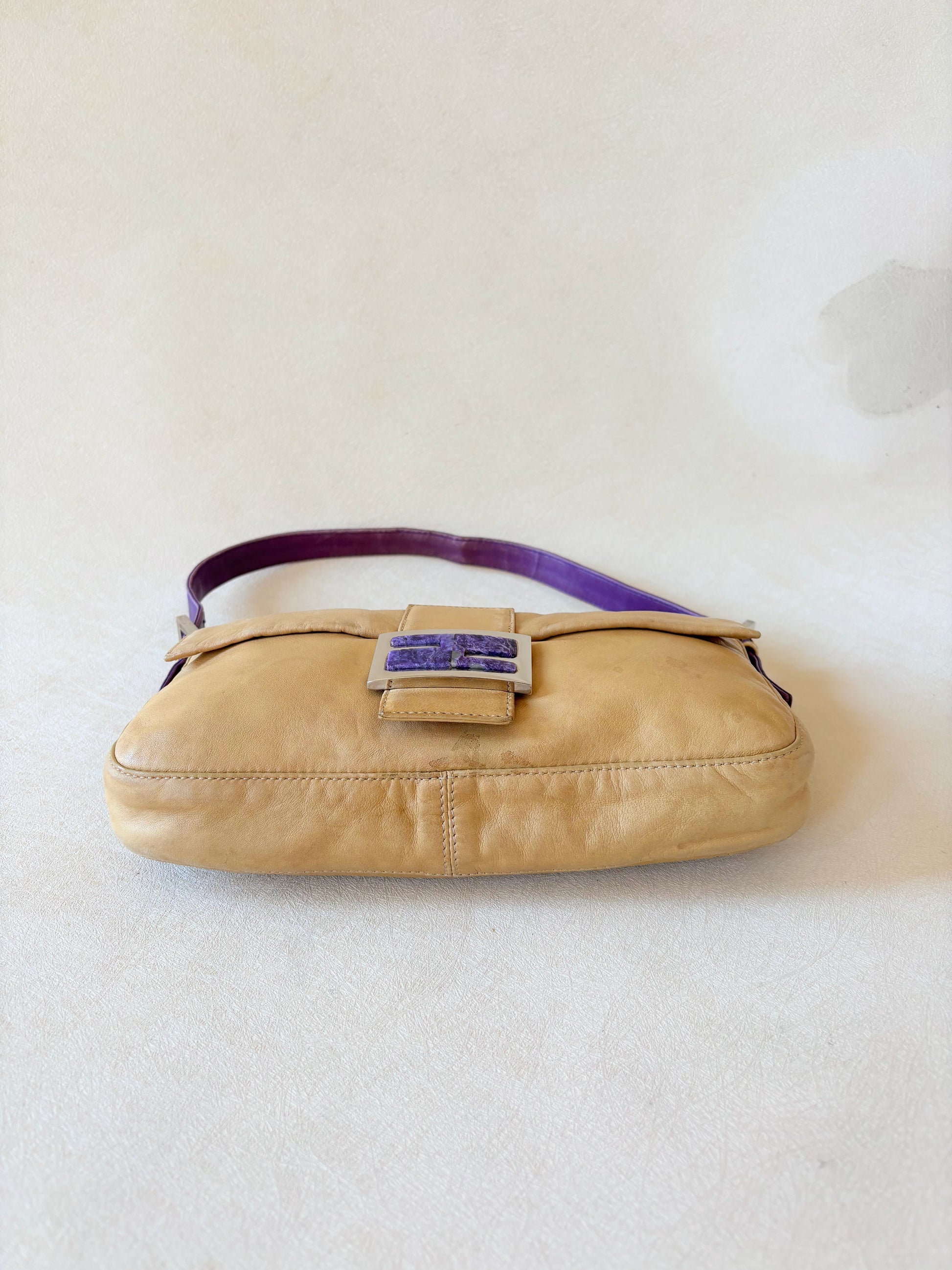 * Bijouterie en métal argenté et résine violette, fermoir FF emblématique de la marque