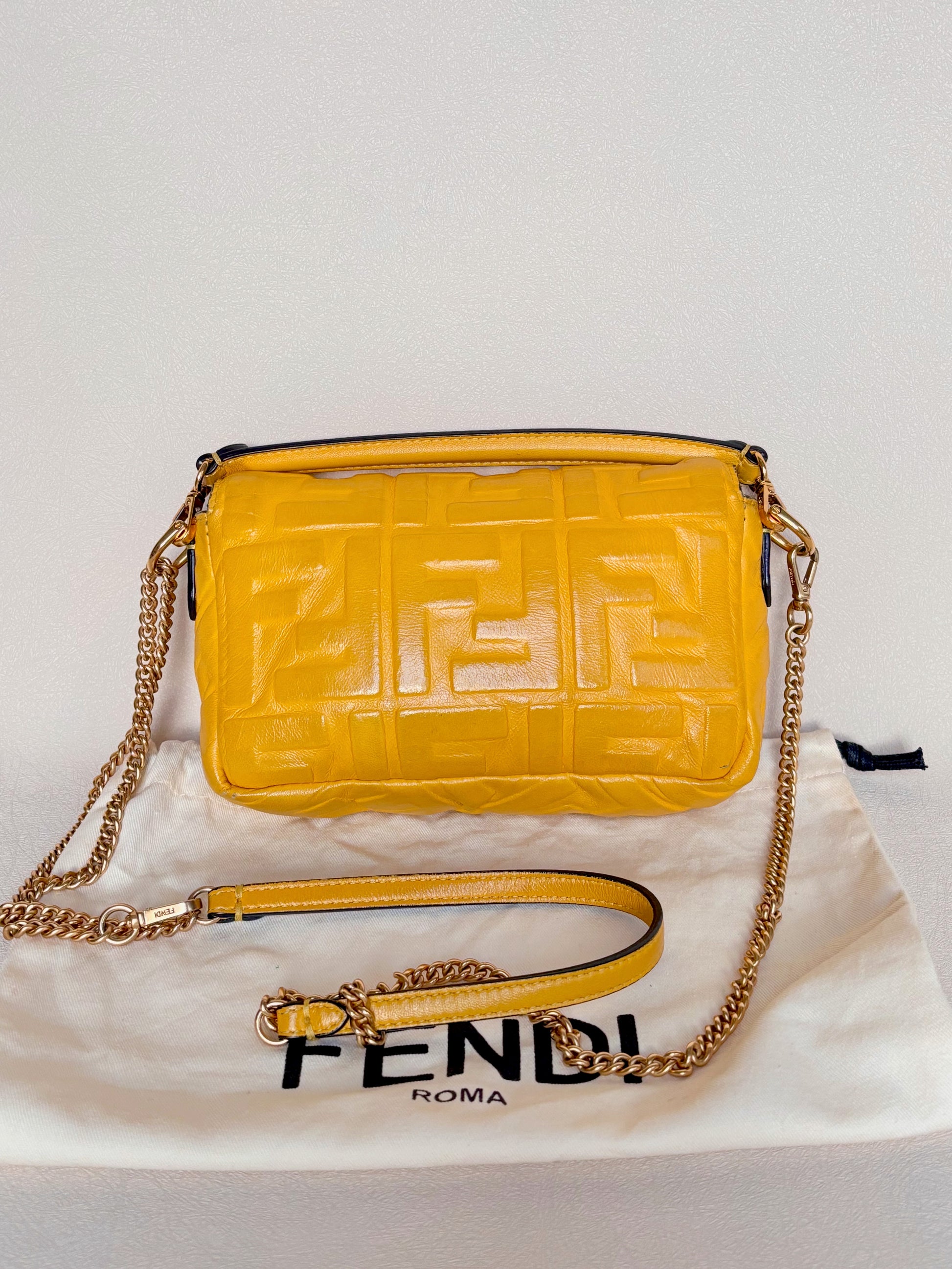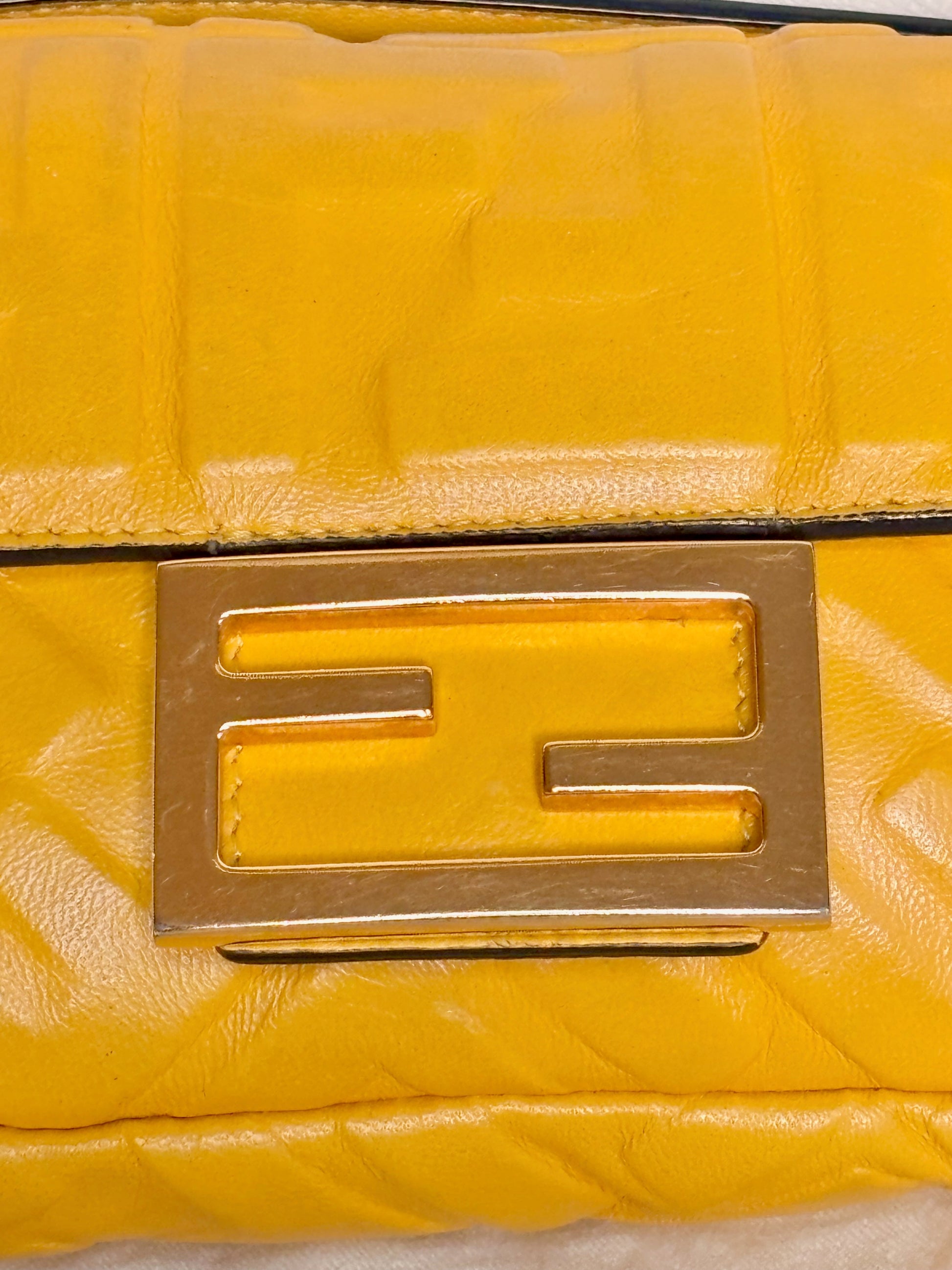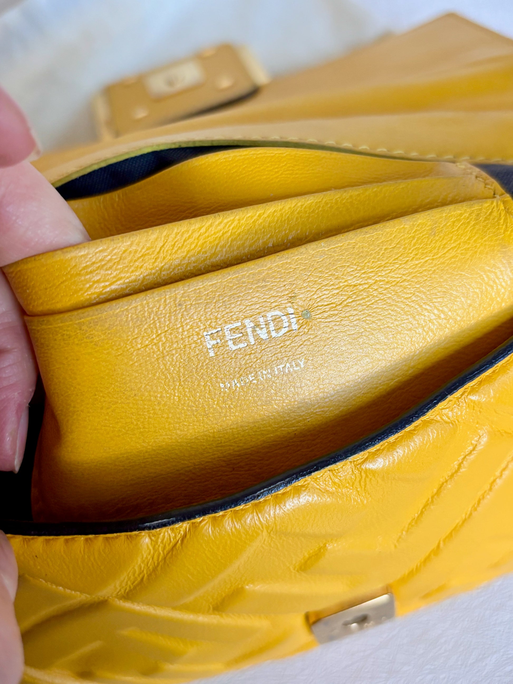 * En cuir nappa souple couleur jaune avec motif FF emblématique en relief effet 3D et fermoir FF