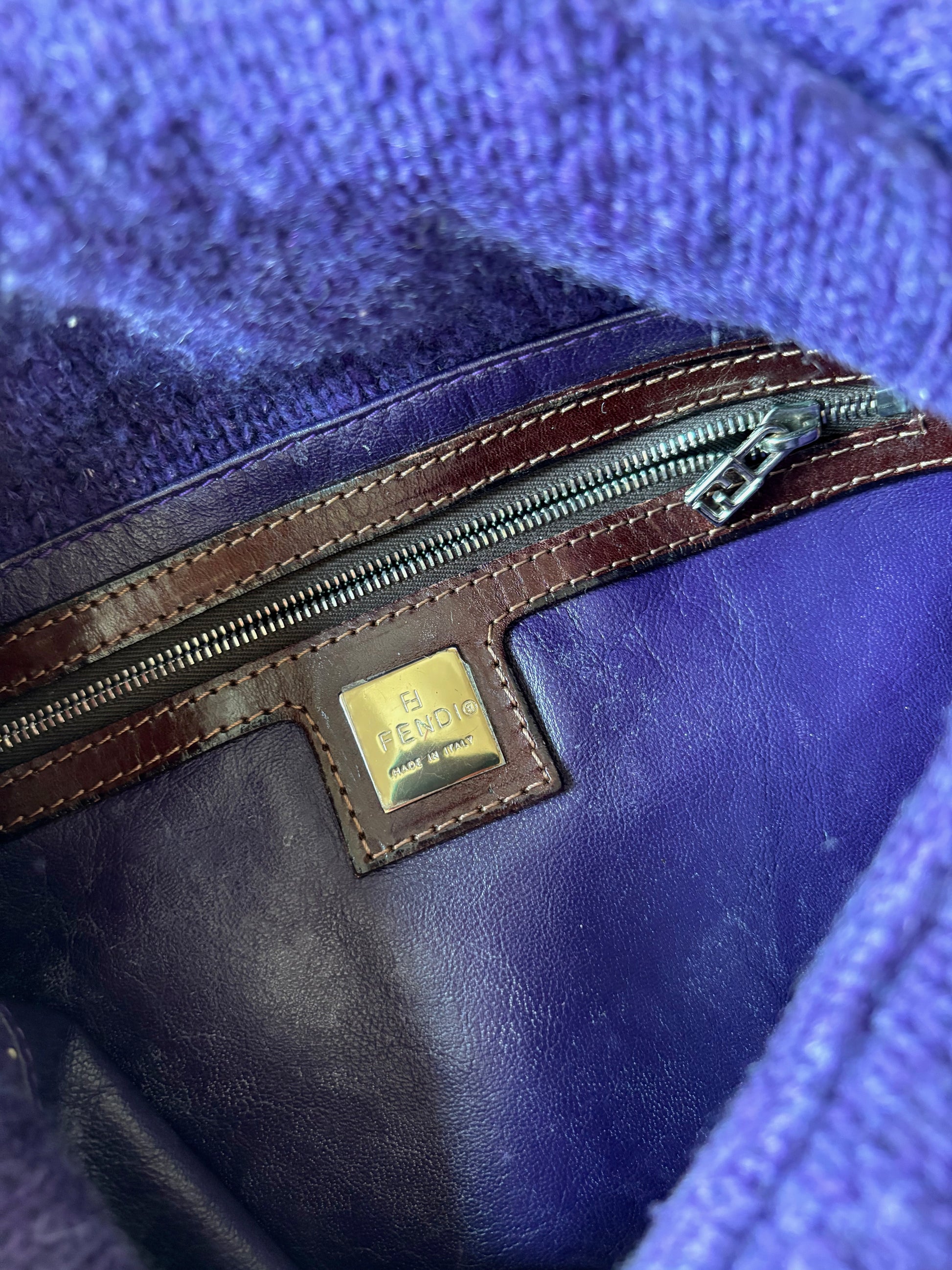 * Bijouterie en métal siglé et fermoir FF emblématique du modèle en cuir marron