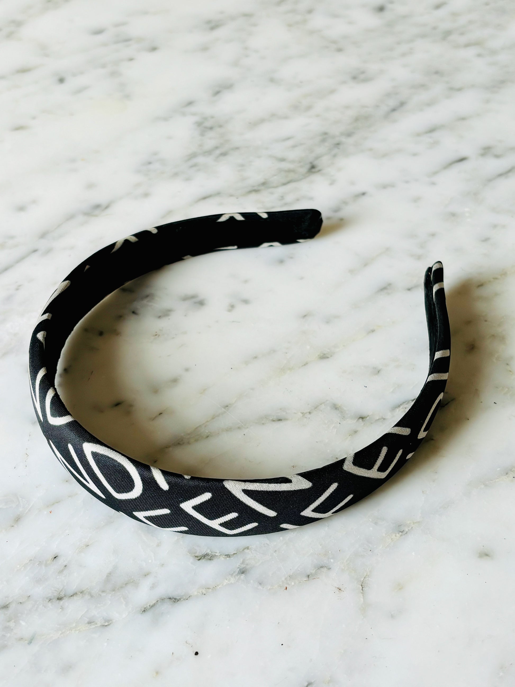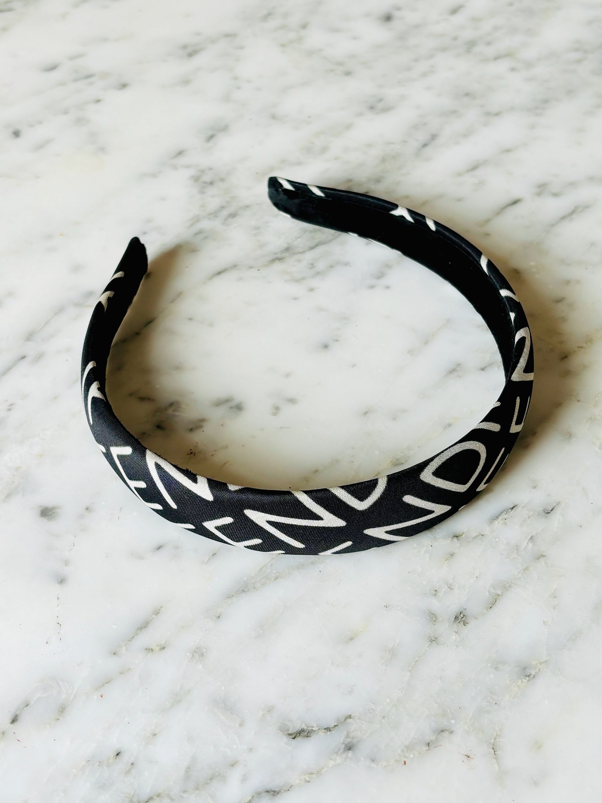 * Serre-tête FENDI en toile noire monogrammée blanche contractante