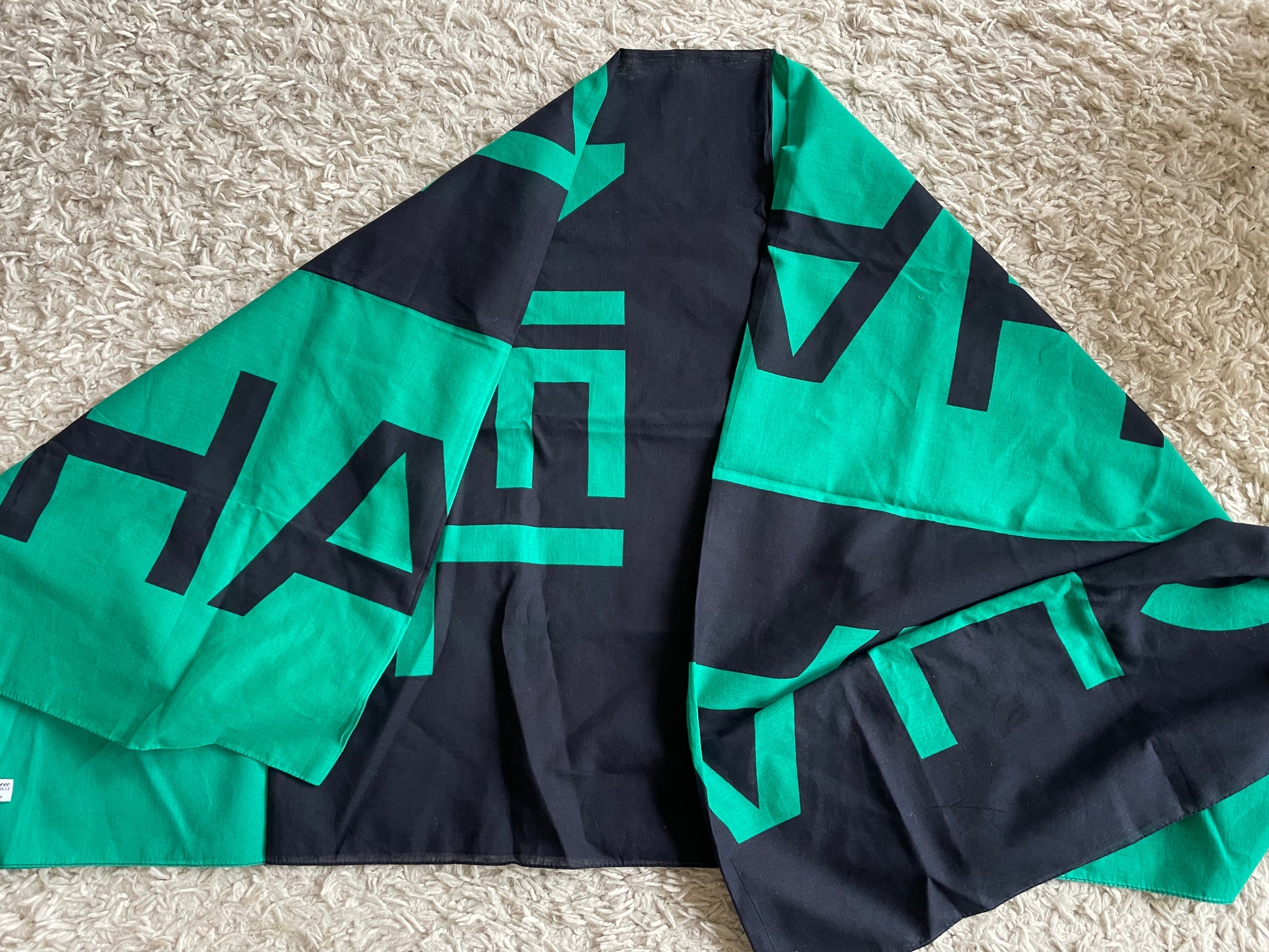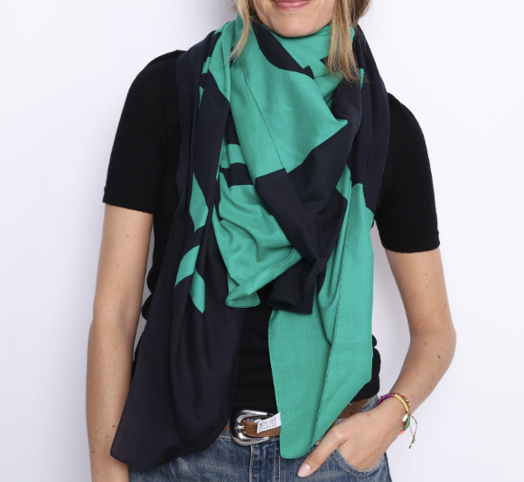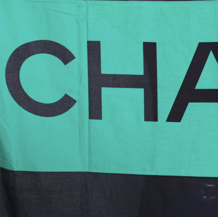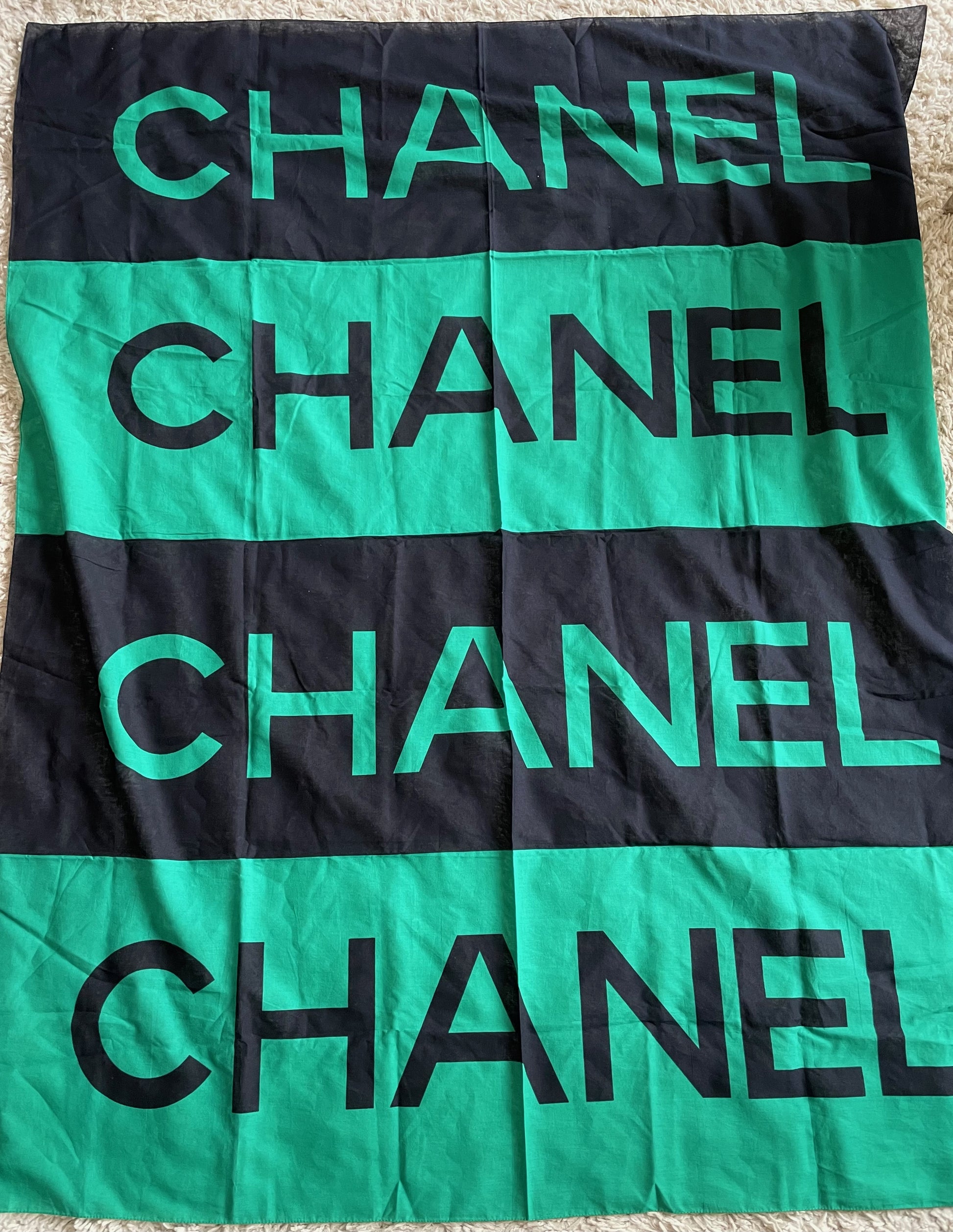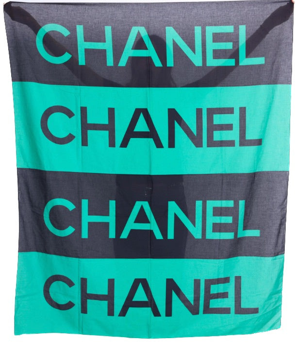 * Grand paréo CHANEL en coton noir et vert abev Ecritures contrastantes