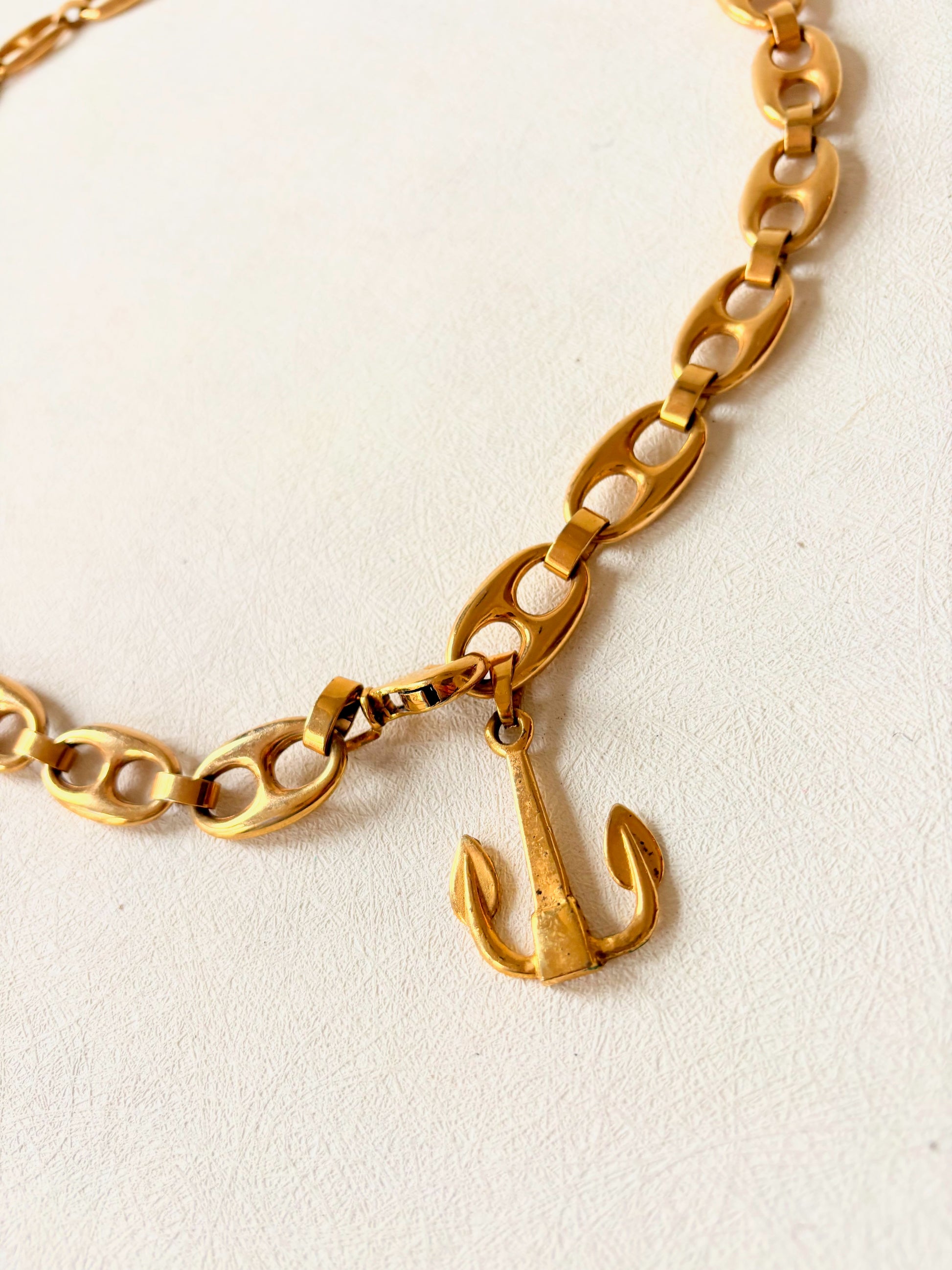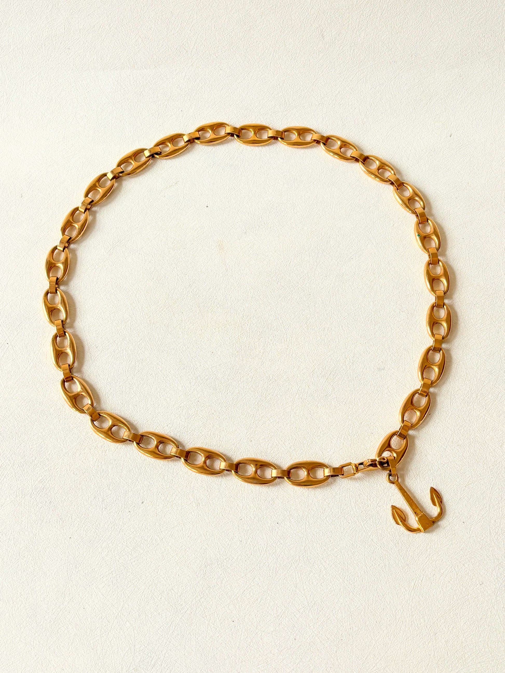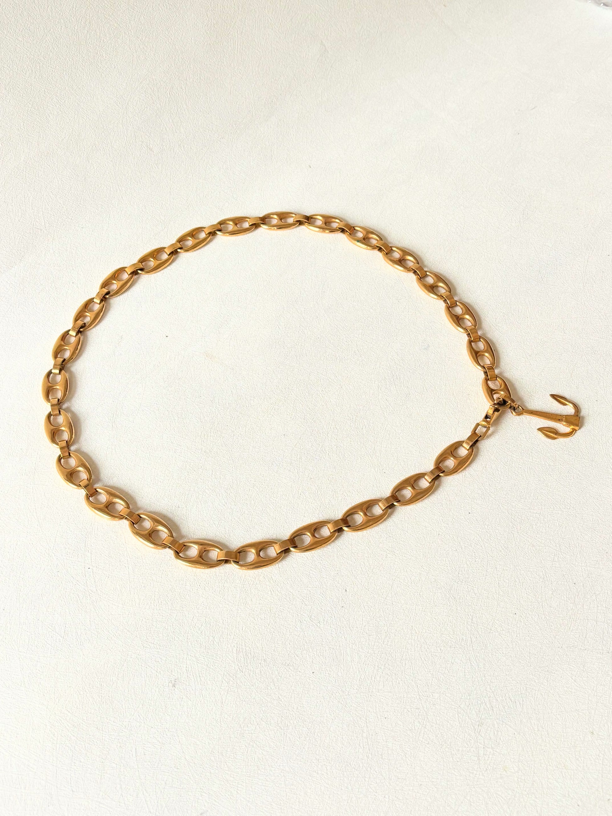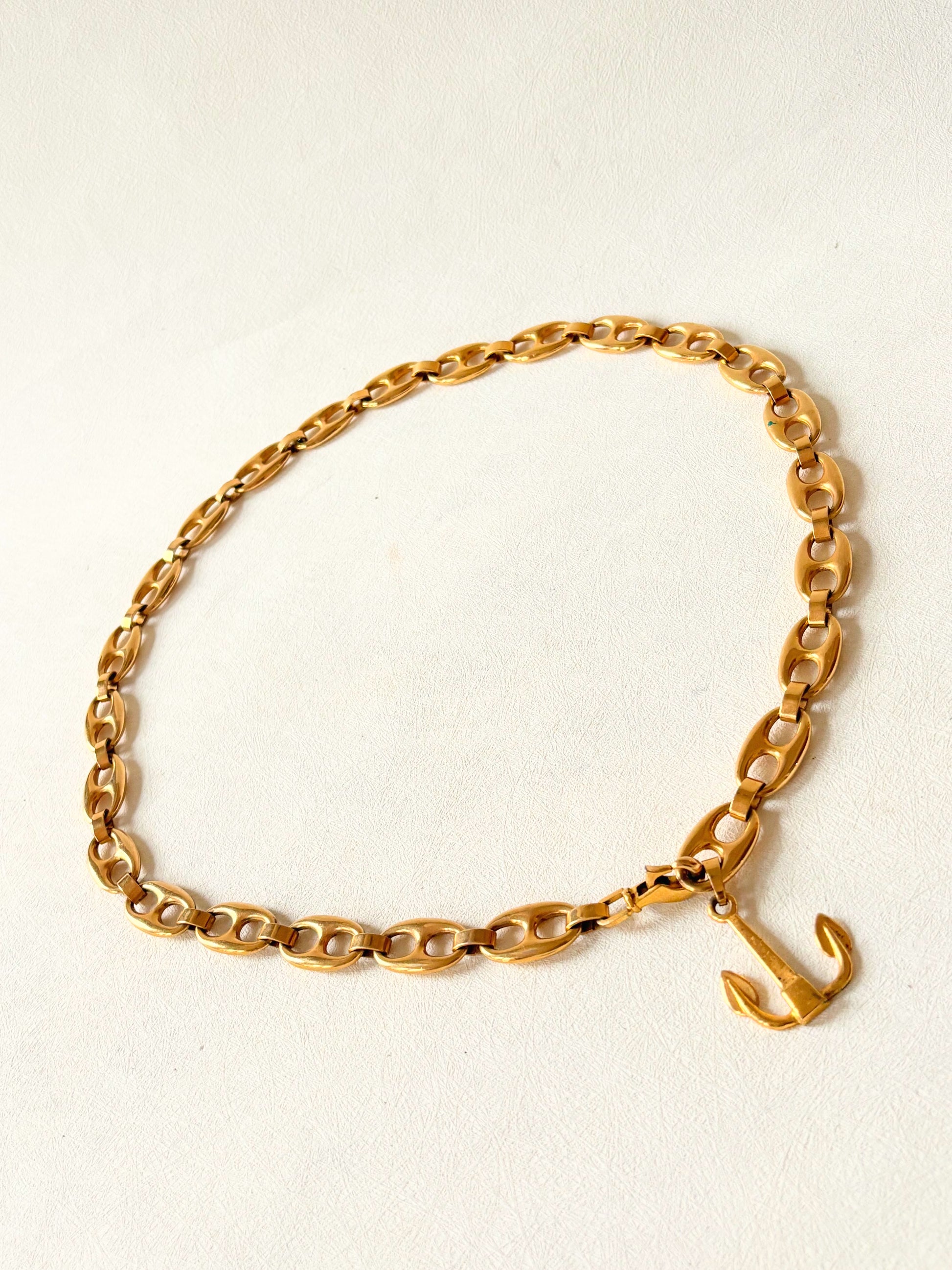 * En métal doré, orné d'une ancre en bout de chaine
