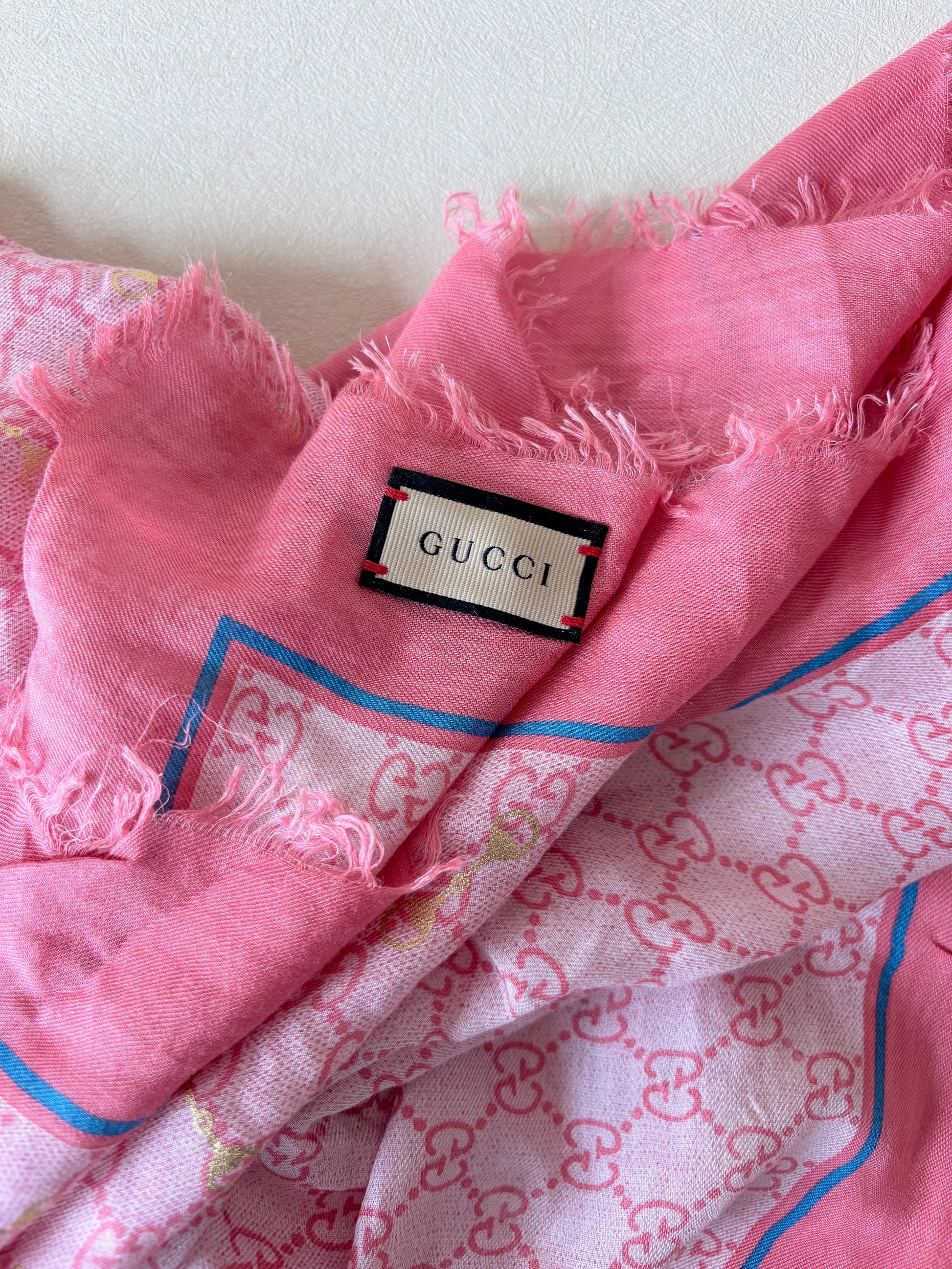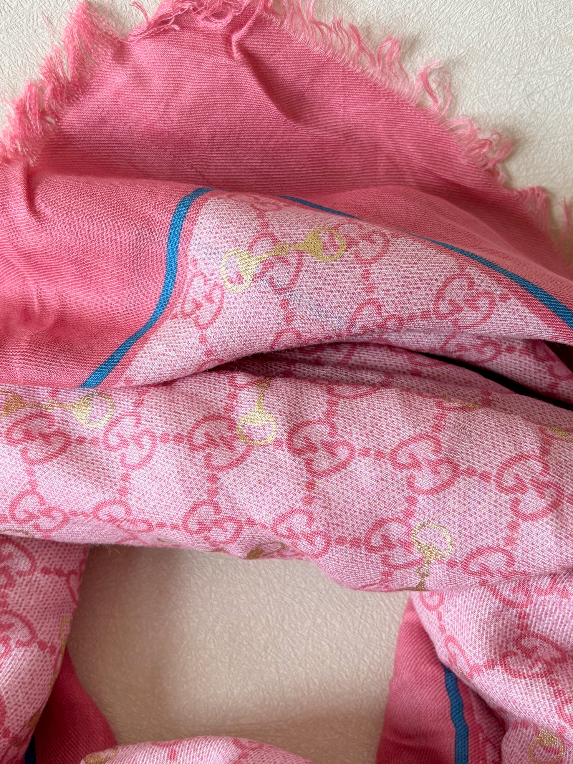 * Imprimé monogramme GG rose et motif mors-de-cheval doré en surimpression dorée
