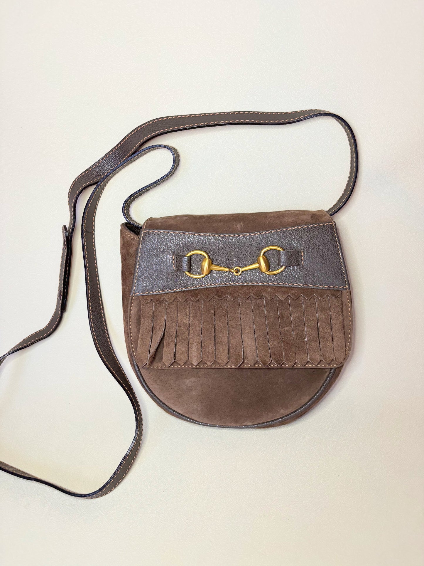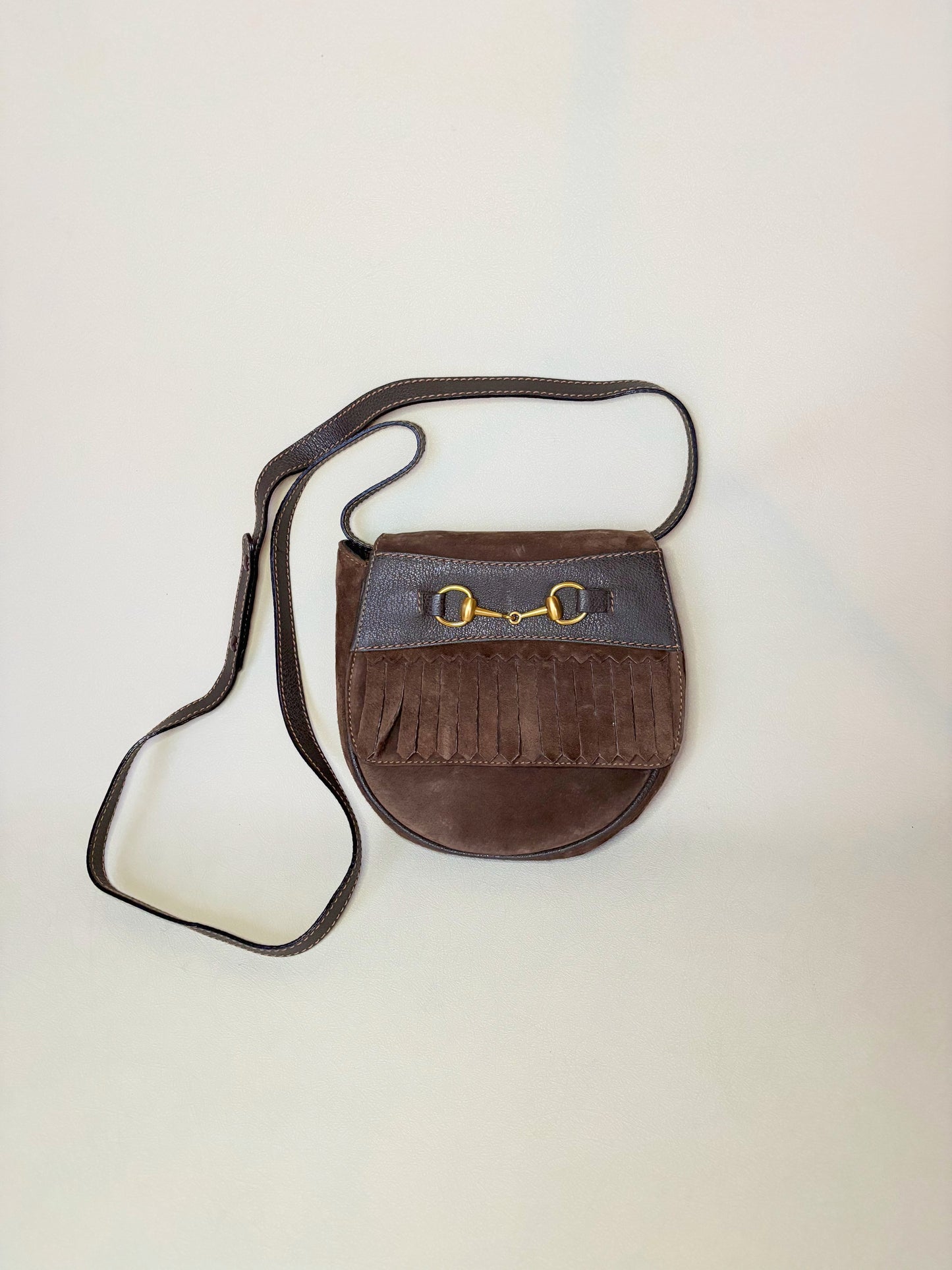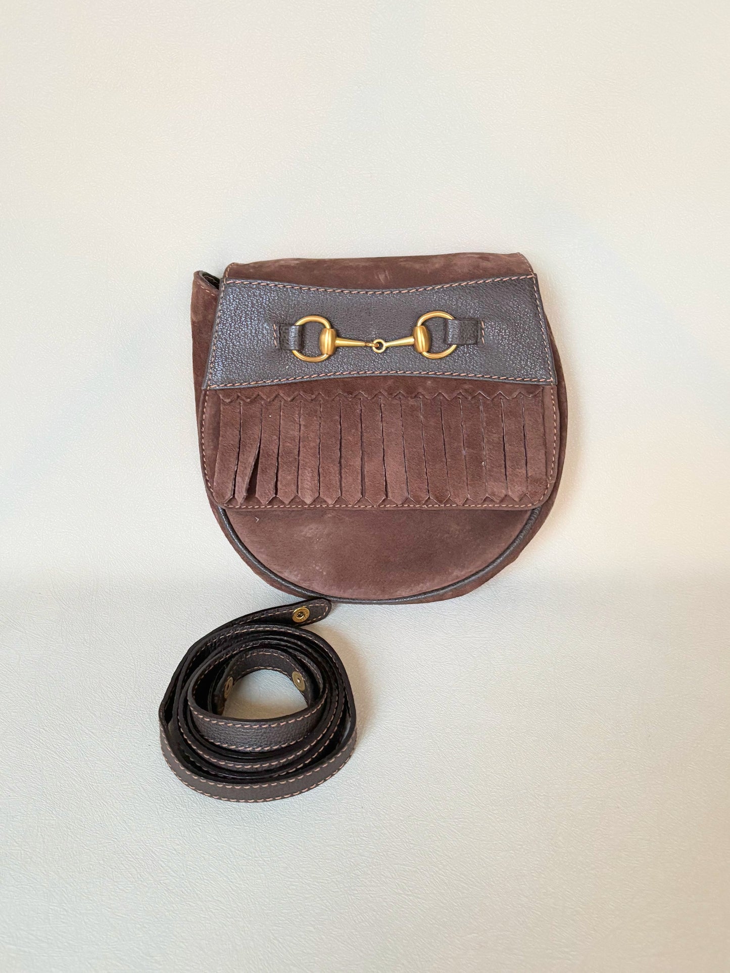 * Sac banane GUCCI modèle Horsebit en cuir suédé marron à franges