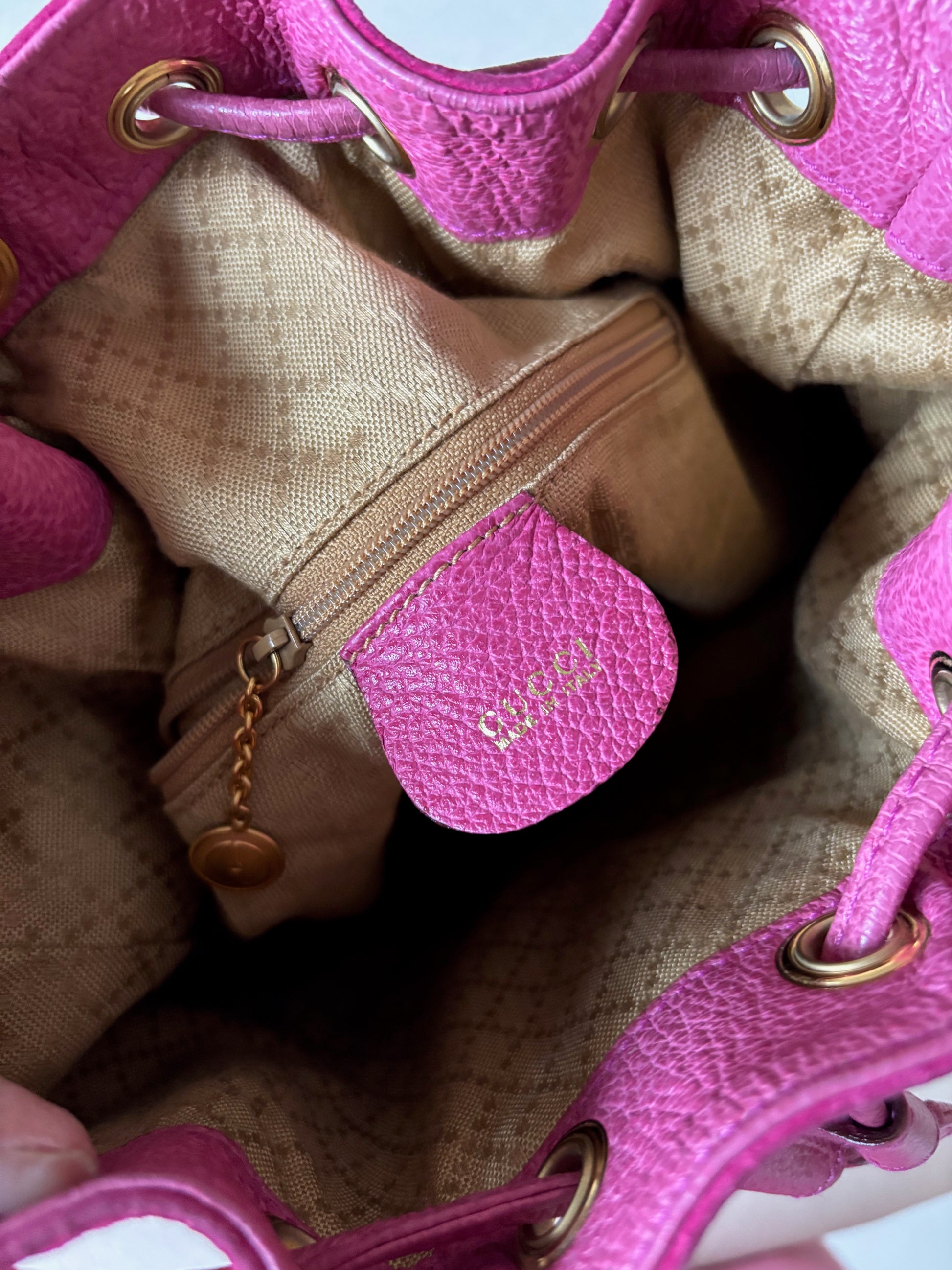 * Intérieur en toile monogrammée, bijouterie dorée siglée GUCCI, une poche zippée
