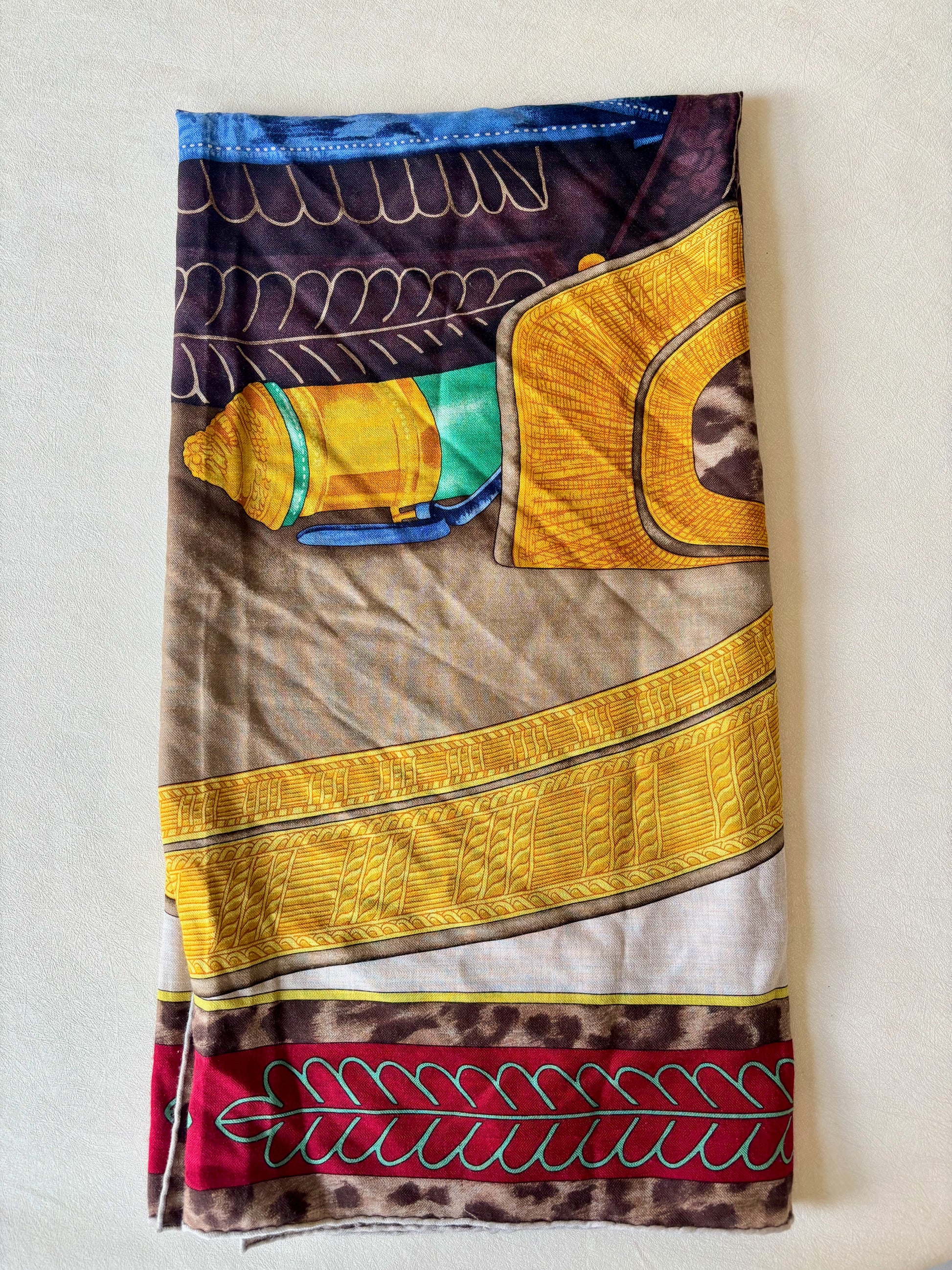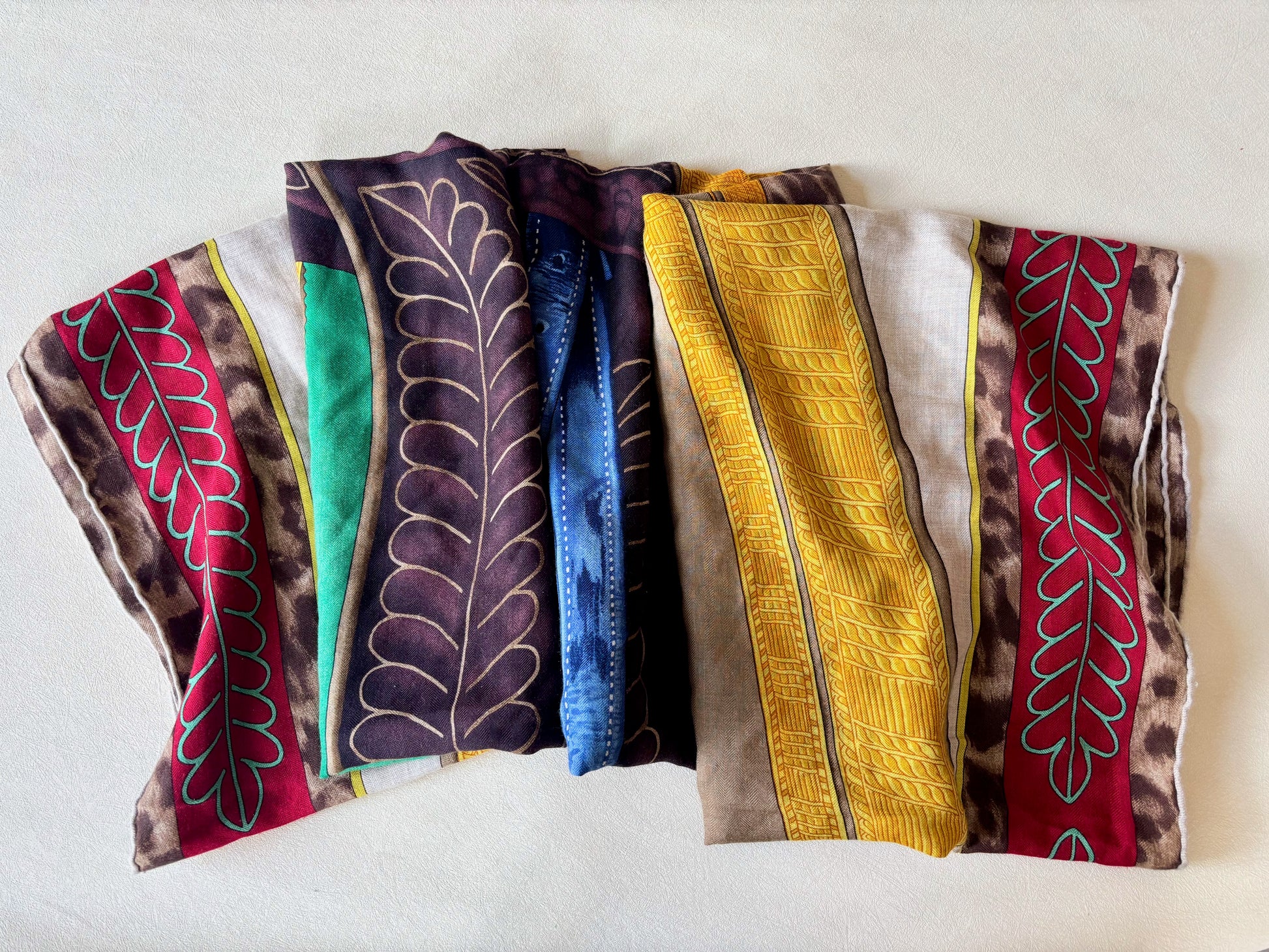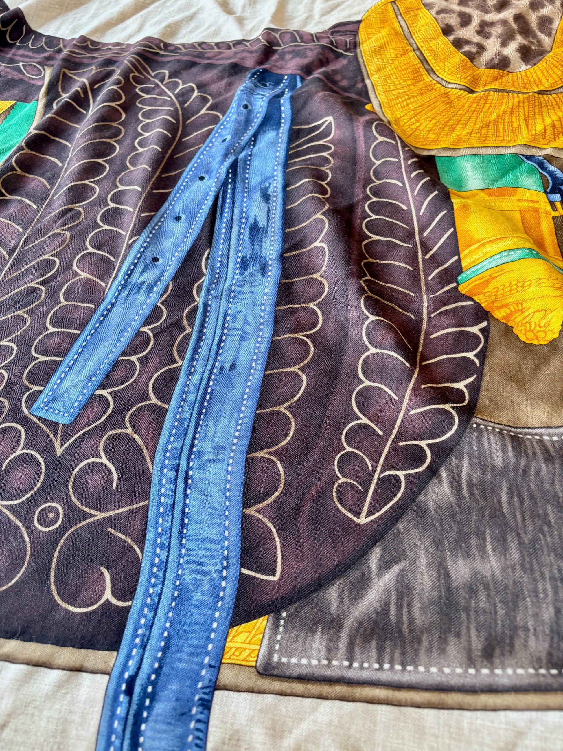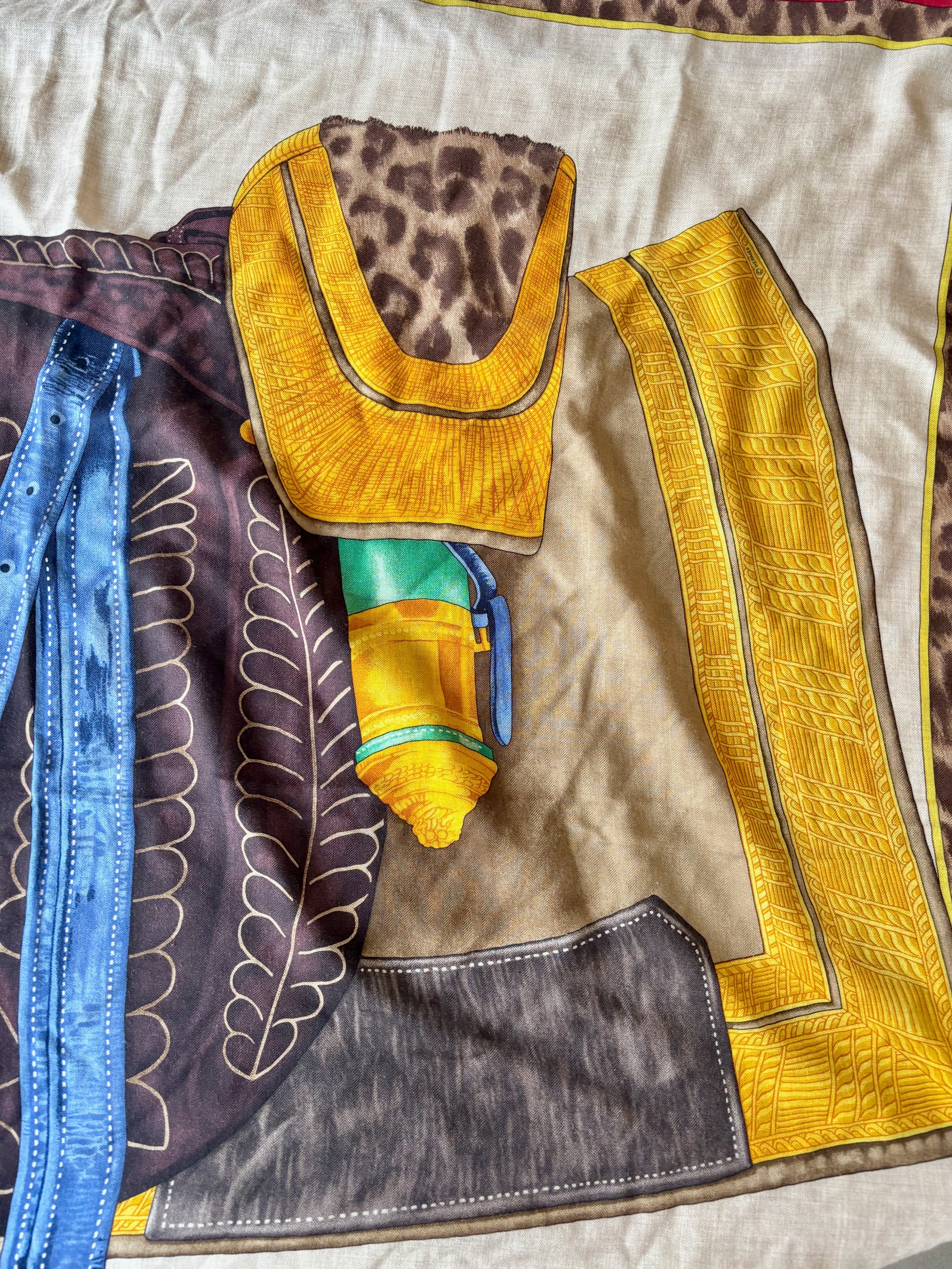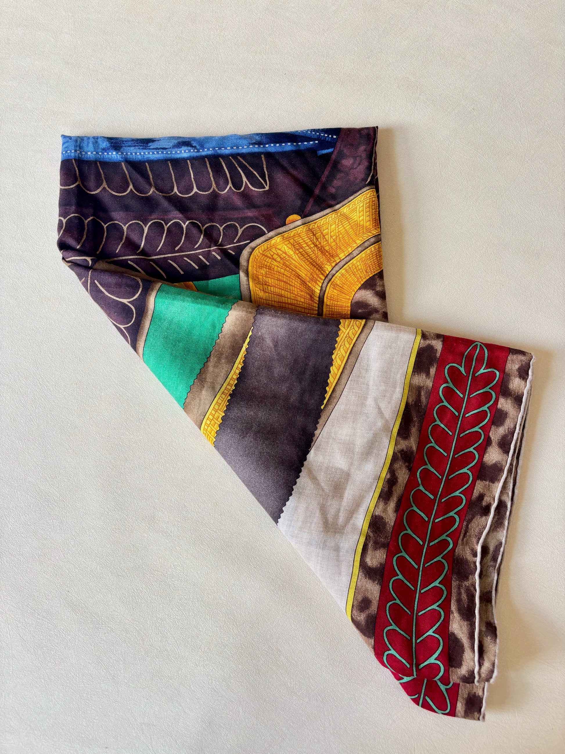 * Cachemire et soie roulottée à la main, multicolore aux tons chauds, bordures Léopard