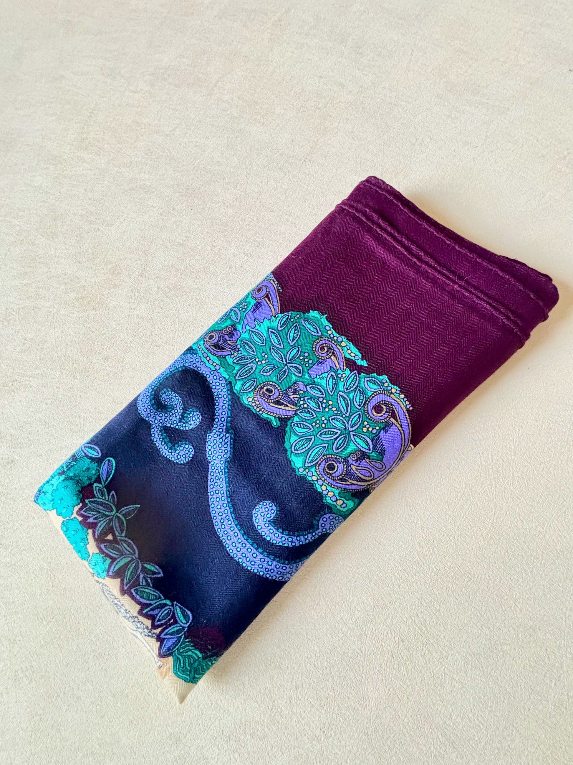 * Au motif des emblèmes royaux dans les tons verts, bleus et beiges sur fond lie-de-vin