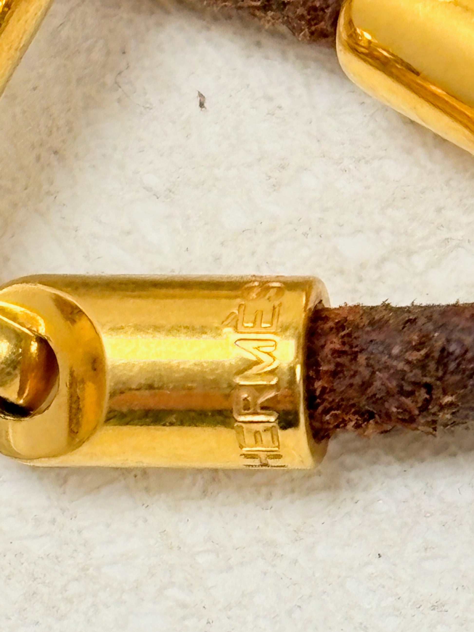 * Fermoir emblématique plaqué or jaune, siglé Hermès