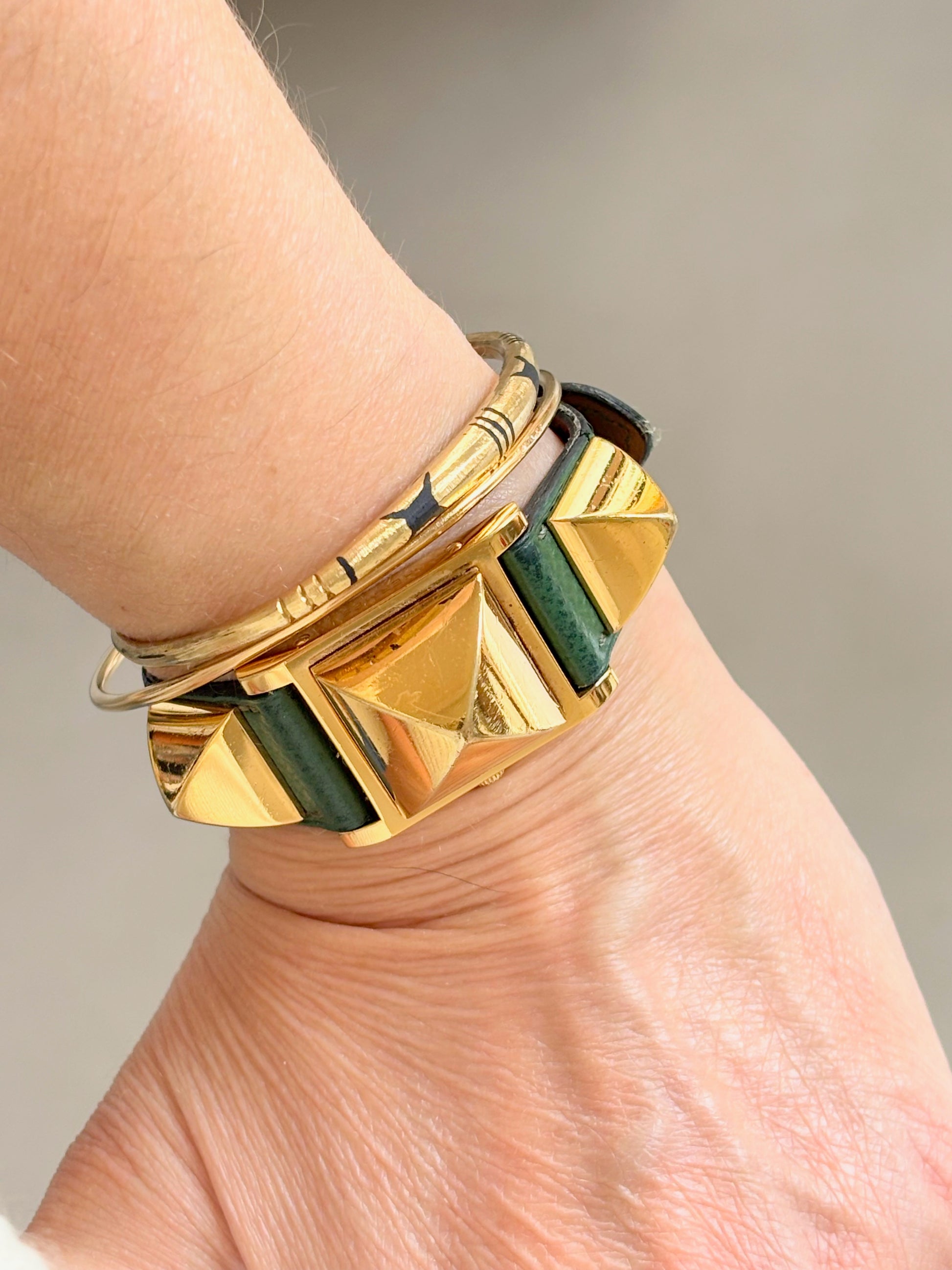 * Boucle ardillon en plaqué or et clous Médor emblématiques de la marque