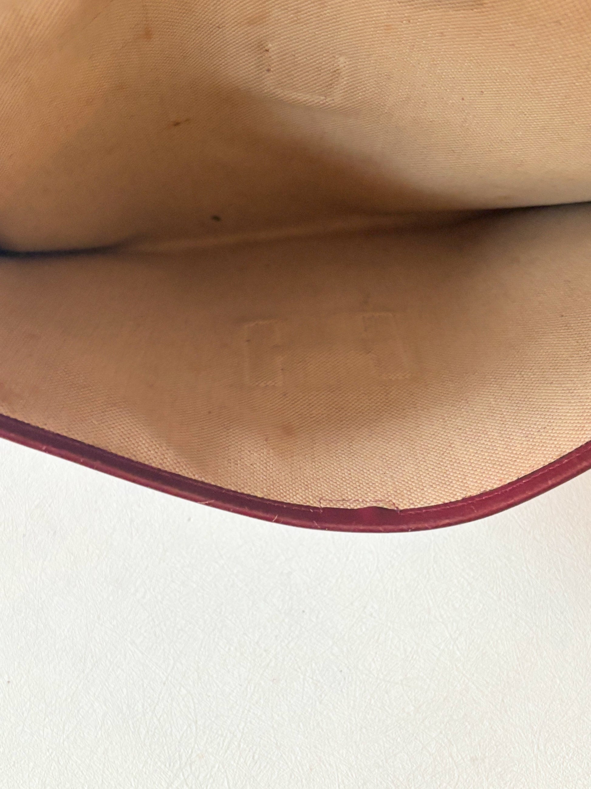 * Vintage montrant qq signes d'usage sur le cuir, notamment au niveau des pliures et quelques traces jaunes sur la doublure