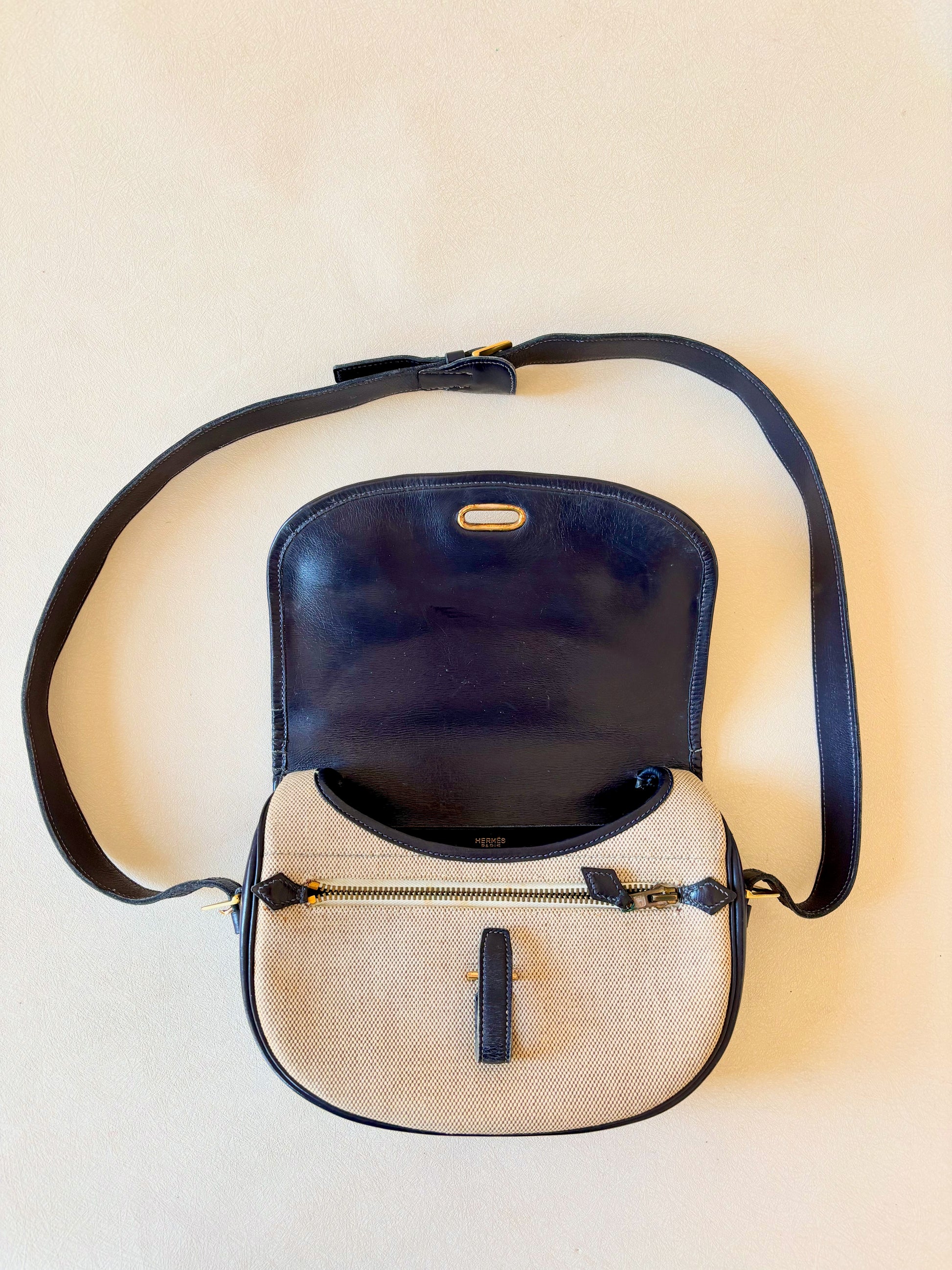 * Sac HERMÈS modèle Balle de Golf en cuir bleu marine et toile H